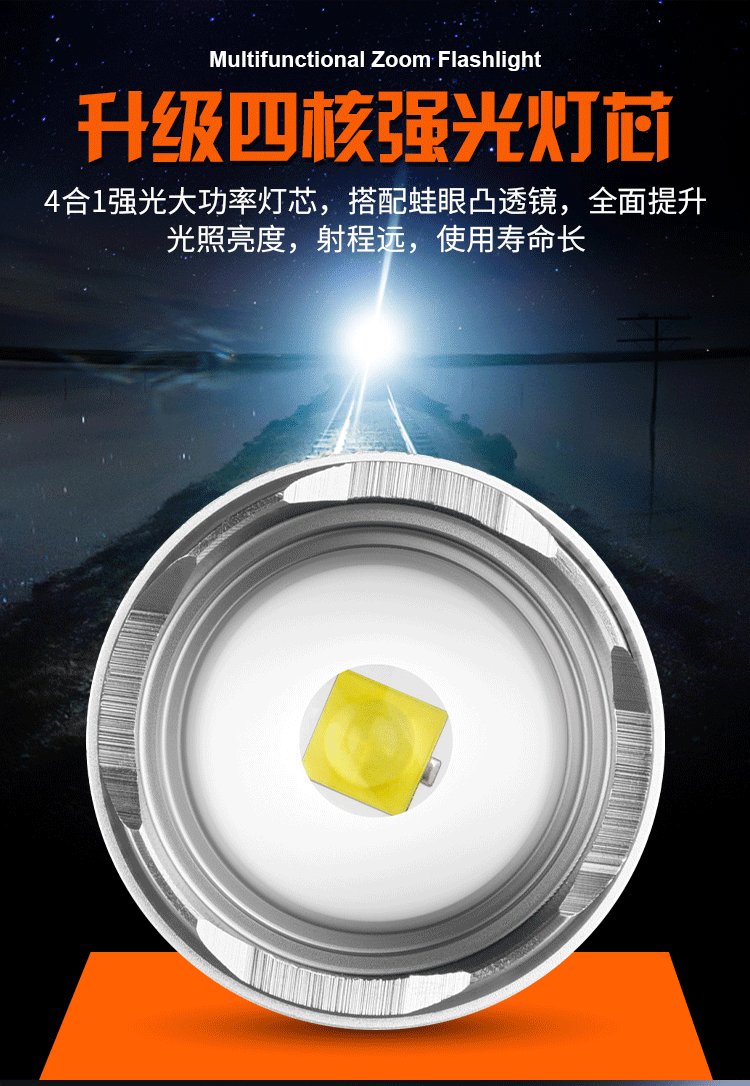Transfronterizo nueva linterna al aire libre a prueba de agua iluminación resalte Reflector doble fuente de luz de largo alcance lámpara de detección láser blanco