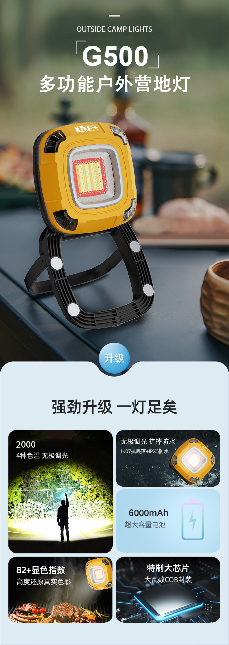 | color | Nuevo producto G500 de alta configuración con caja de color + bolsa de almacenamiento (6000mah),Paquete de almacenamiento superior con lámpara de campamento 10000mAh 8-160h |