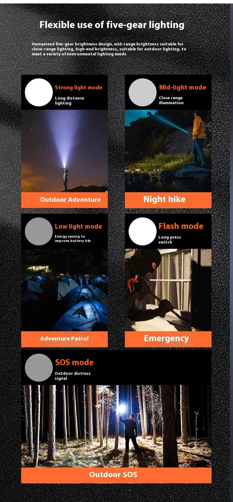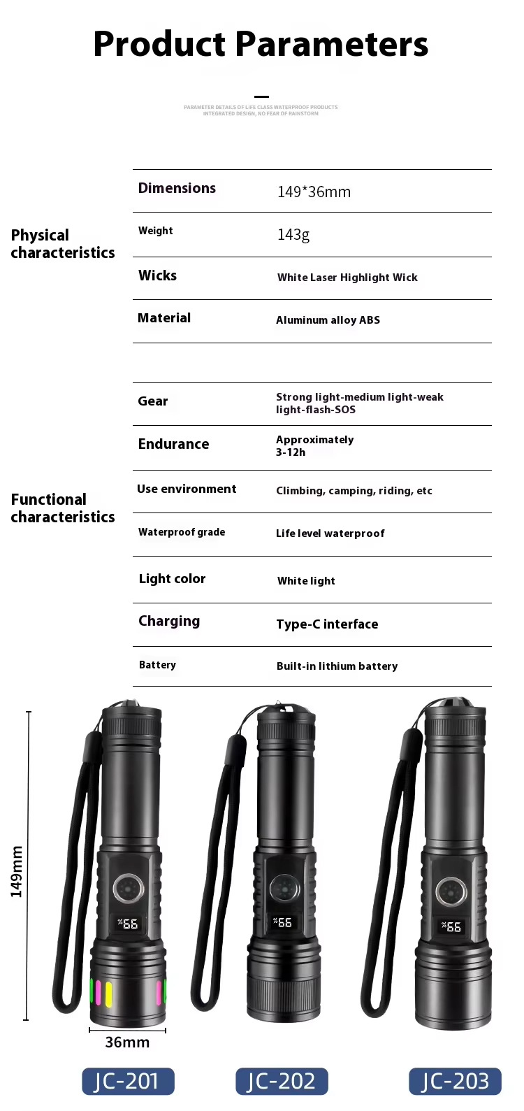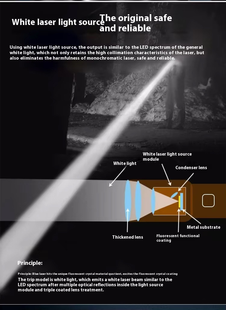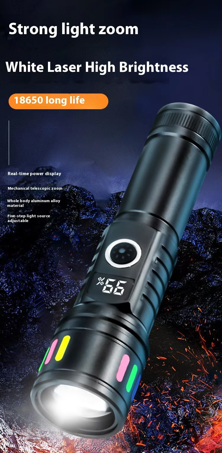 Nuevo tipo de linterna de luz fuerte transfronteriza luz de emergencia multifuncional al aire libre láser blanco luz de iluminación ultra brillante luz de reflector impermeable