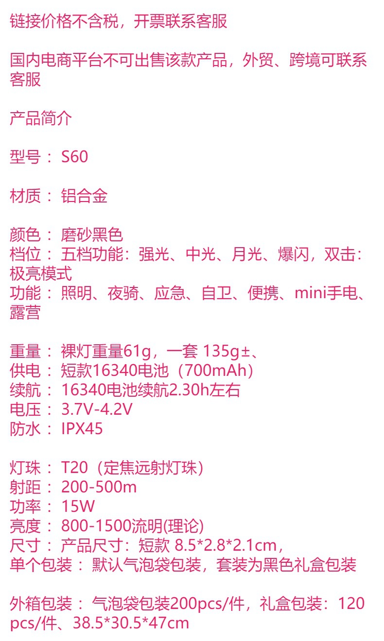 | Color | S60-T20 + 2 cubiertas de luz suave + embalaje de caja de regalo (sin batería),S60-T20 + 2 cubiertas de luz suave + caja de regalo Paquete de batería de montaje |