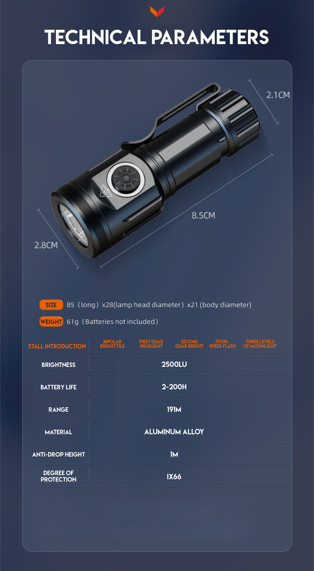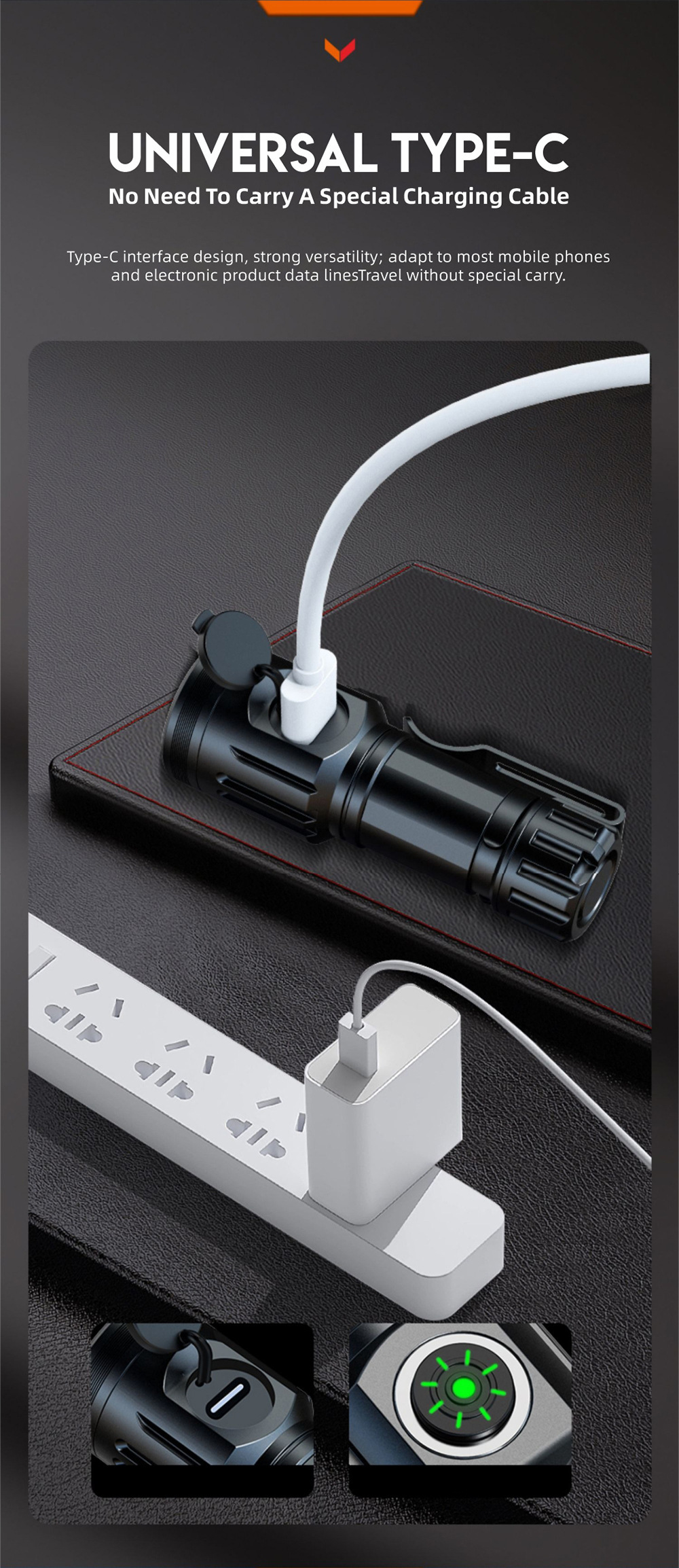 Cross-border nuevo multi-funcional linterna de luz fuerte tipo C recargable zoom con clip de la pluma resaltar linterna de tiro largo