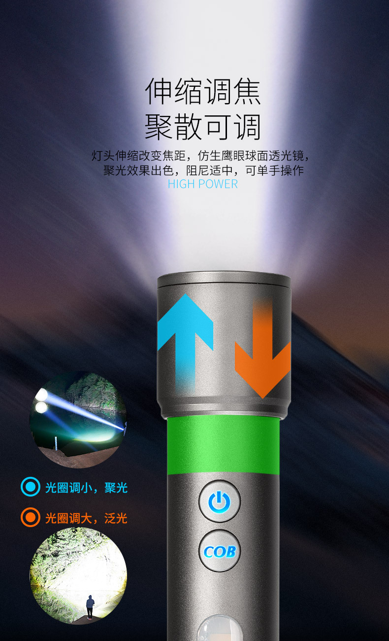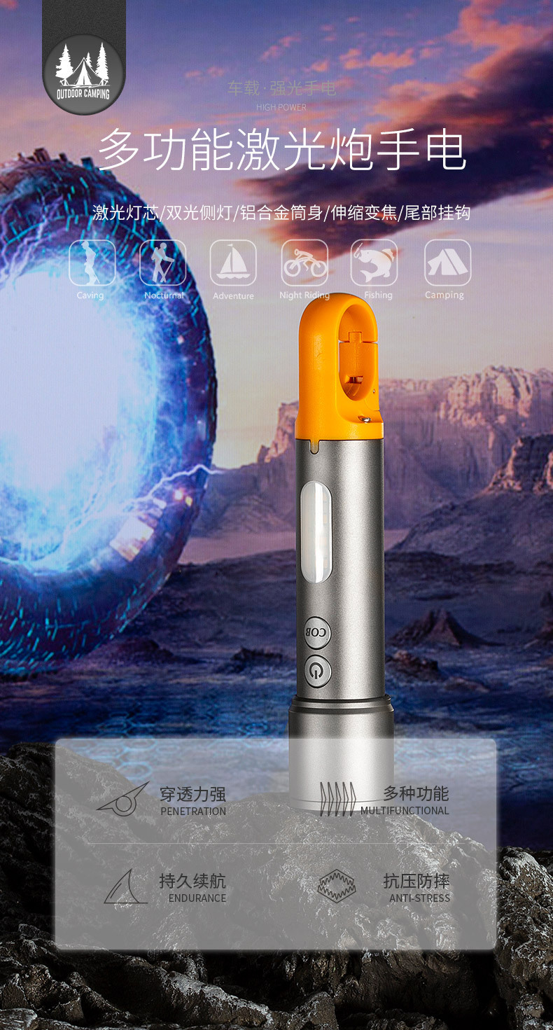 Nueva linterna transfronteriza linterna portátil al aire libre multi-funcional lámpara de campamento de iluminación láser blanco de larga resistencia reflector