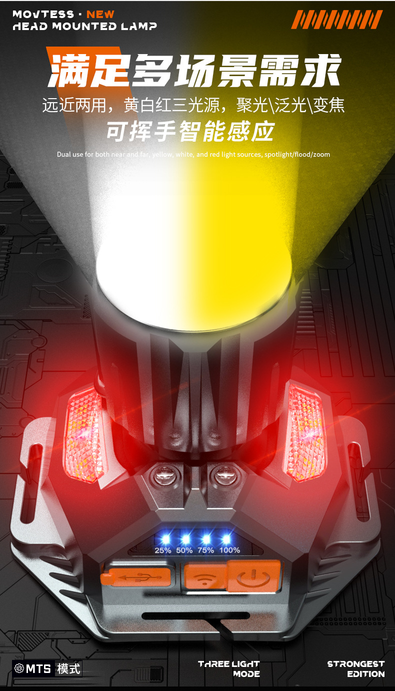 Lámpara de luz fuerte transfronteriza recargable brillante de larga duración tipo de lámpara de pesca montada en la cabeza lámpara de iluminación de inducción especial al aire libre