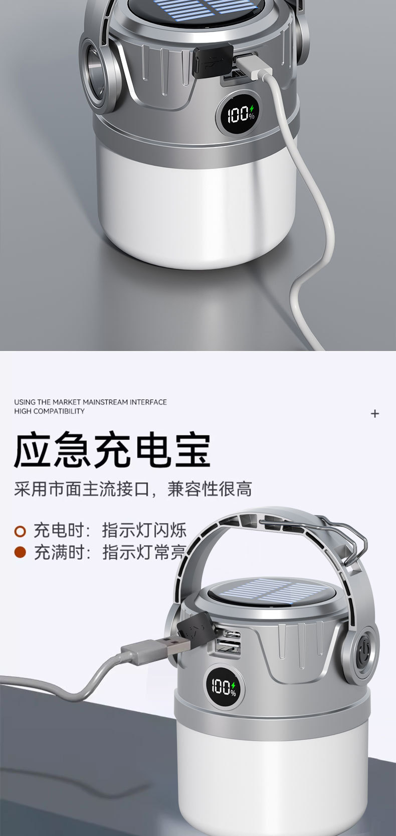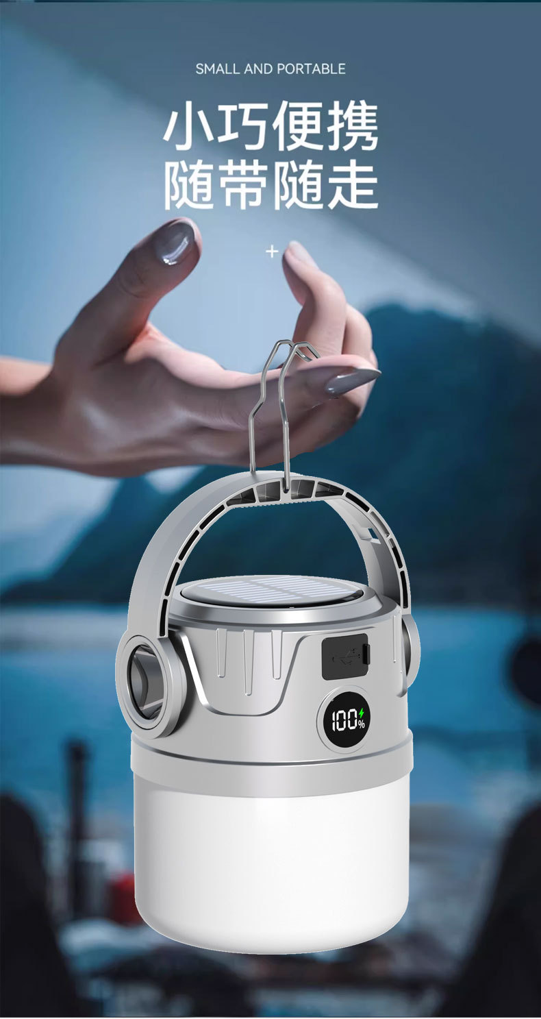 Nuevas luces de campamento solares transfronterizas, multifuncionales de larga duración, luces de puestos de mercado nocturno, luces de trabajo de emergencia de alto brillo