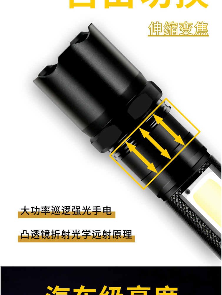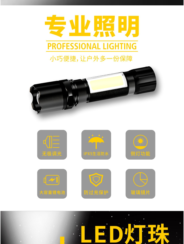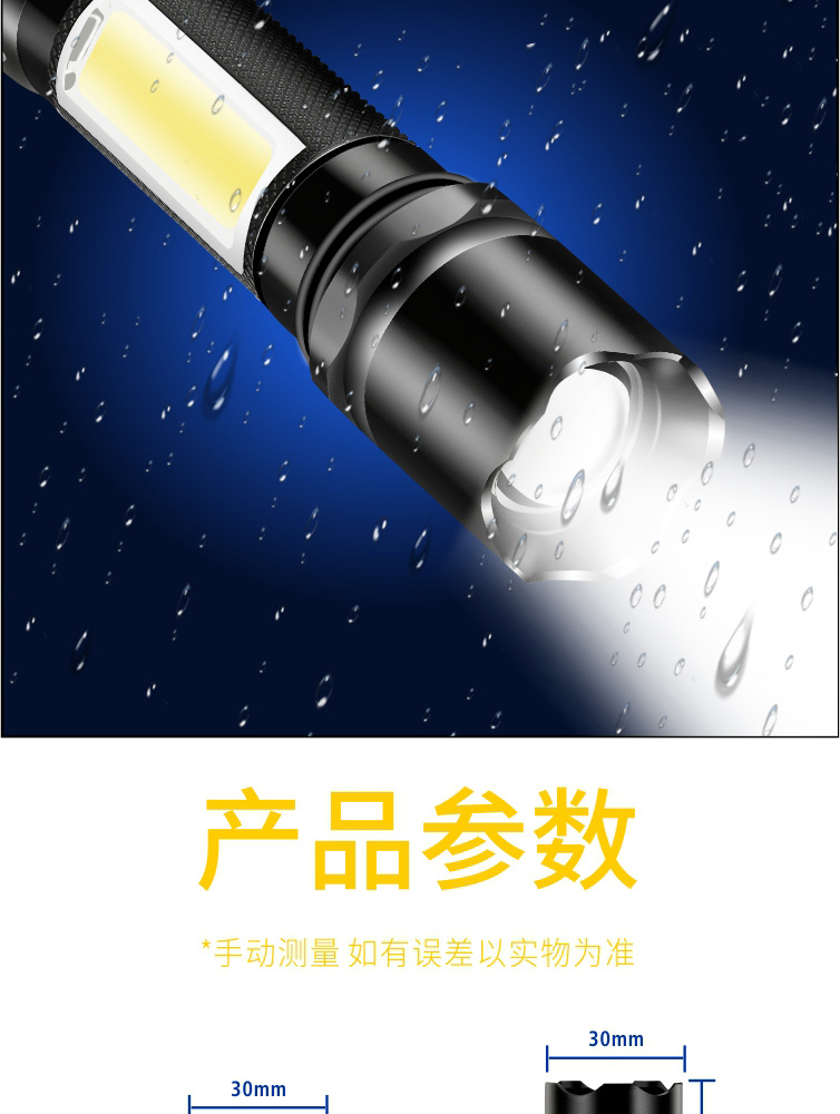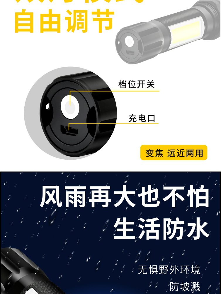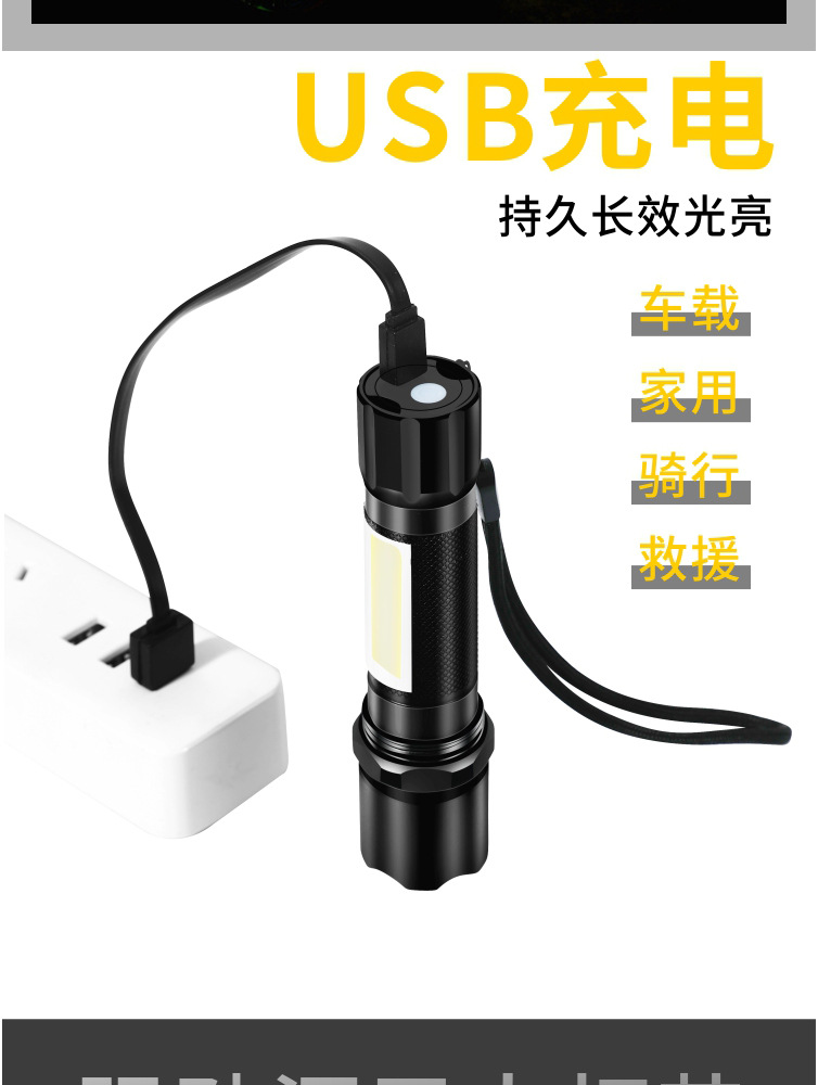 Comercio electrónico transfronterizo lámpara de regalo de iluminación al aire libre LED luz fuerte pequeña linterna mini luz lateral luz de trabajo carga USB