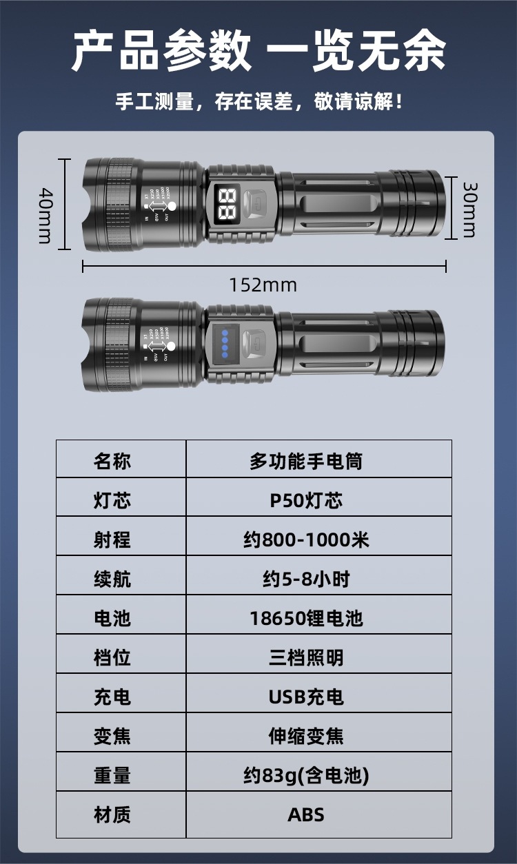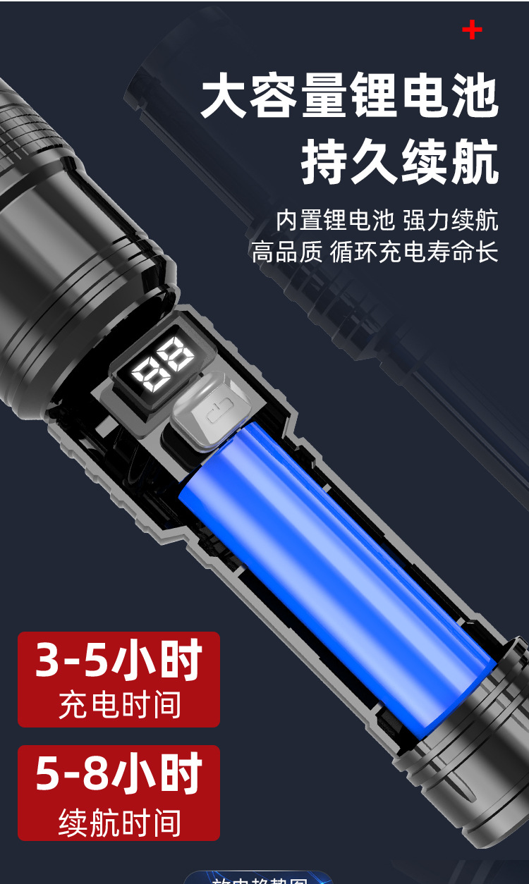 Transfronterizos nueva linterna de luz alta portátil recargable luz de zoom al aire libre de alto brillo luz de emergencia LED de disparo