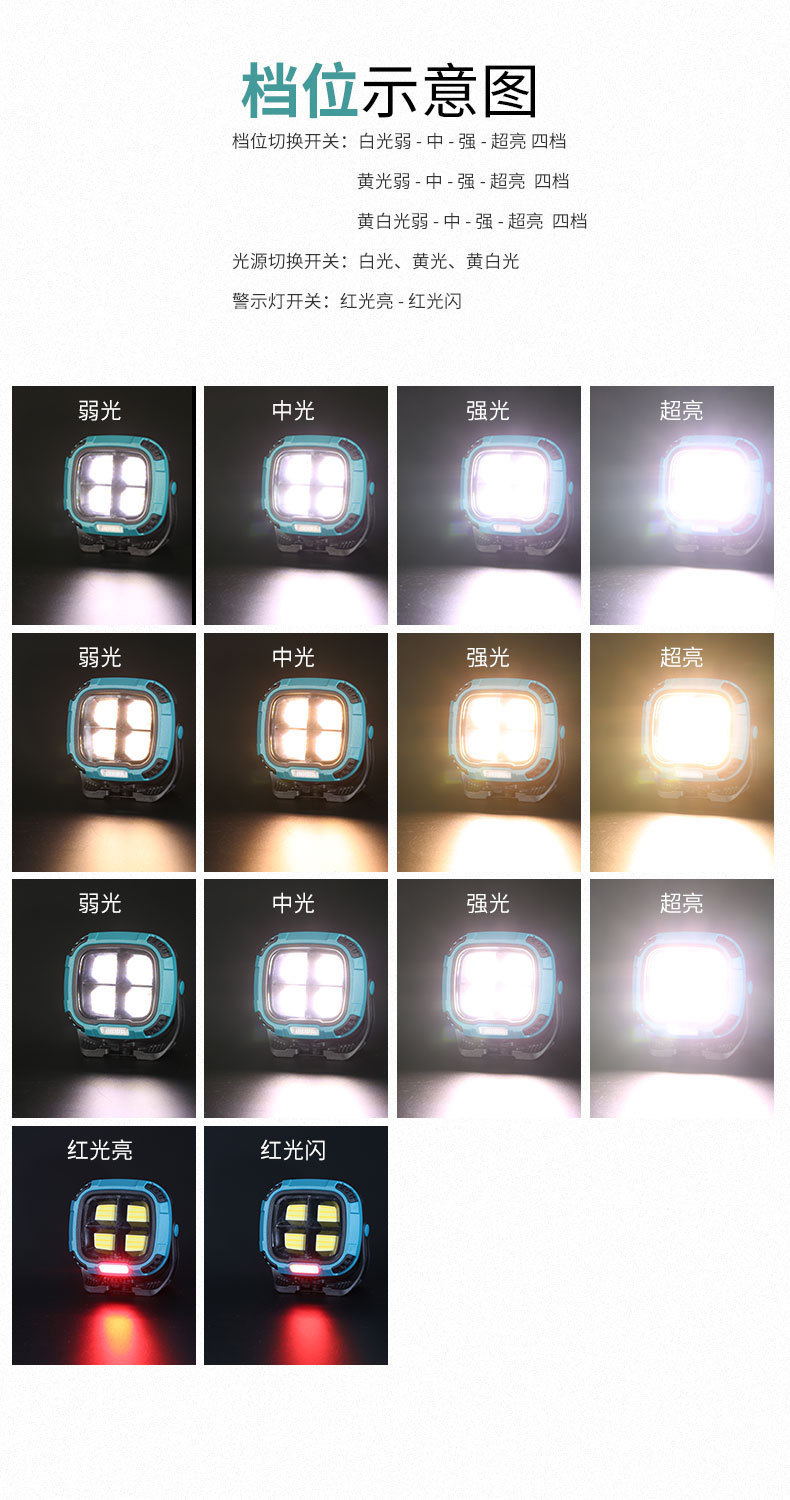 Nueva luz de trabajo multifuncional al aire libre hogar de alto brillo larga resistencia con gancho imán luz de trabajo de emergencia