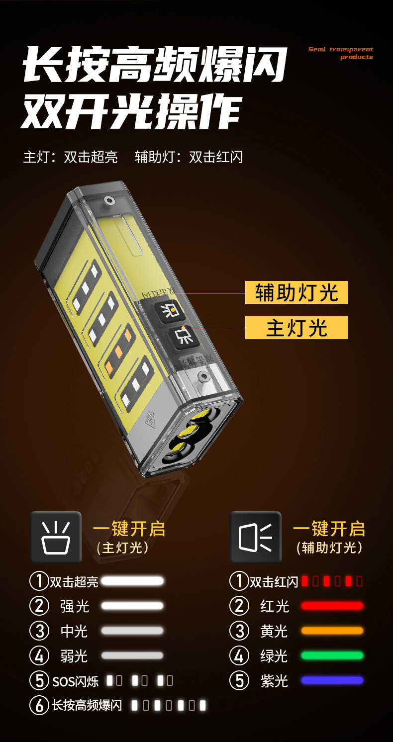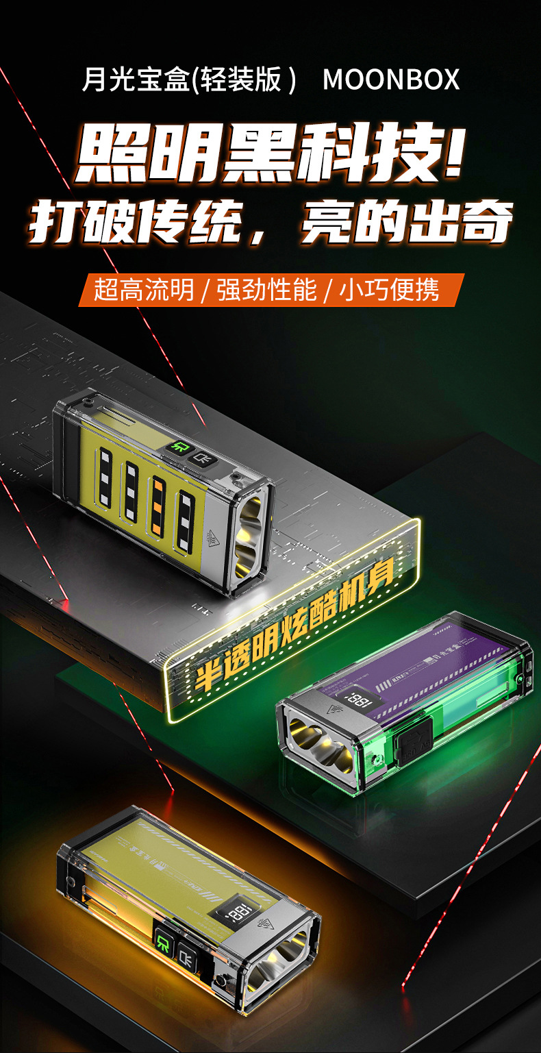 La nueva linterna de luz brillante de la caja del tesoro de la luz de la luna se puede recargar, duración de la batería de larga duración, mini linterna portátil de luz de largo alcance