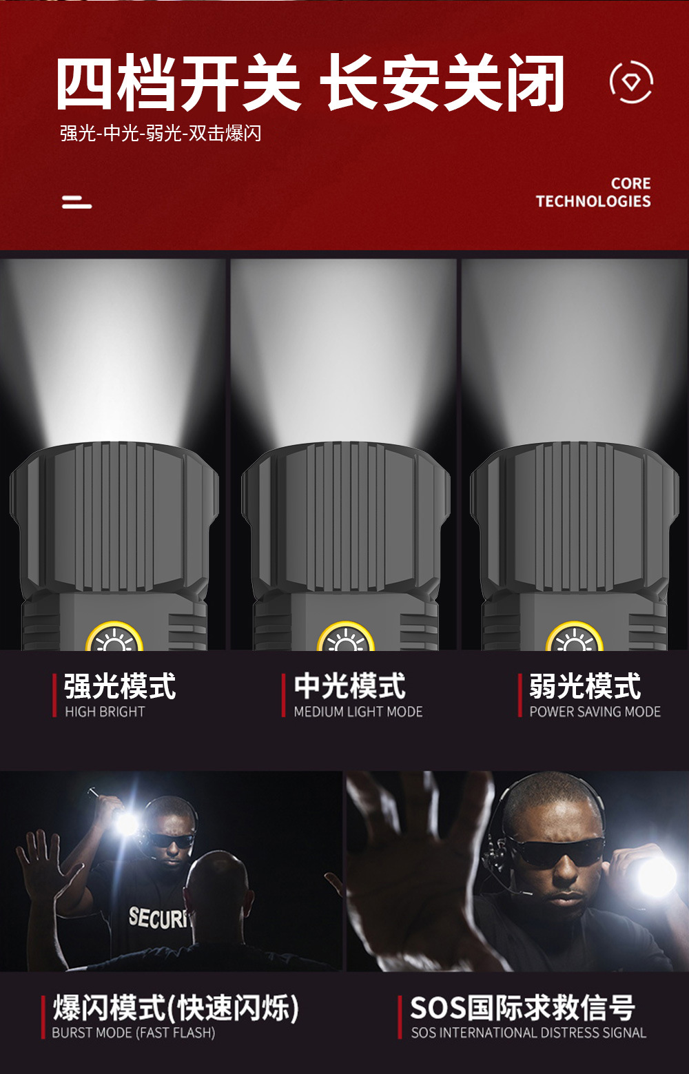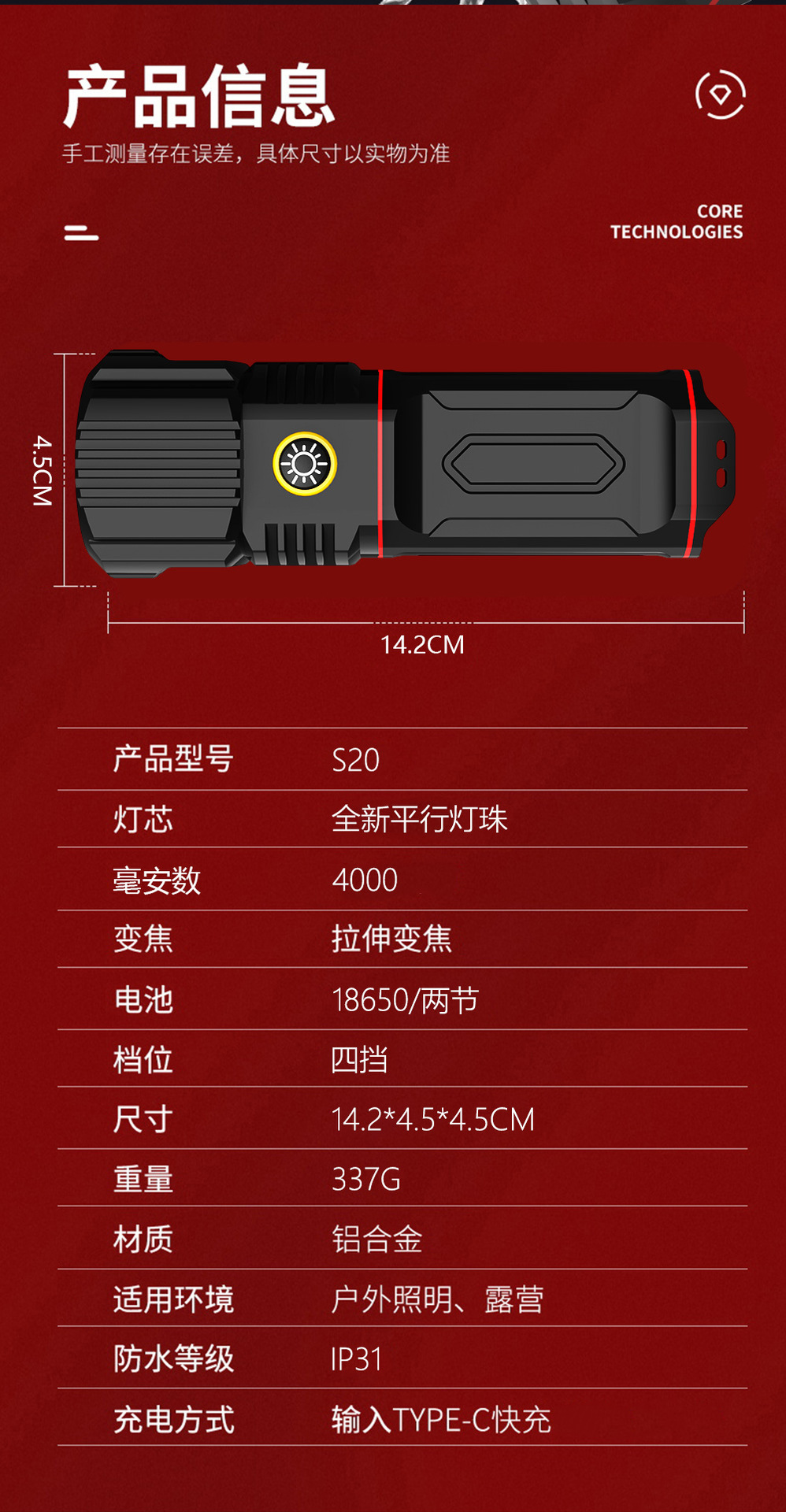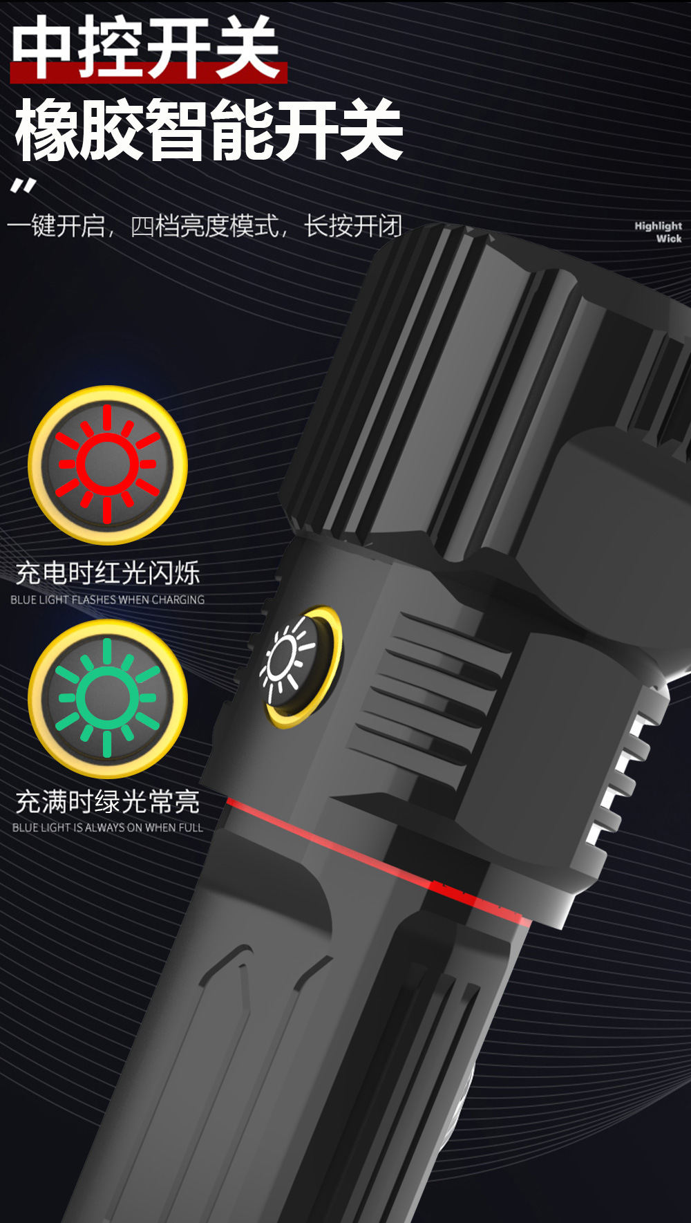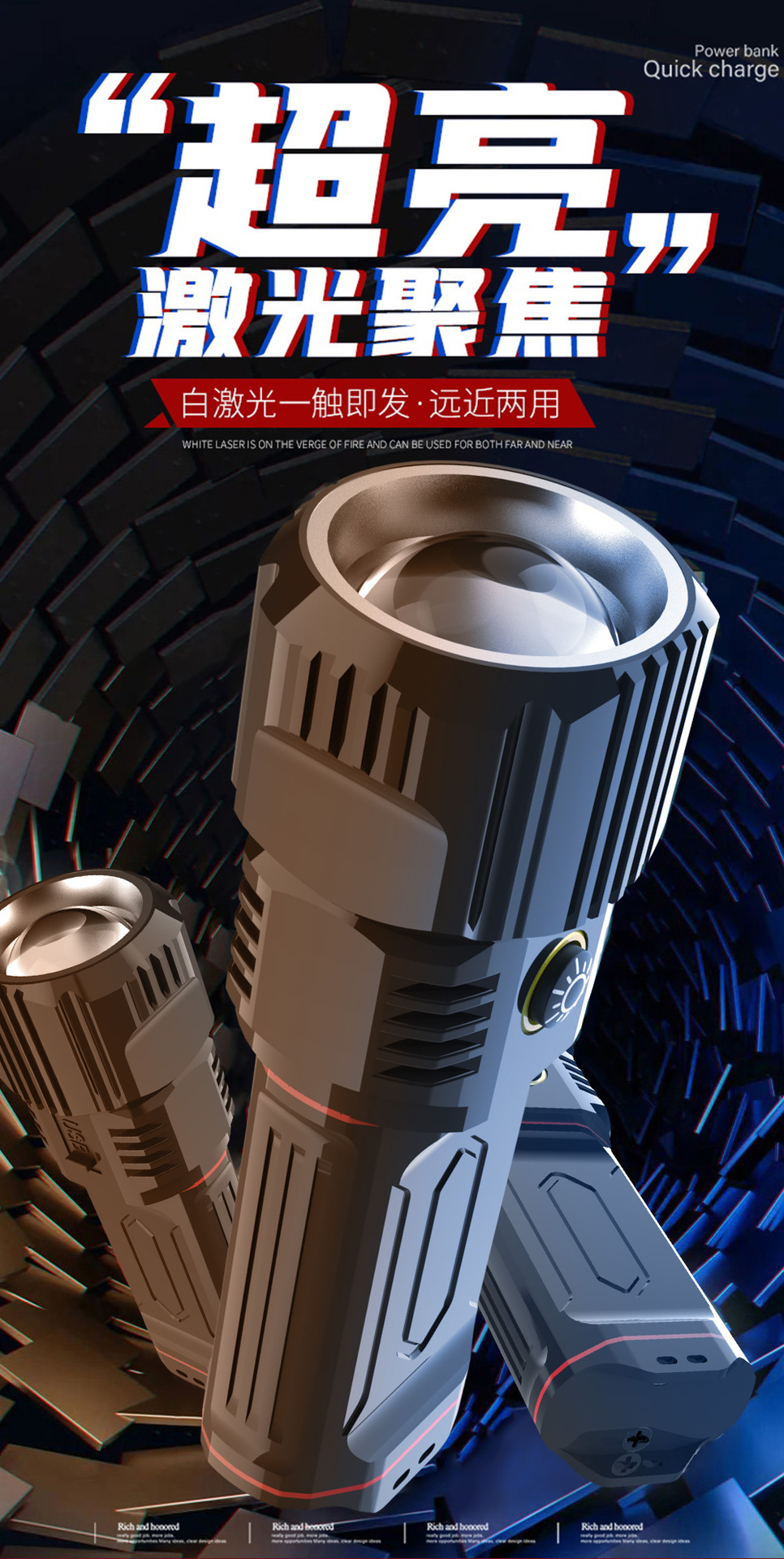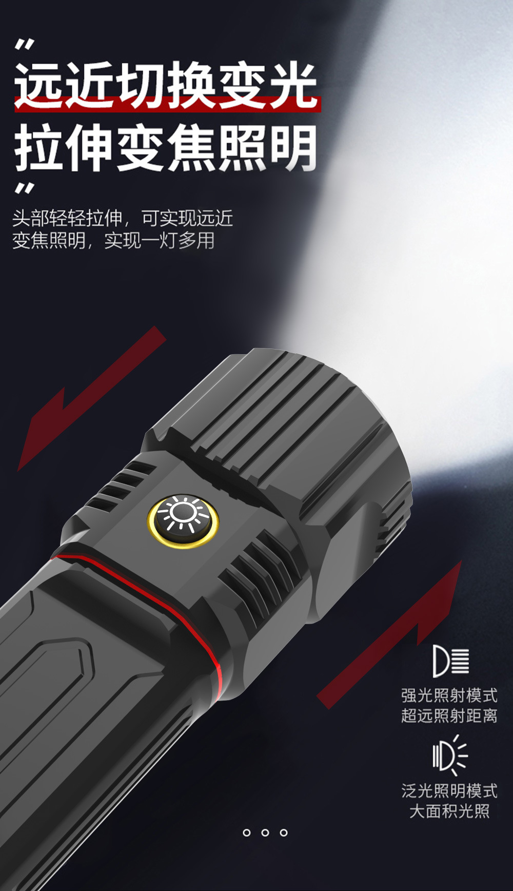 Nueva linterna al aire libre láser blanco multi-función estiramiento zoom resaltar hogar lámpara de iluminación de emergencia de larga resistencia