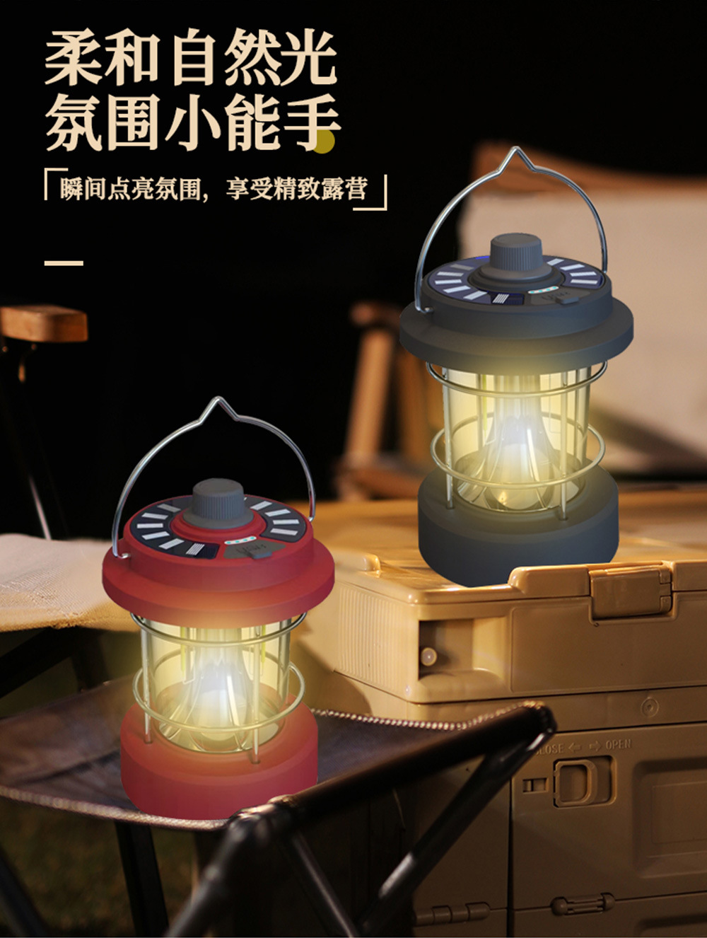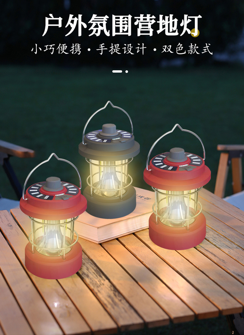 Nueva lámpara de camping al aire libre multi-funcional portátil de tres bloques atenuación camping linterna impermeable larga resistencia iluminación de emergencia