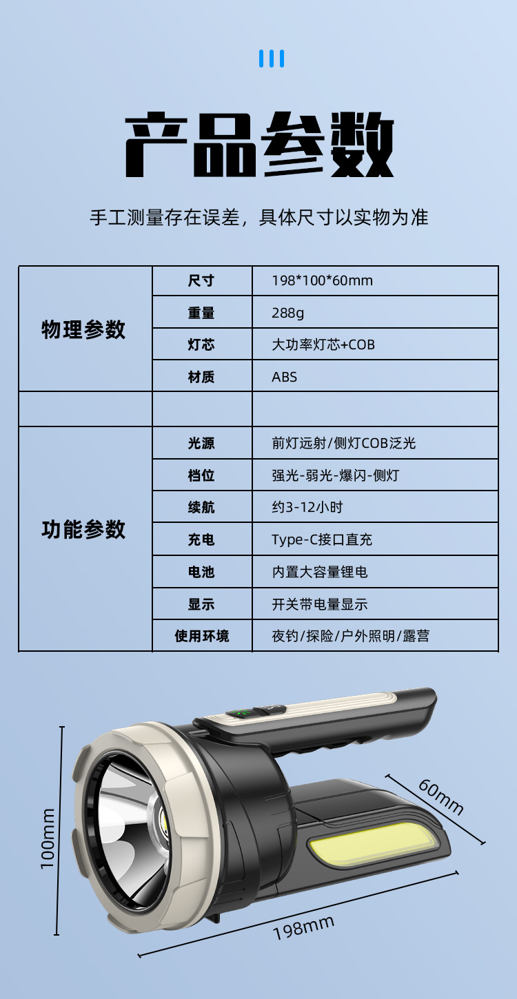 Nueva linterna transfronteriza portátil multifunción Luz de camping de alta potencia de largo alcance iluminación LED luz de trabajo de emergencia