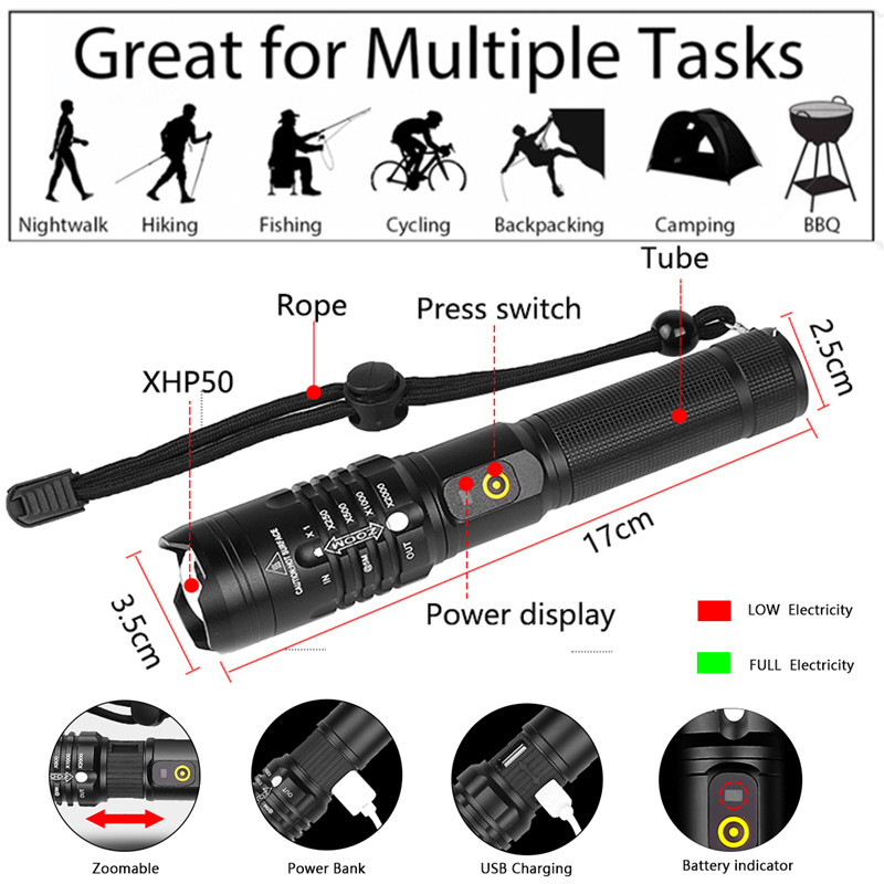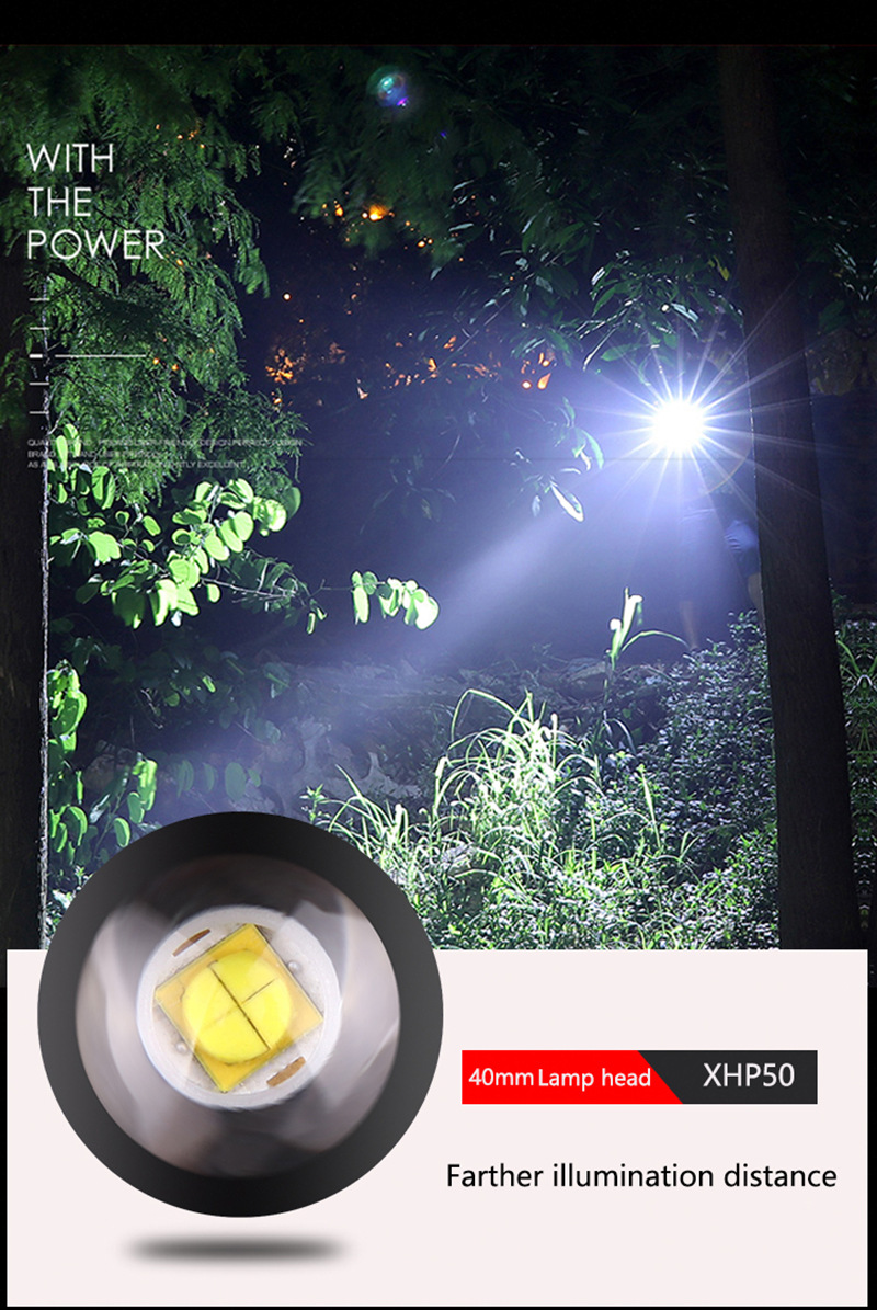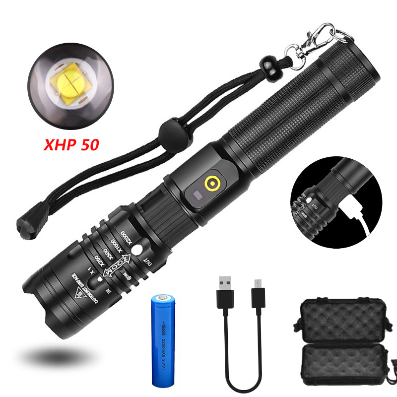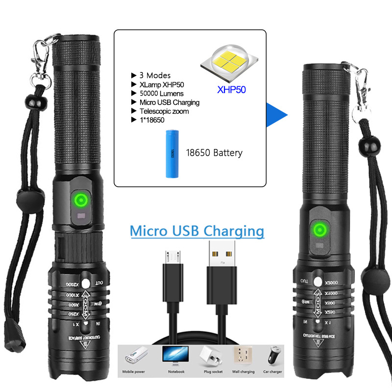 P50 transfronteriza linterna aleación de aluminio USB de carga de entrada y salida zoom linterna ventas directas de fábrica
