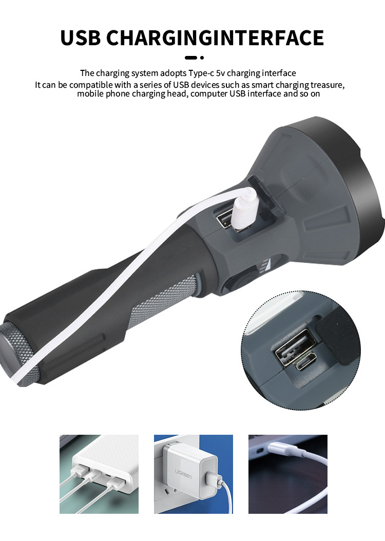 Linterna de foco fijo transfronterizo linterna recargable USB foco portátil de largo alcance Medición de mazorca reflector linterna de salida