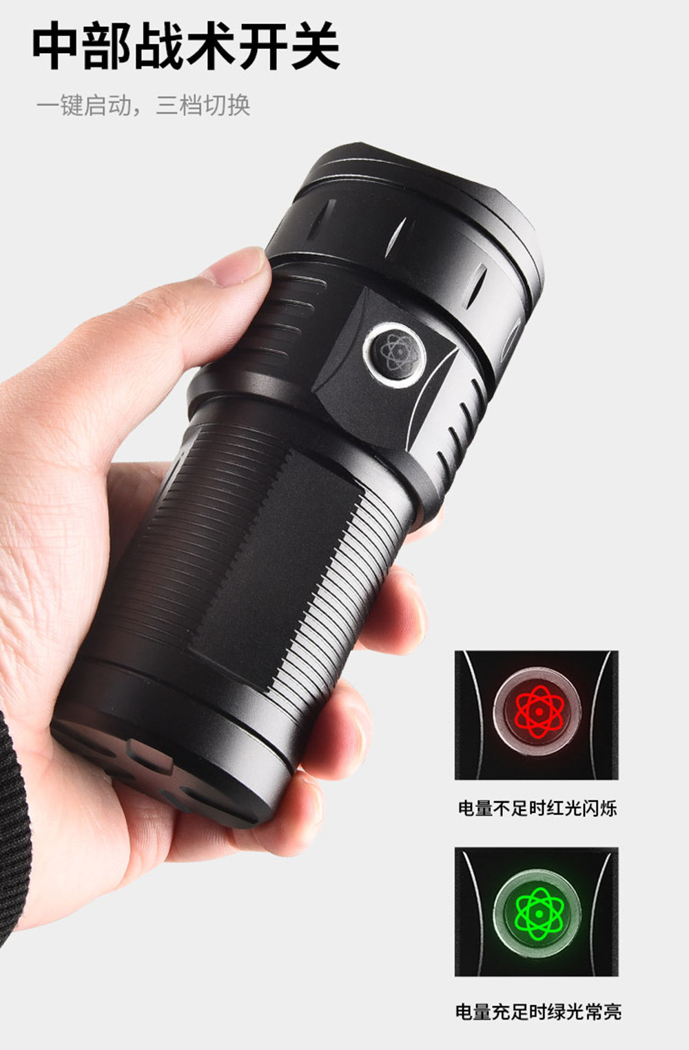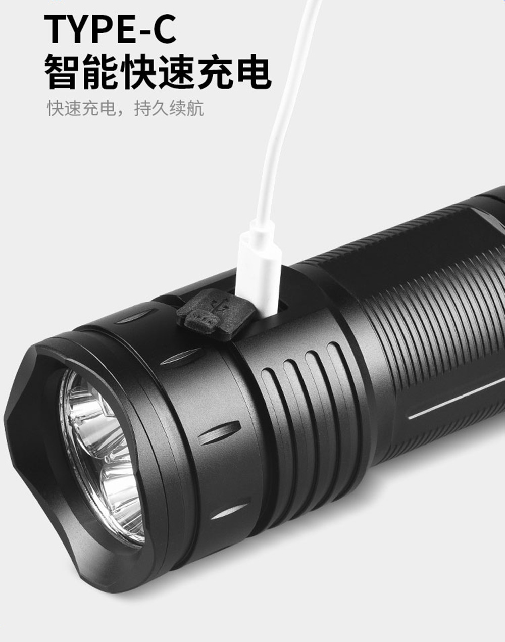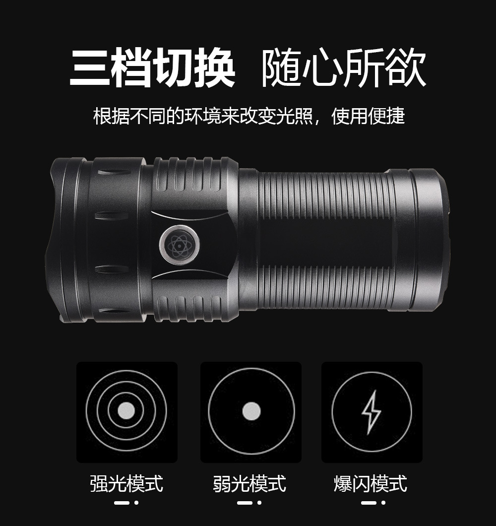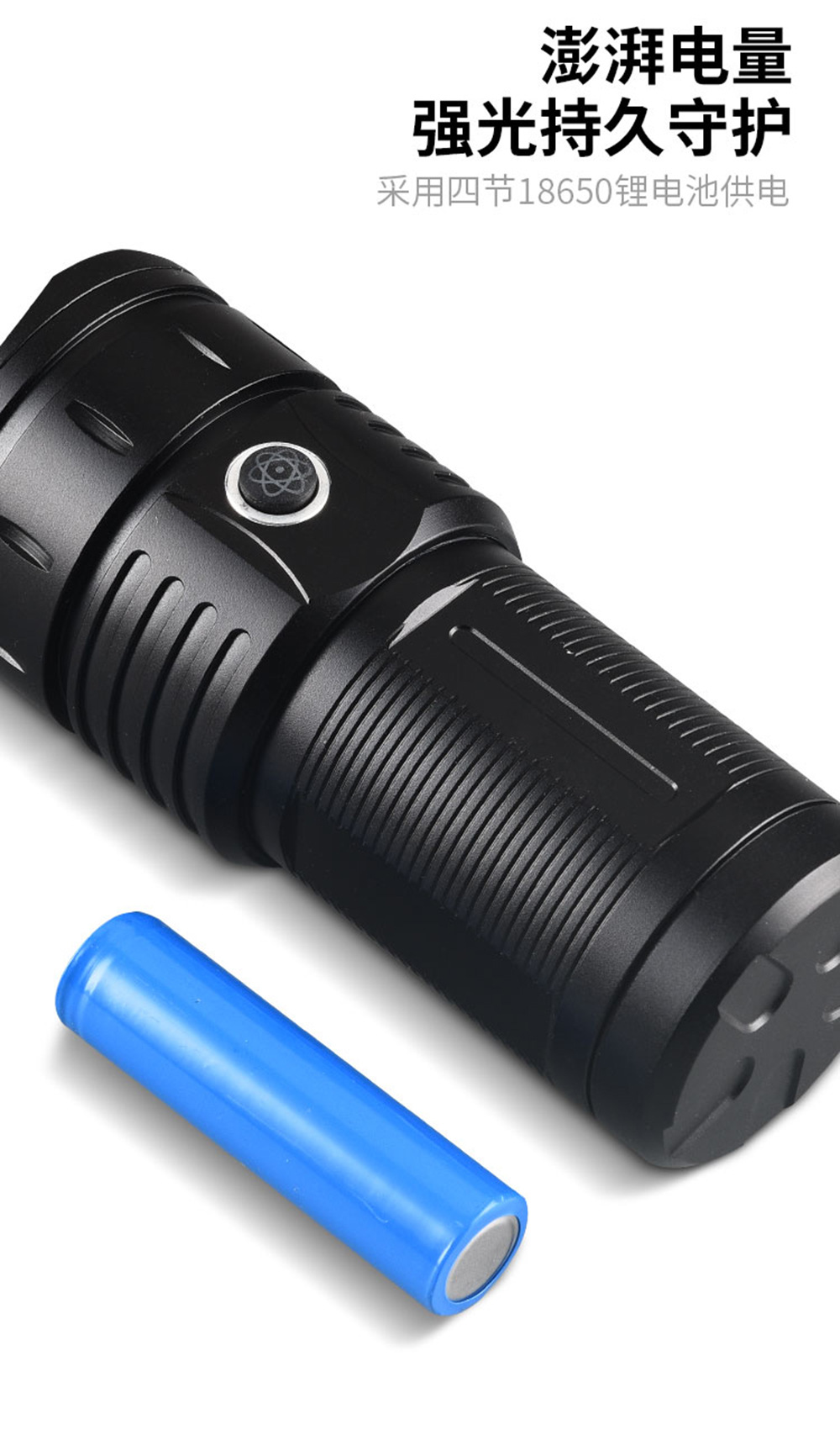 | Color | Sola linterna con caja blanca cable de carga,Caja de regalo de embalaje + Linterna + 4 18650 baterías + cable de carga |