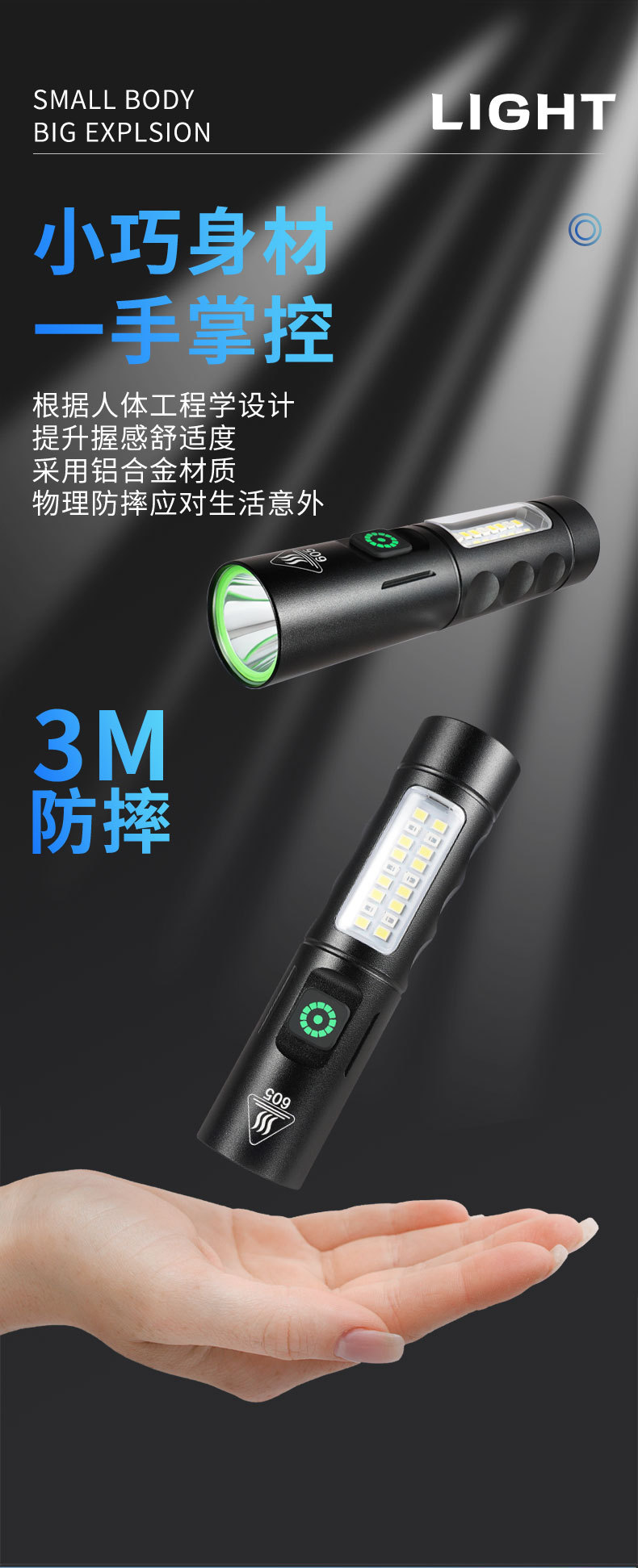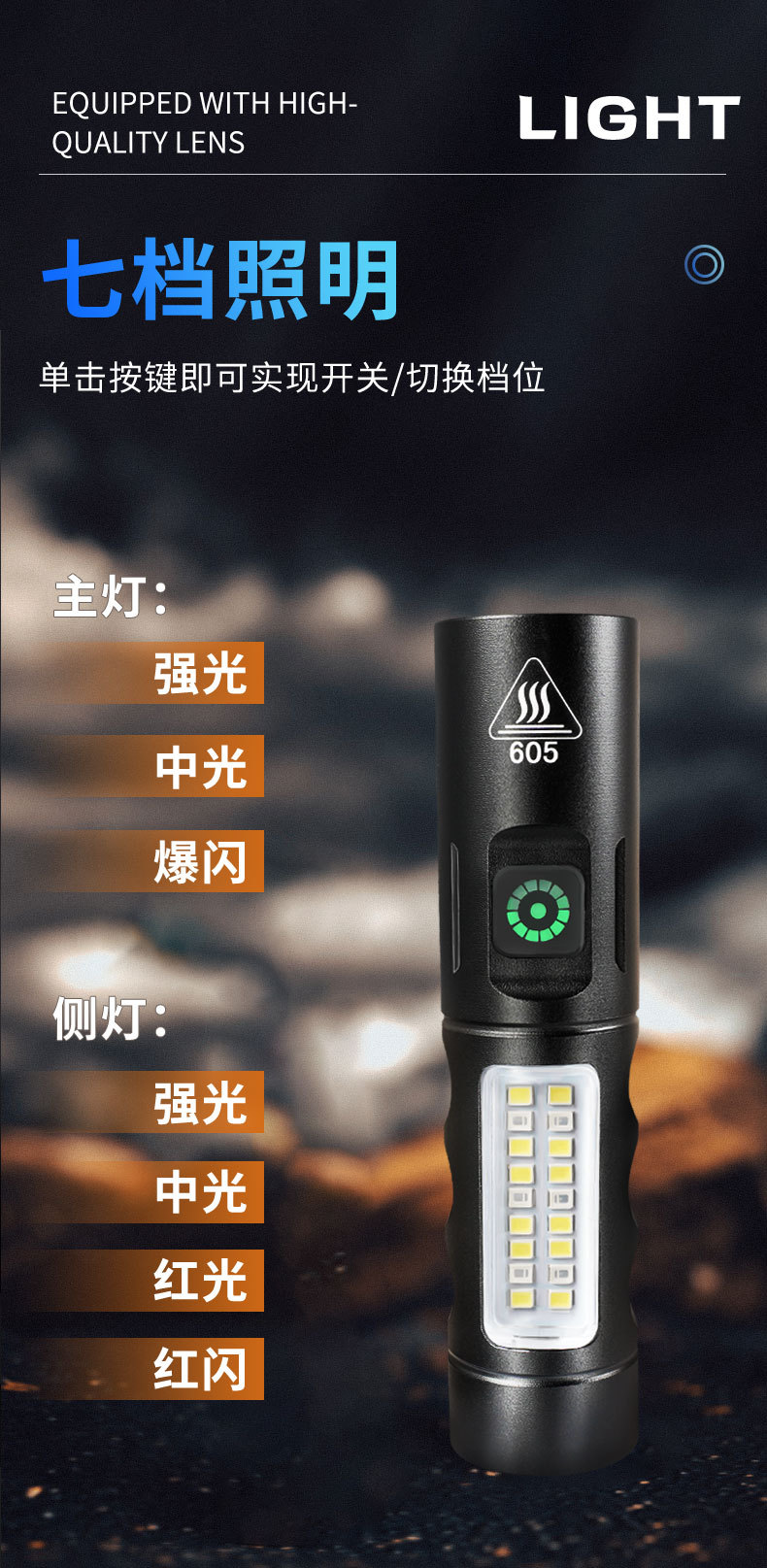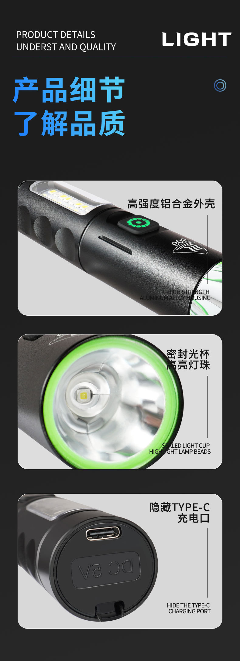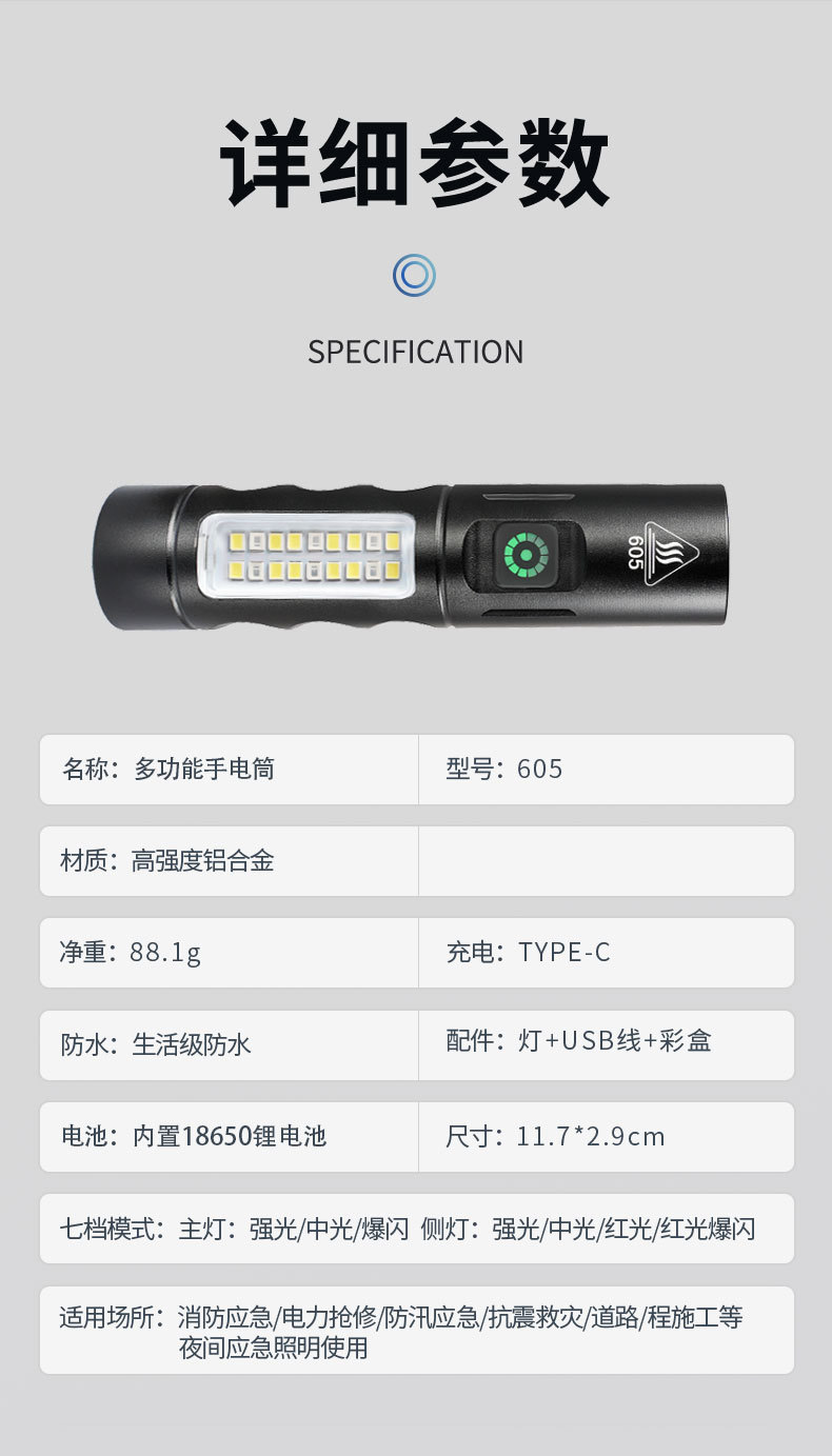 Transfronterizo nueva luz brillante zoom linterna multifuncional tipo-C carga fluorescente eléctrica blanqueador linterna láser LED