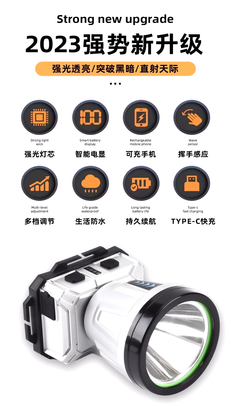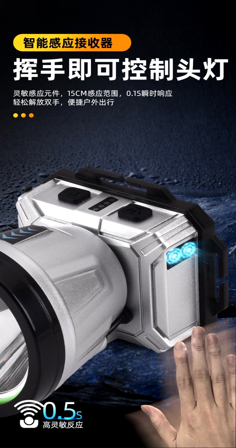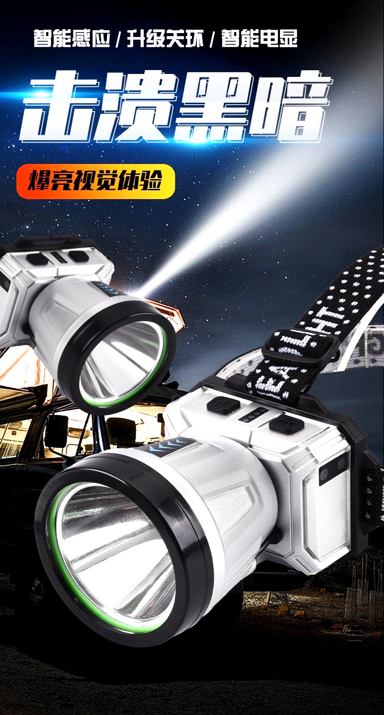 Nuevo faro LED transfronterizo agitando inducción faro USB cargador de cabeza tipo noche corriendo pescando mini faro