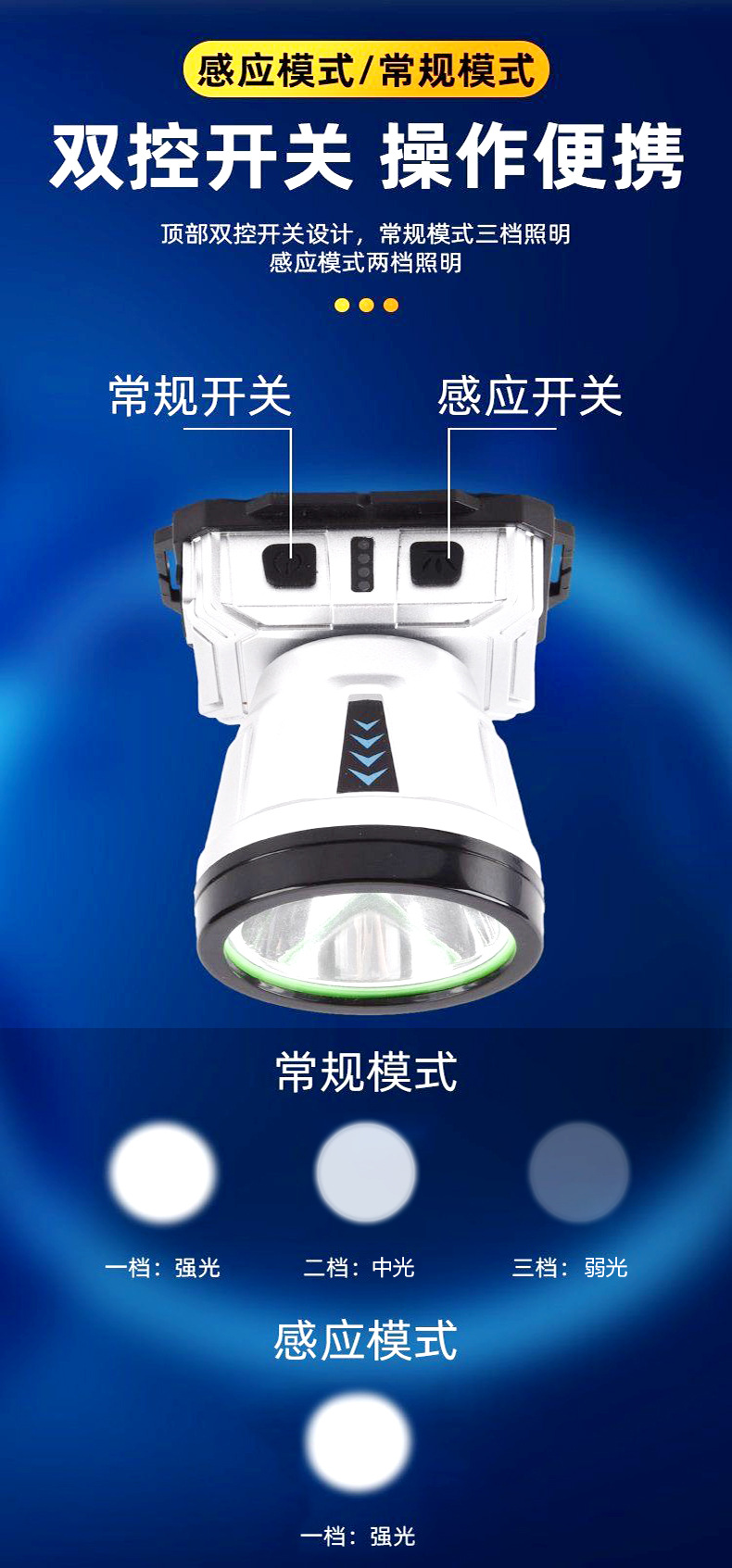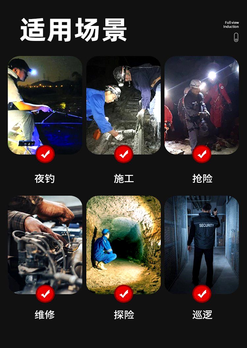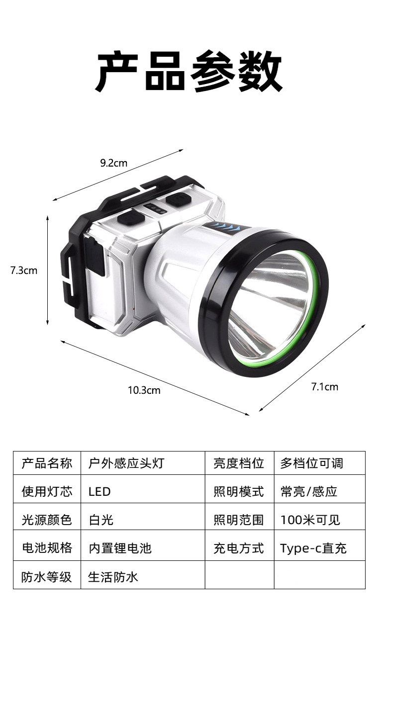 Nuevo faro LED transfronterizo agitando inducción faro USB cargador de cabeza tipo noche corriendo pescando mini faro