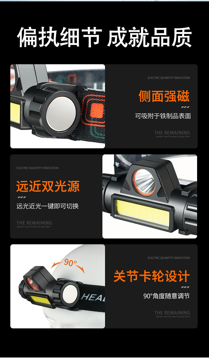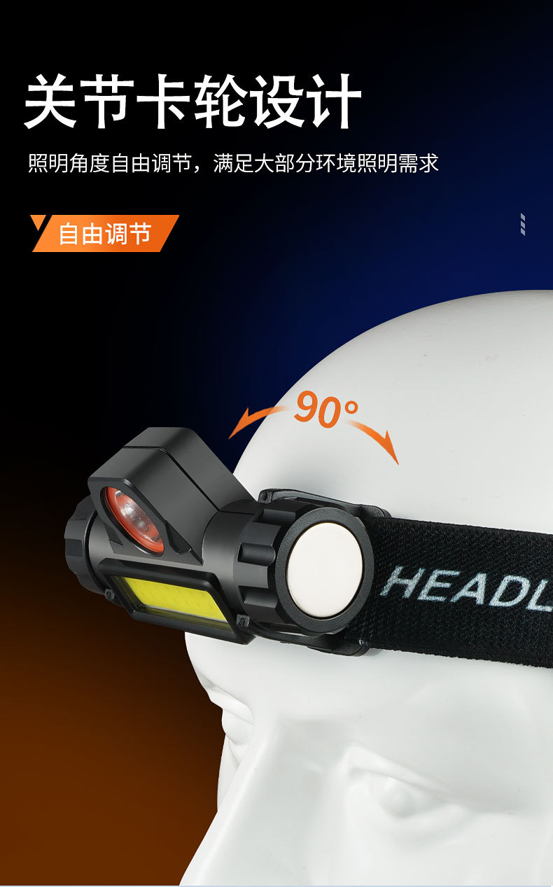 Transfronterizos mini faro de luz fuerte portátil faro de emergencia lámpara magnética USB carga lámpara de trabajo linterna montada en la cabeza