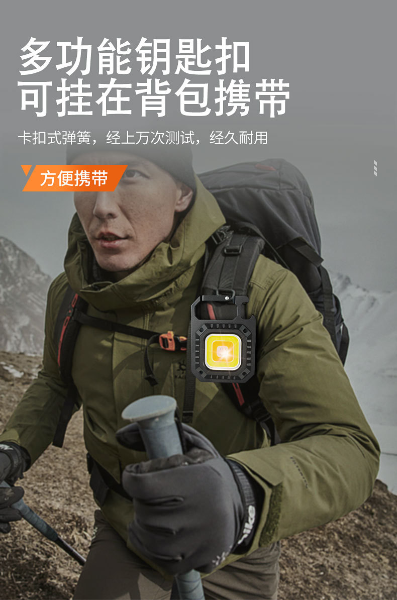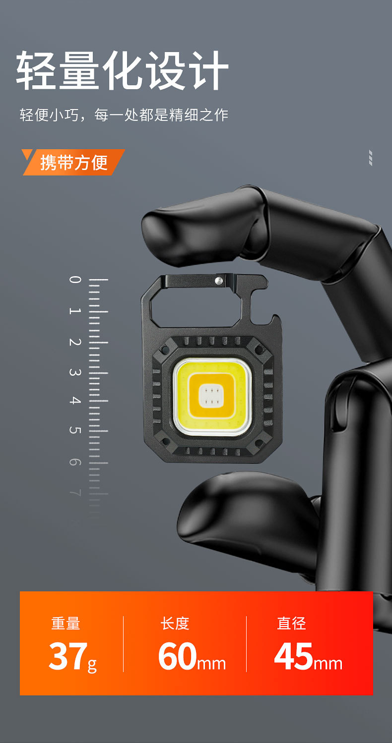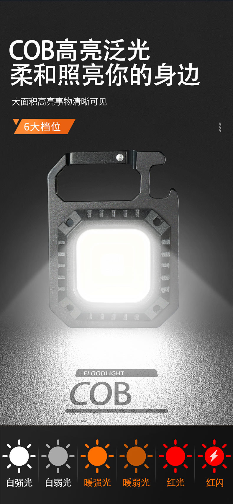 Al aire libre multifuncional mini llavero luz de trabajo COB de alto brillo luz portátil de reparación USB rocío al aire libre de emergencia