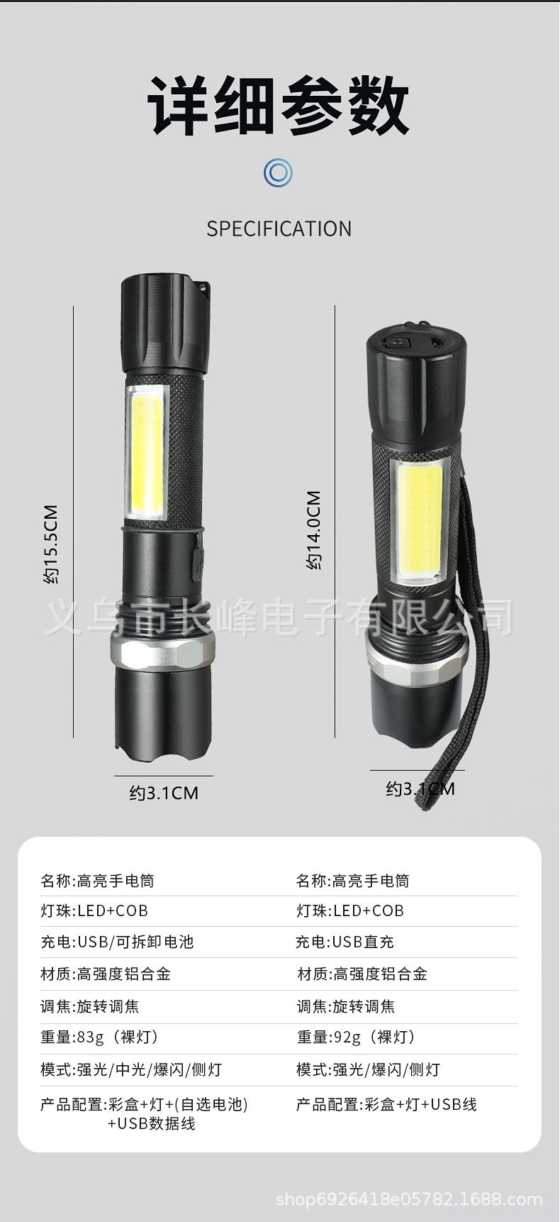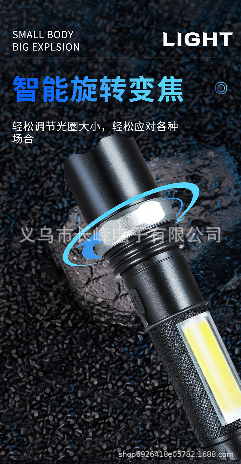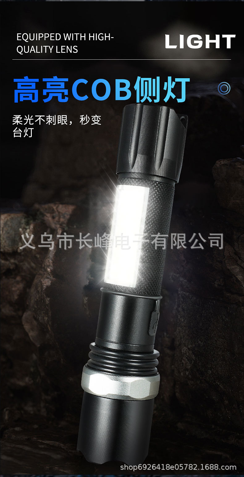 Linterna de múltiples funciones al aire libre transfronteriza resaltar COB lámpara lateral incorporada de gran capacidad Batería de litio linterna de iluminación de larga resistencia