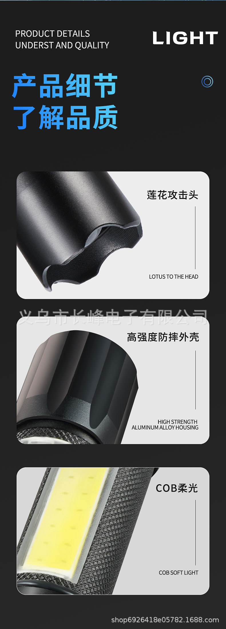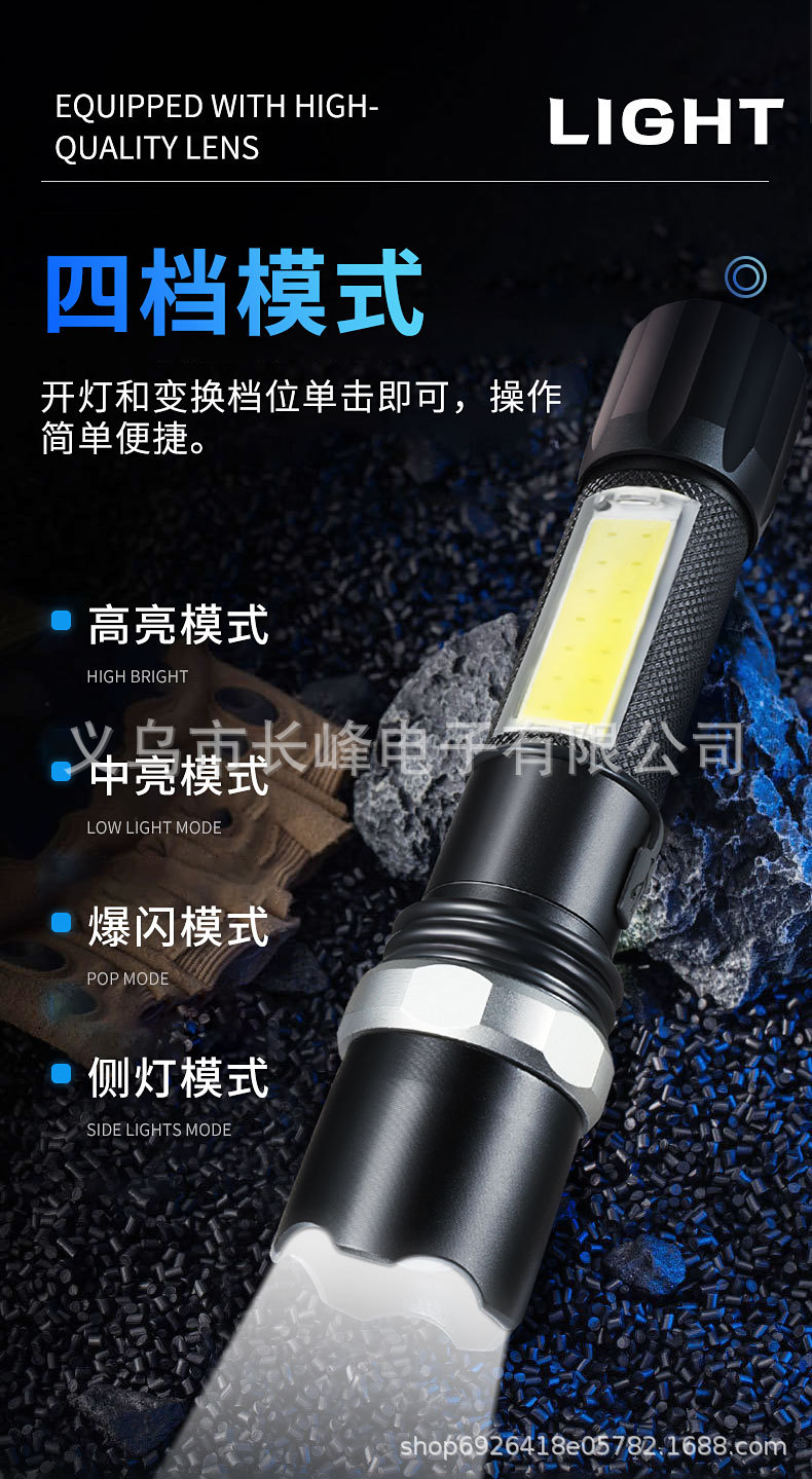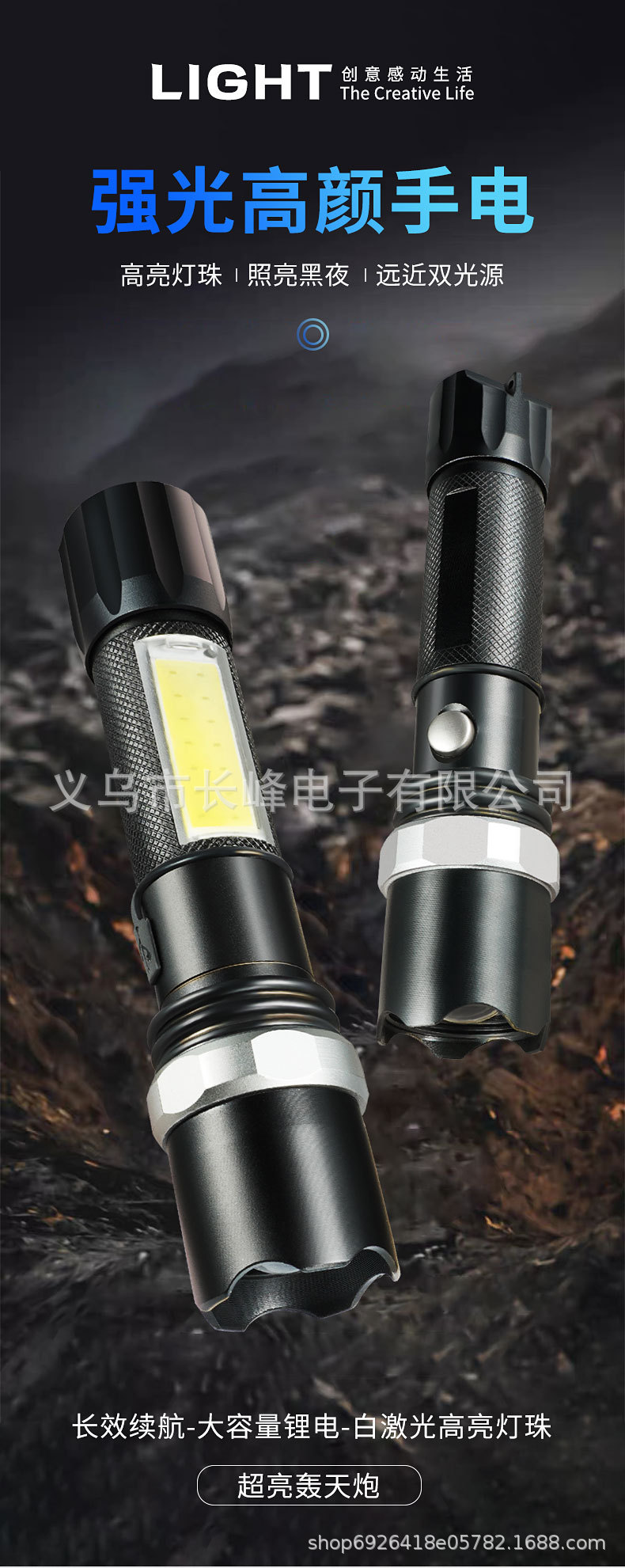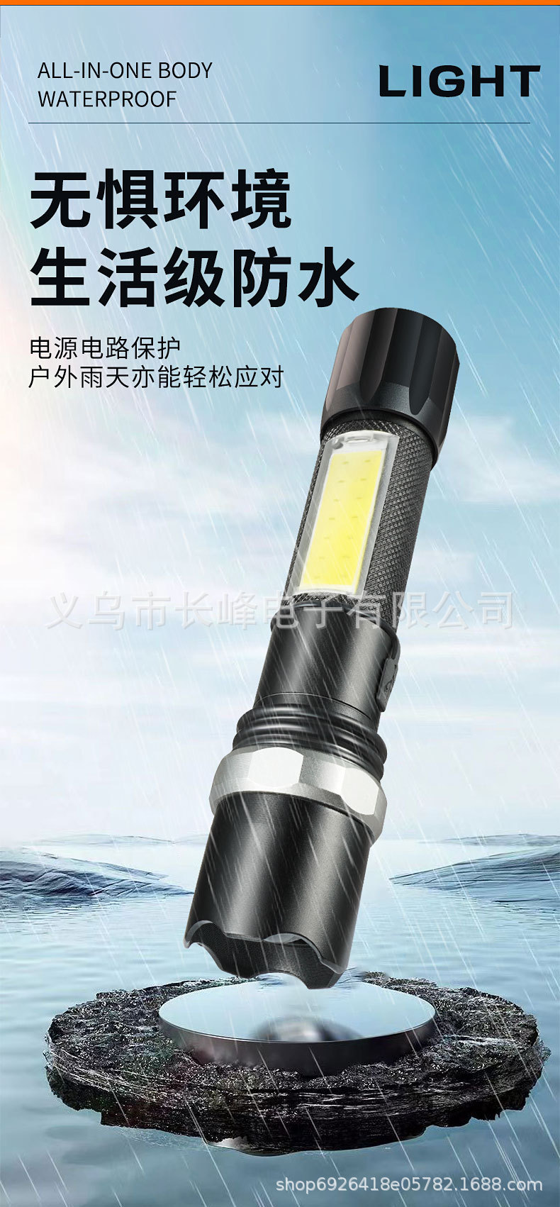 Linterna de múltiples funciones al aire libre transfronteriza resaltar COB lámpara lateral incorporada de gran capacidad Batería de litio linterna de iluminación de larga resistencia
