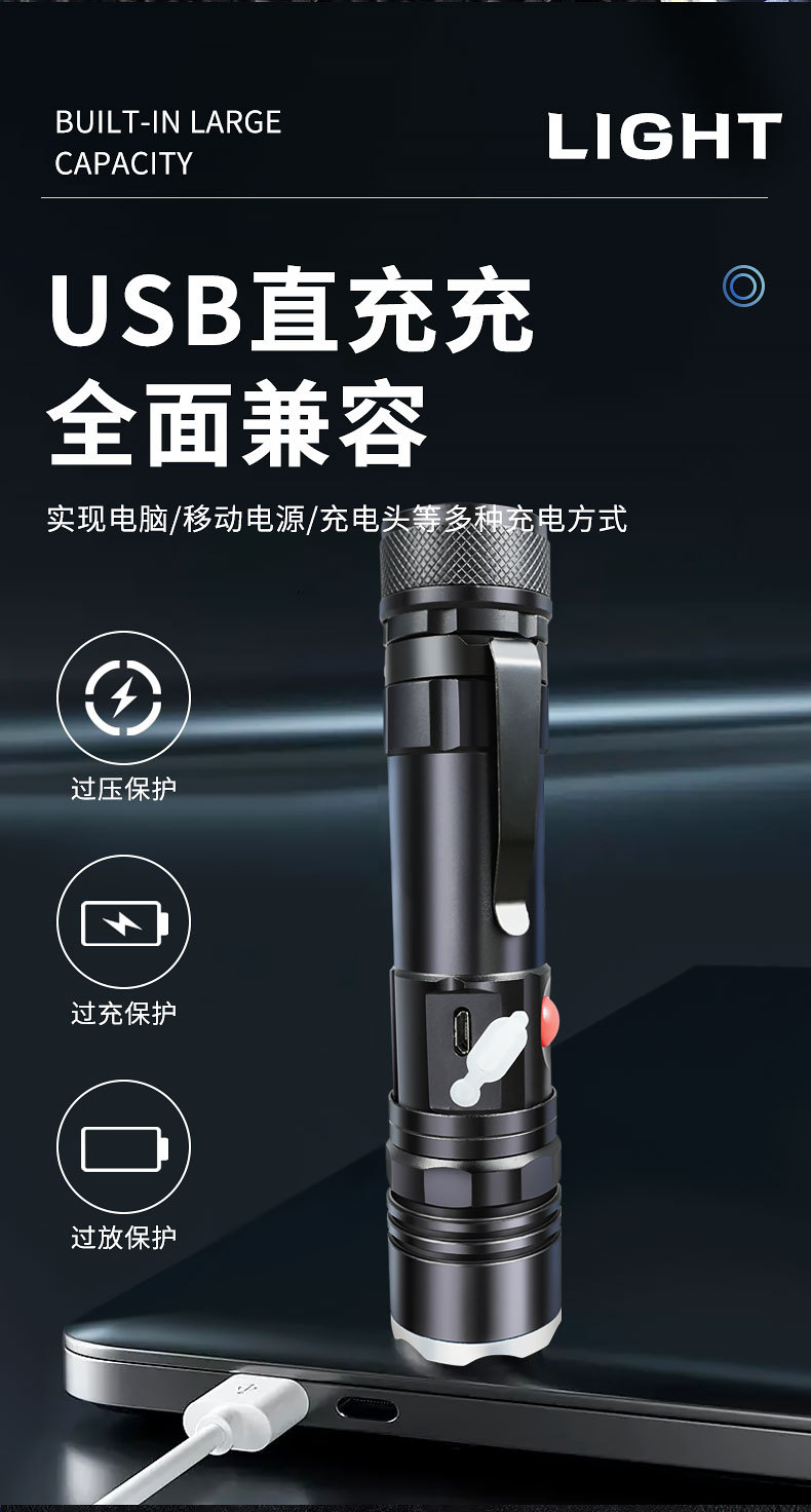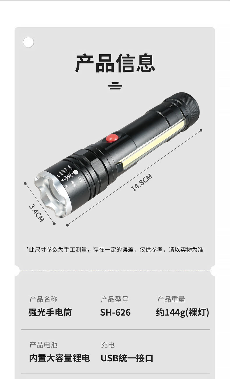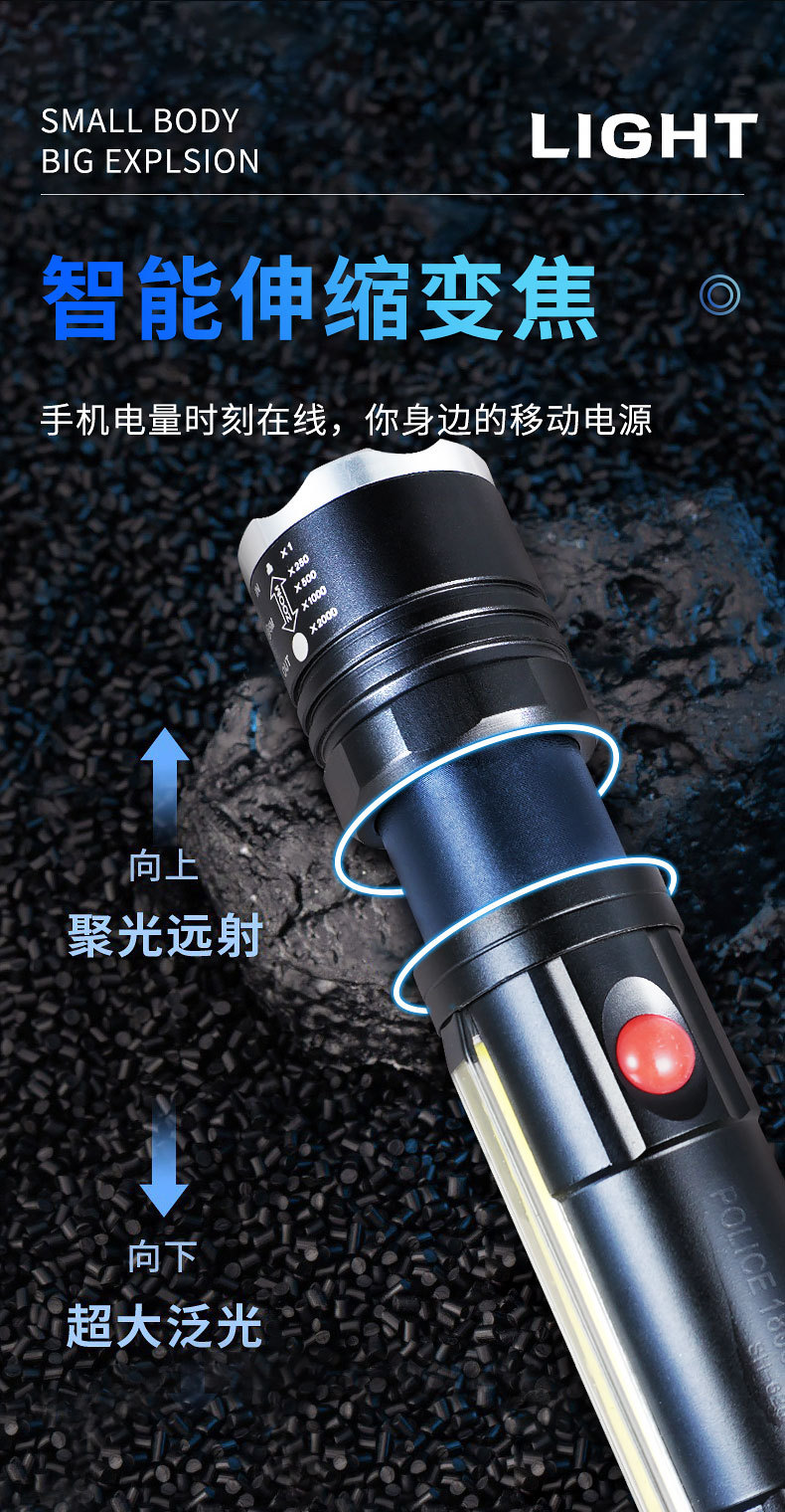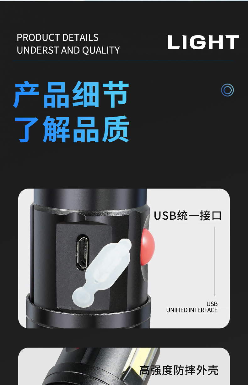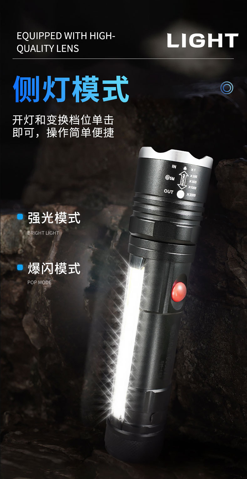 Transfronterizos nueva luz principal T6 + luz lateral COB lámpara de perlas USB carga magnética multifuncional antorcha LED resistente al agua
