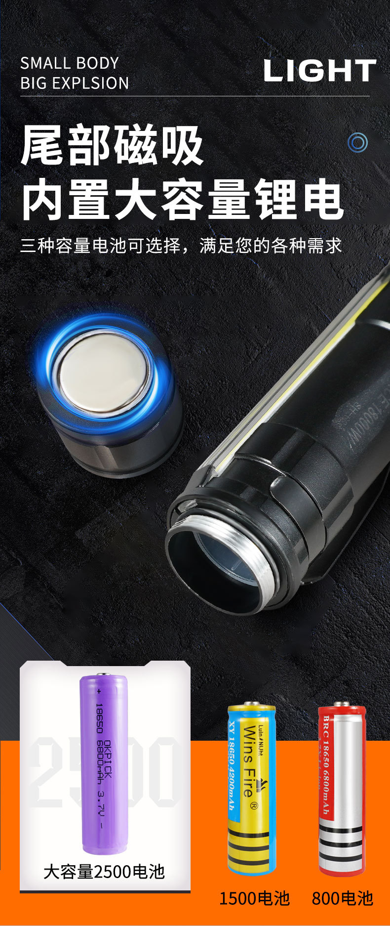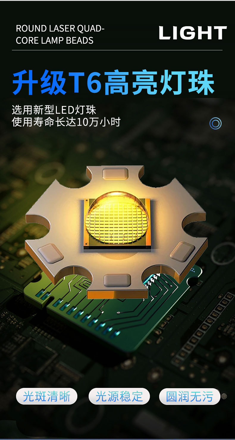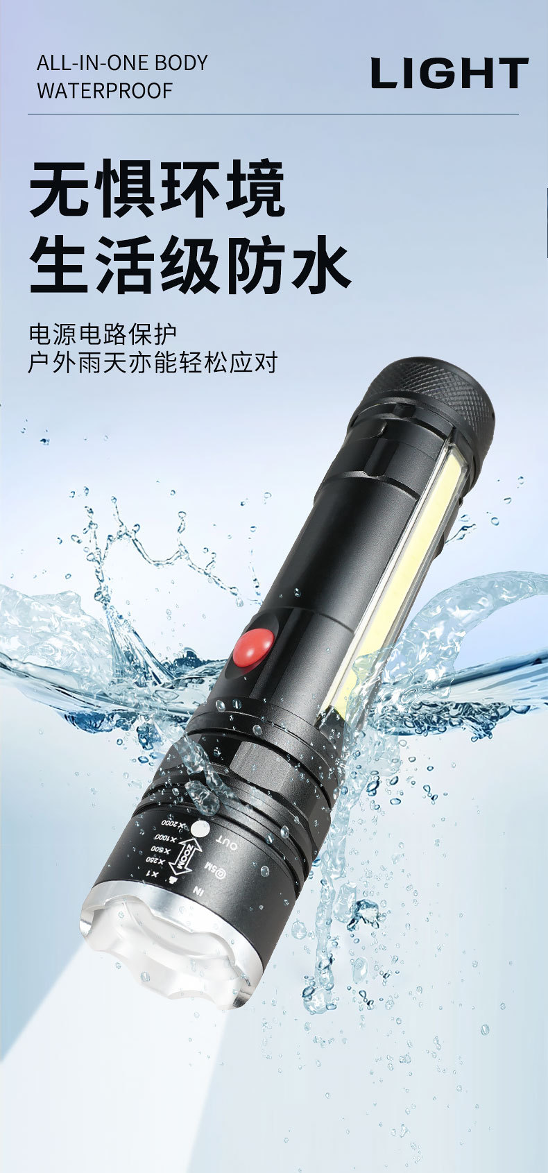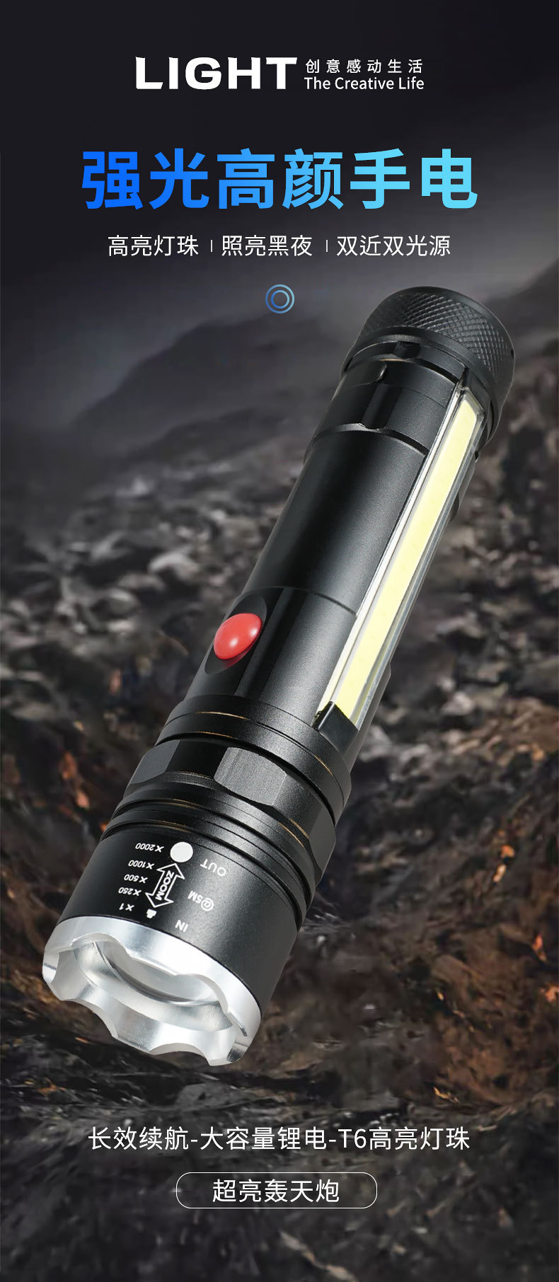 Transfronterizos nueva luz principal T6 + luz lateral COB lámpara de perlas USB carga magnética multifuncional antorcha LED resistente al agua