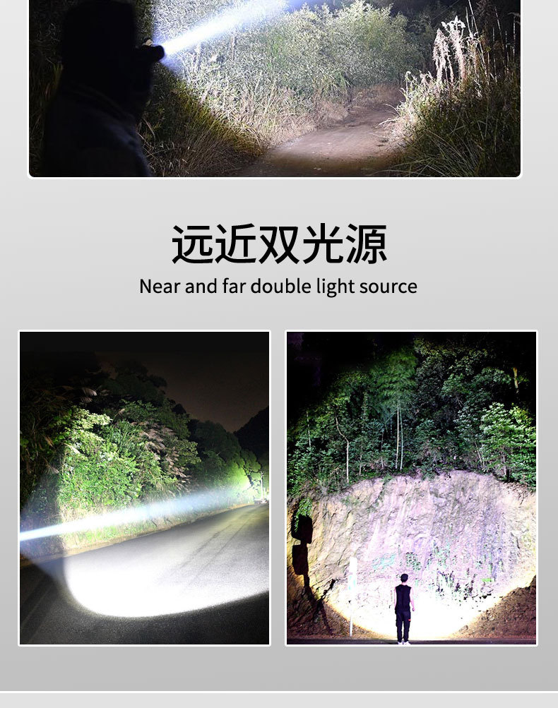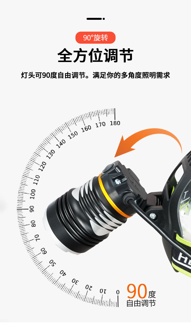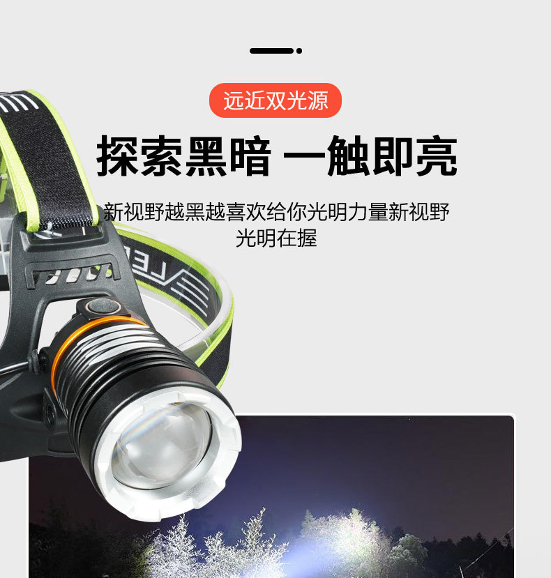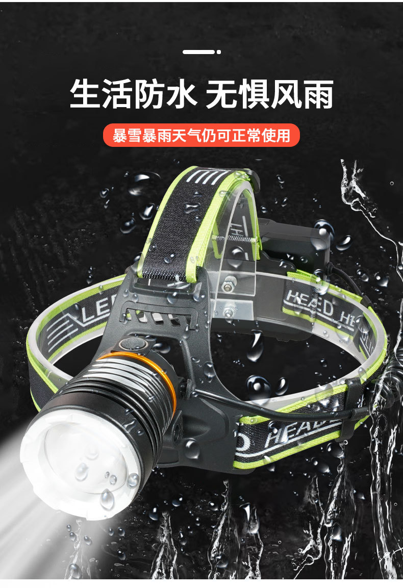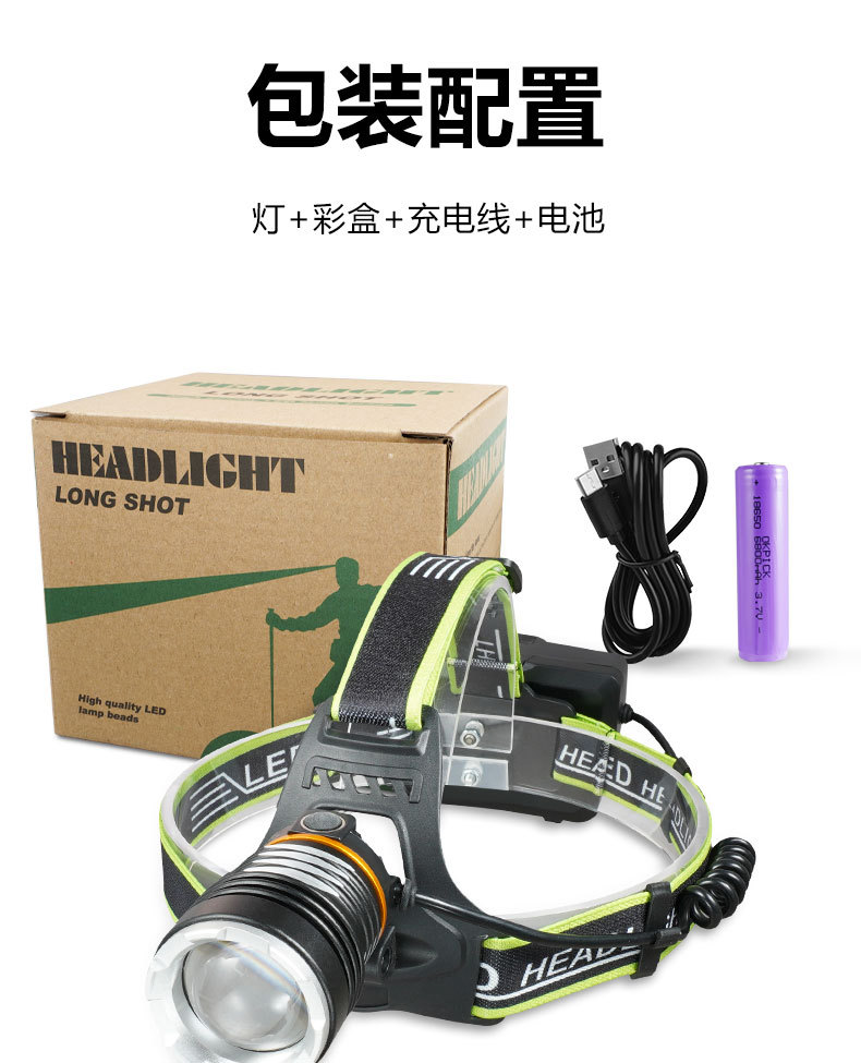 Faros al aire libre transfronterizos larga duración batería de litio láser blanco de aleación de aluminio telescópico enfoque led auricular luz de pesca nocturna