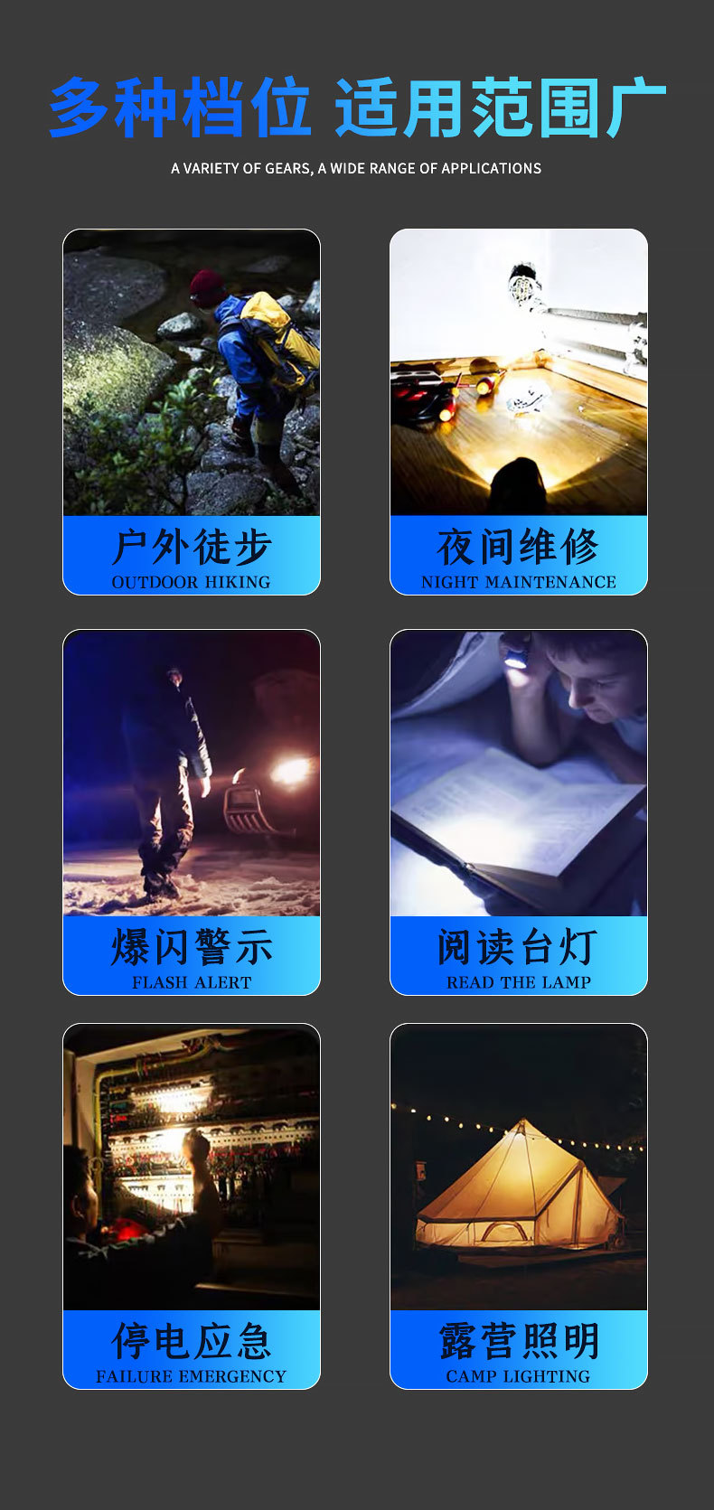 Transfronterizos nueva linterna al aire libre iluminación LED carga de luz alta emisión de emergencia portátil fábrica directa