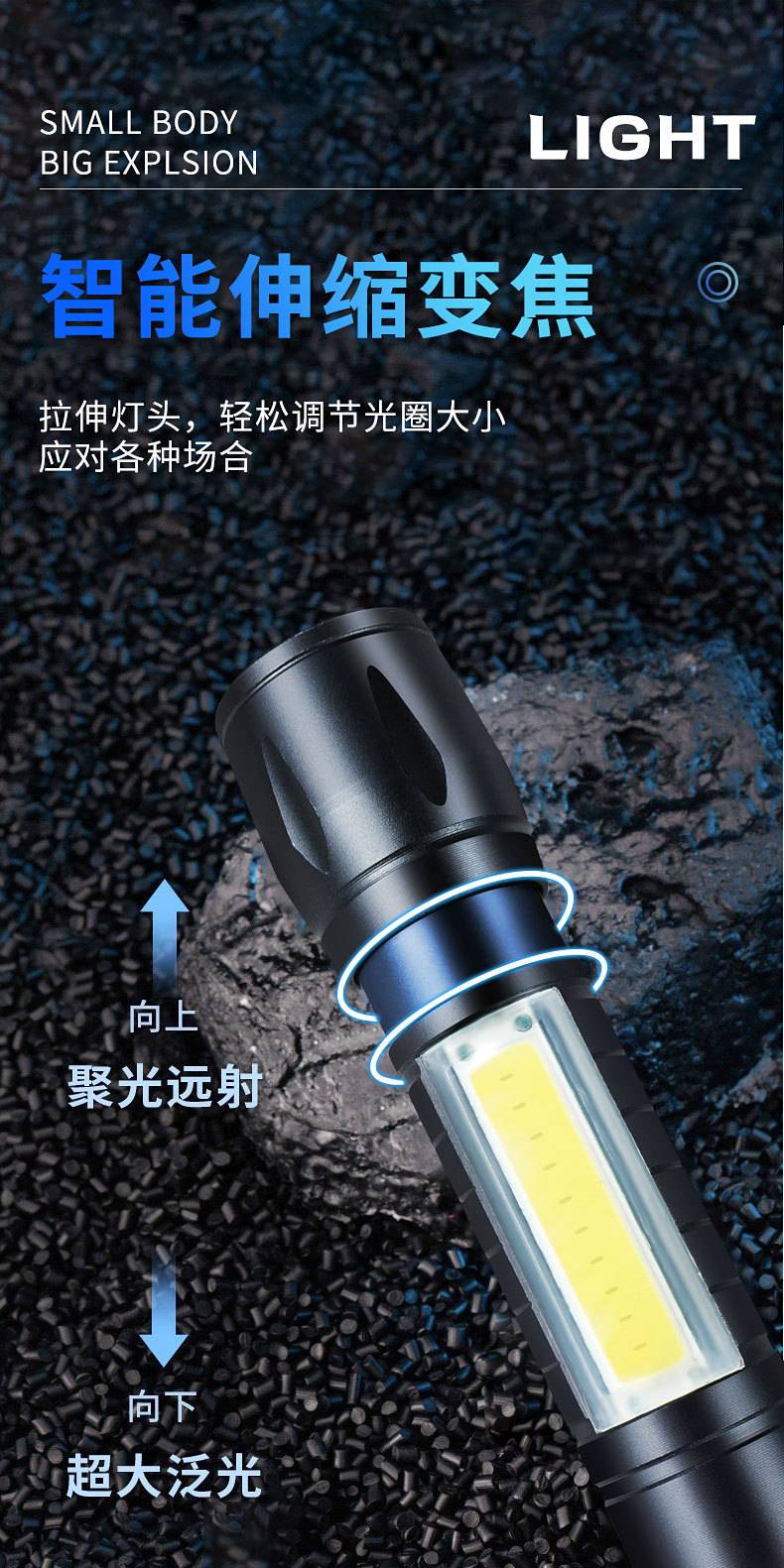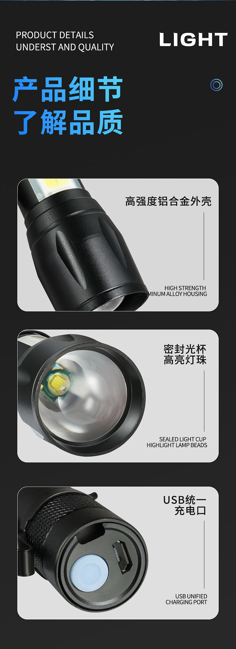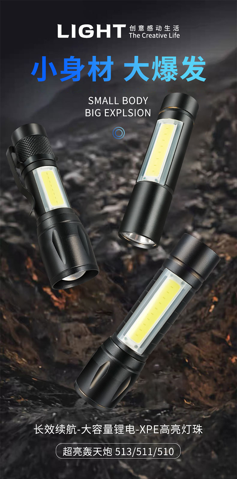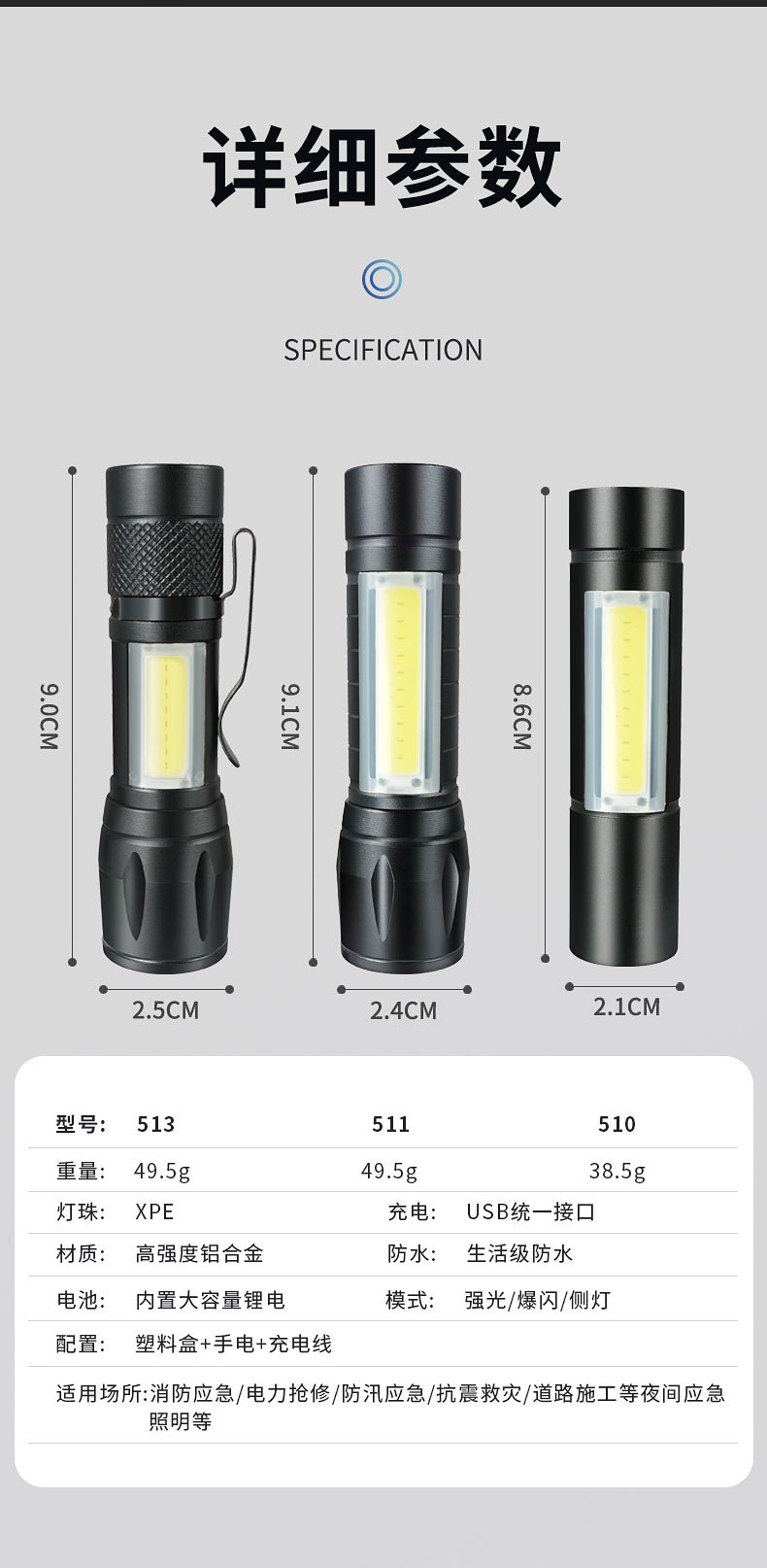511 luz brillante mini linterna COB lámpara lateral USB recargable al aire libre viajes domésticos multifuncional linterna regalo