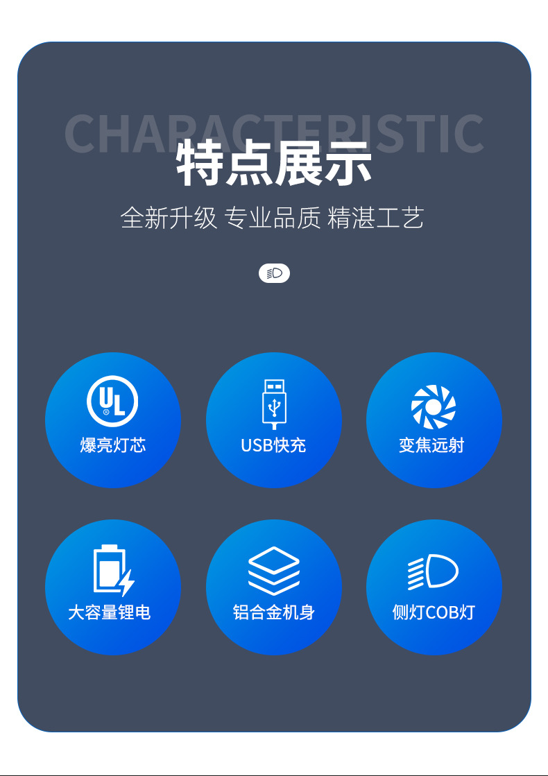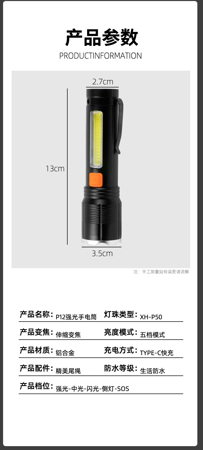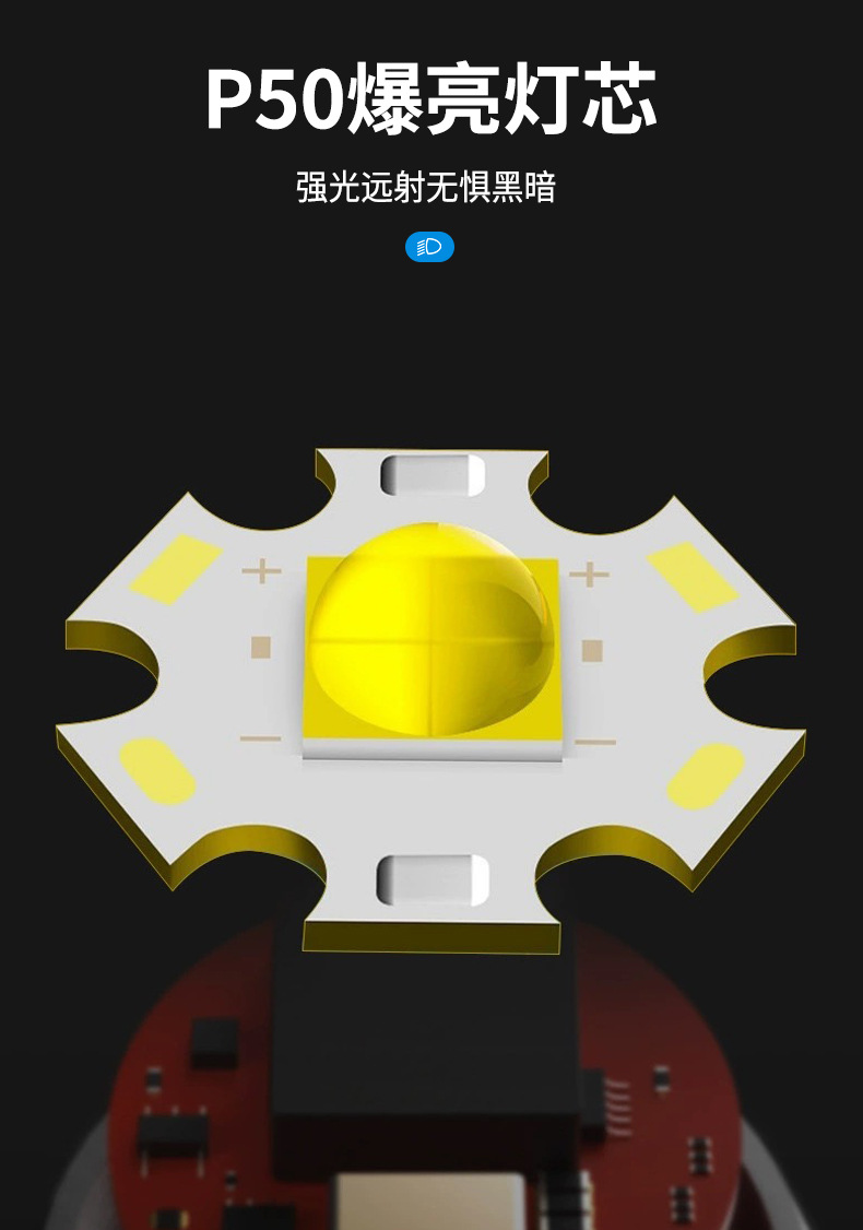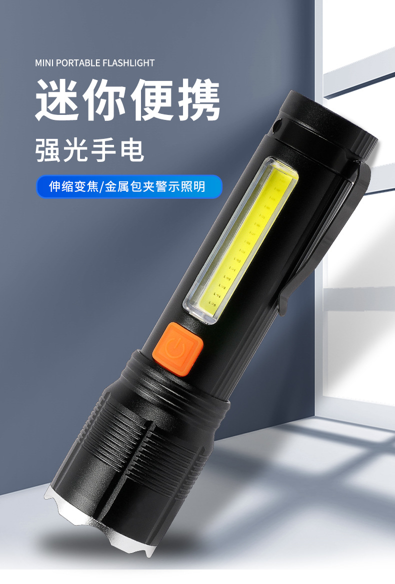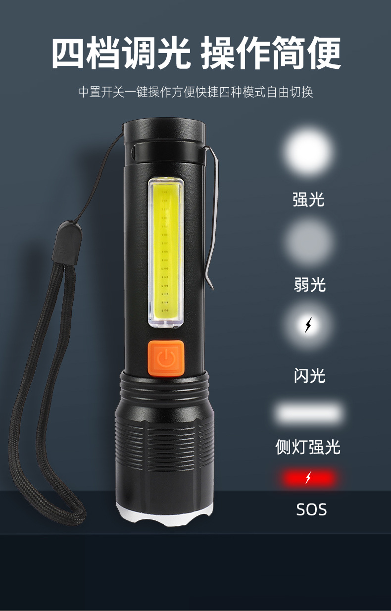 2024 nueva aleación de aluminio P50 COB lámpara lateral de advertencia luz de trabajo luz intensa iluminación al aire libre bolígrafo antorcha