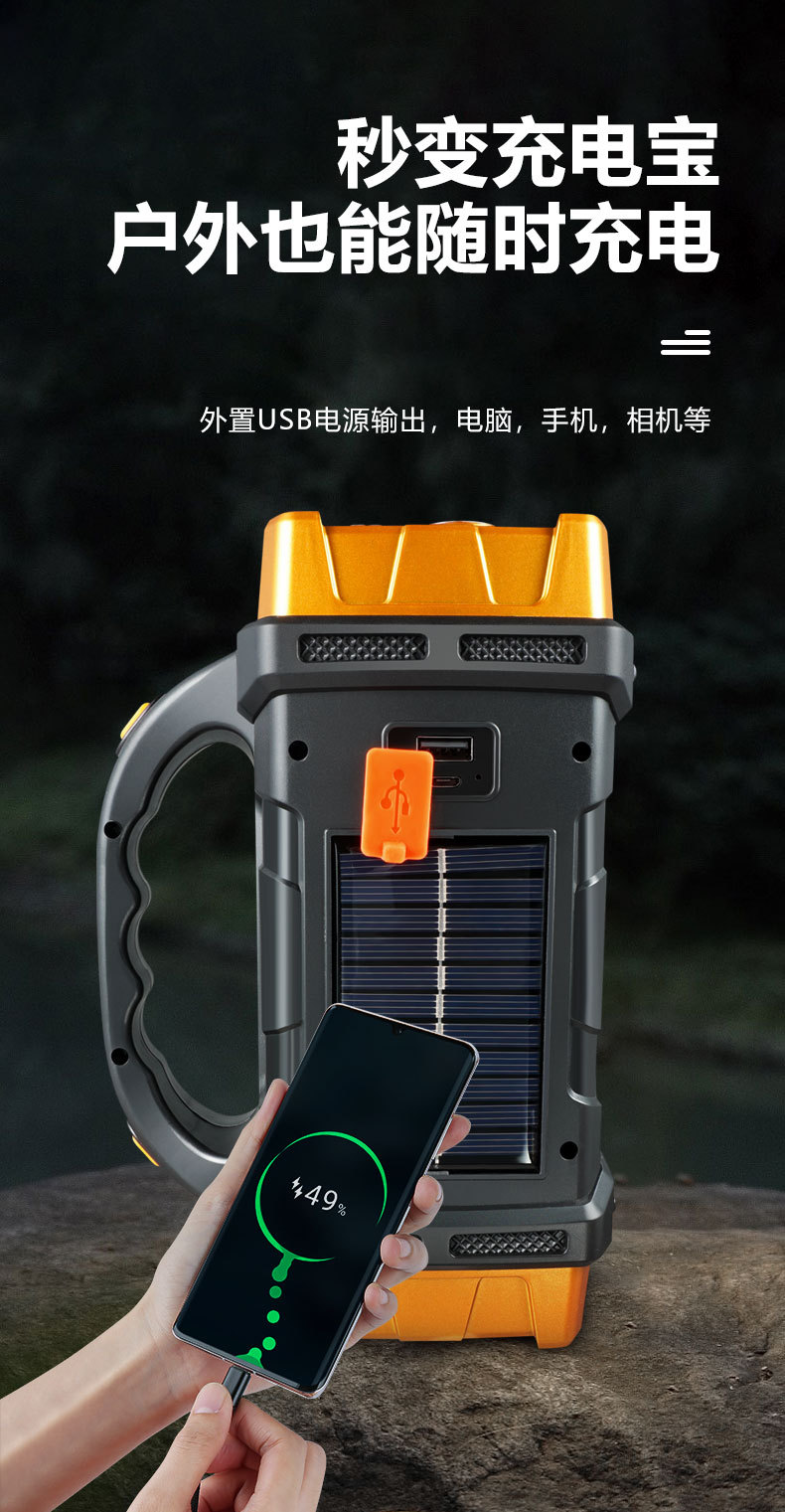 Transfronteriza Solar LED multi-función de la lámpara portátil USB Dual FUENTE DE Luz al aire libre Reflector lámpara de camping luz fuerte linterna