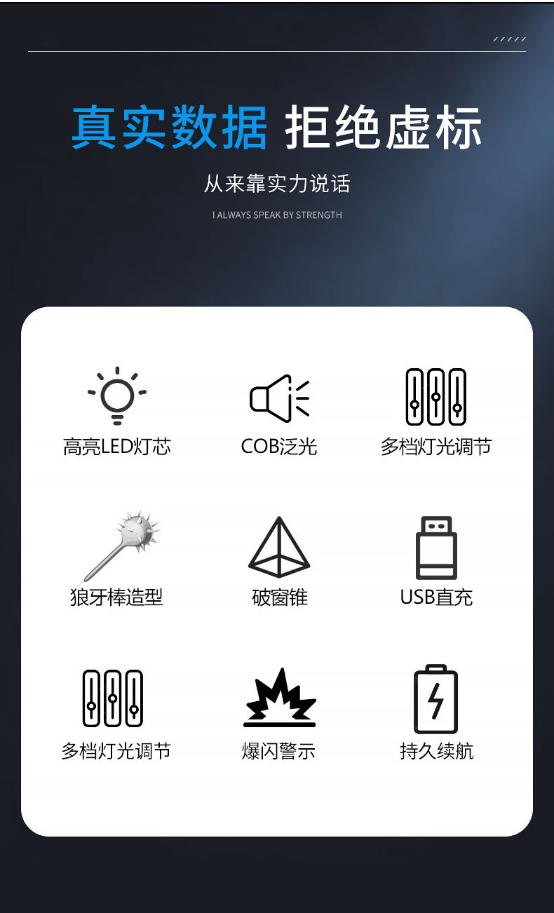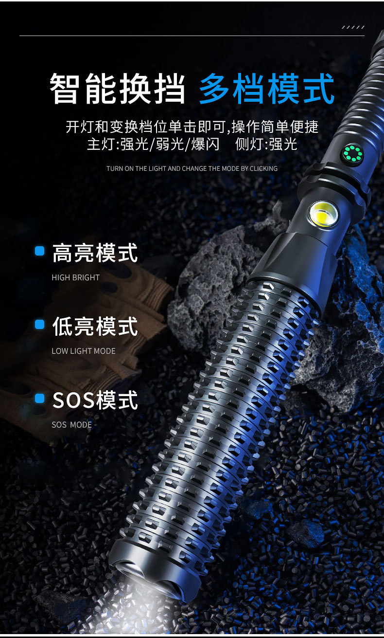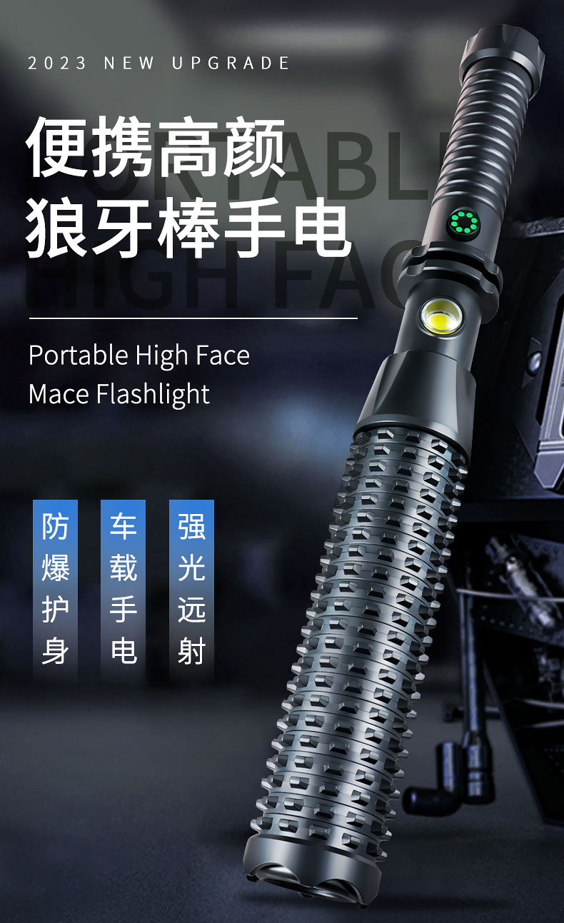 Linterna anti-Lobo transfronteriza palo de diente de lobo martillo de ventana roto COB linterna al aire libre autodefensa artefacto patrulla emergencia billar palo