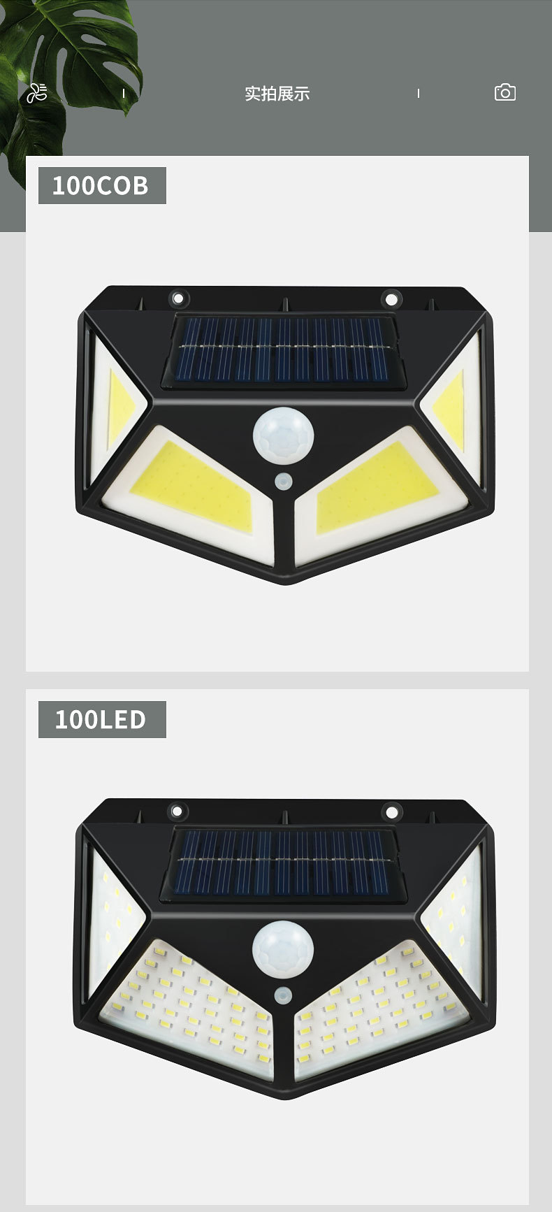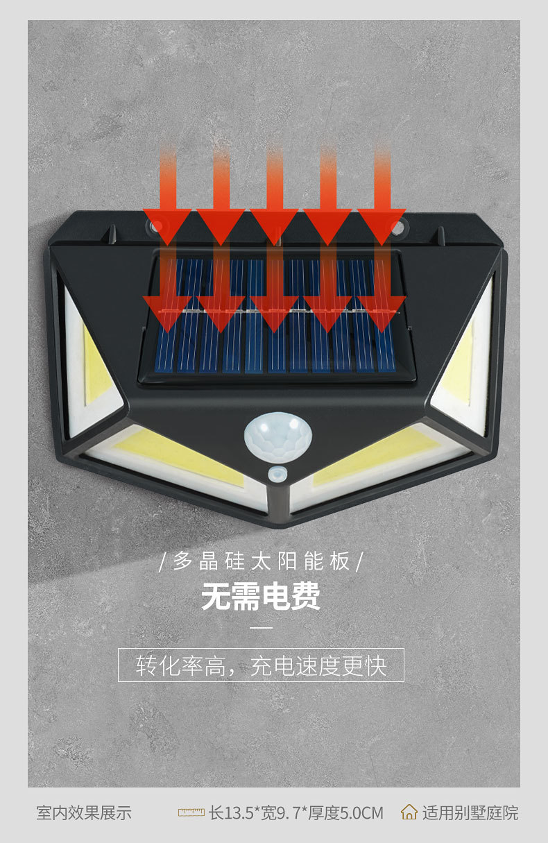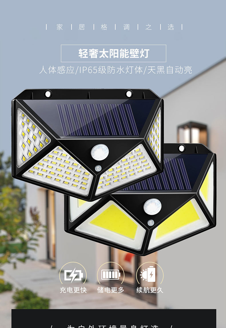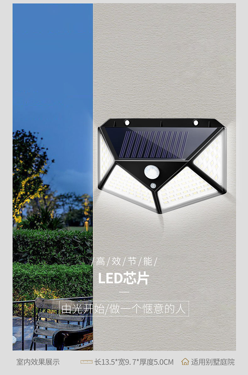 100LED lámpara de inducción solar lámpara de pared de jardín multifuncional luz de pared de sensor de cuerpo humano de luz de pared de luz de luz negra
