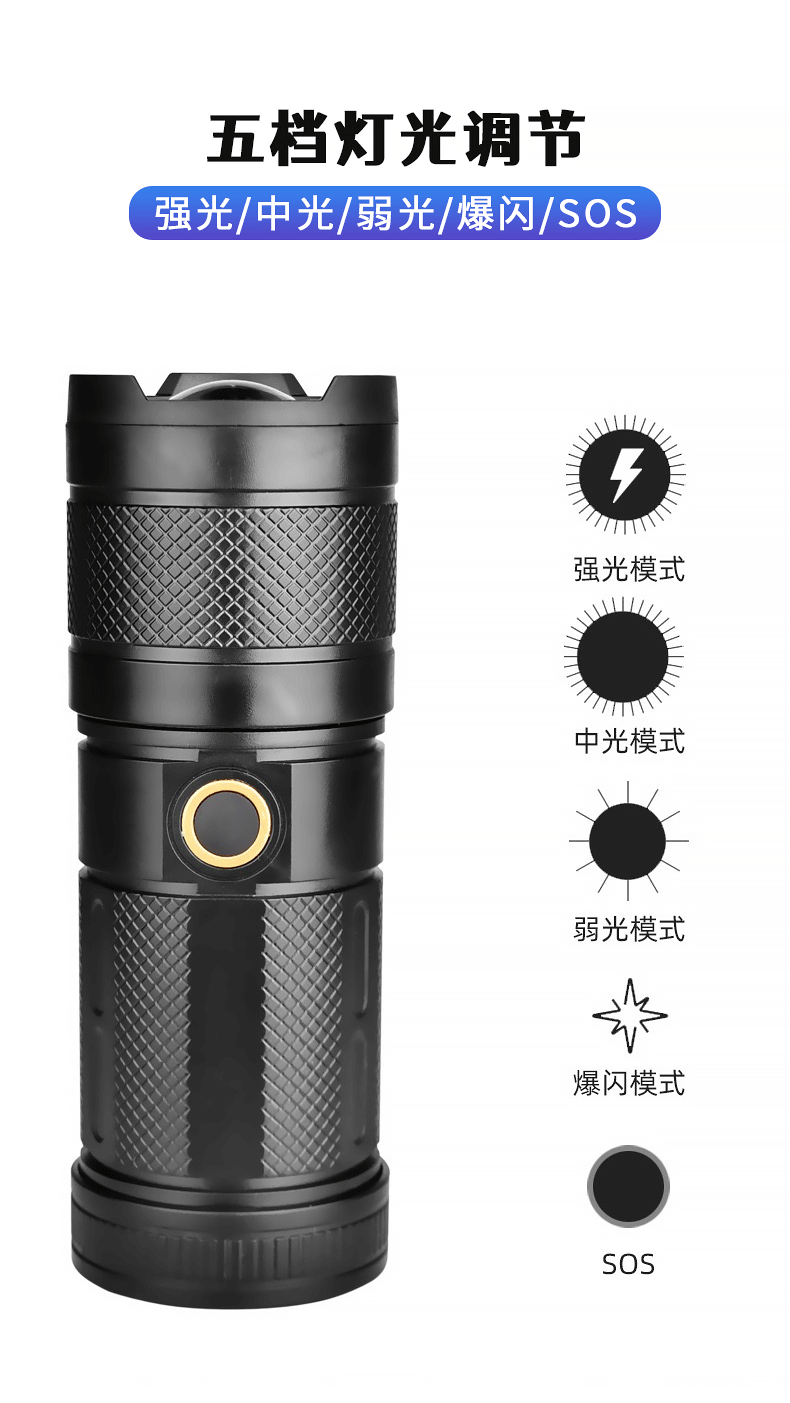 Linterna de luz fuerte transfronteriza LEDP50 pequeña pistola de acero que carga al aire libre remoto multifunción zoom telescópico plástico