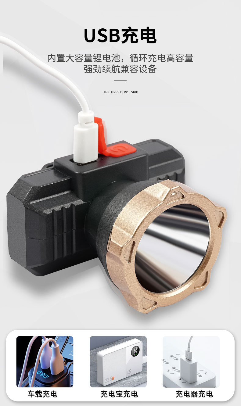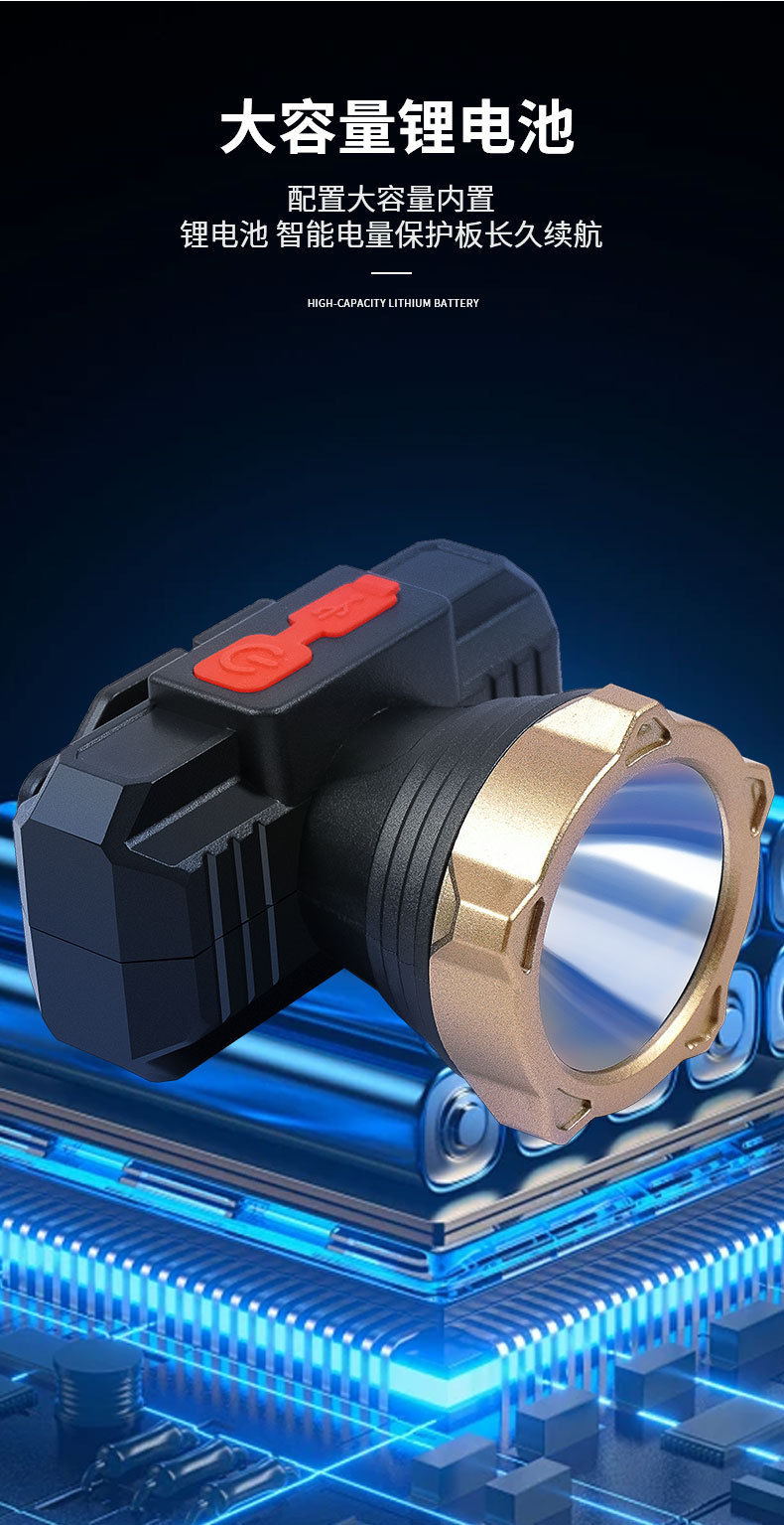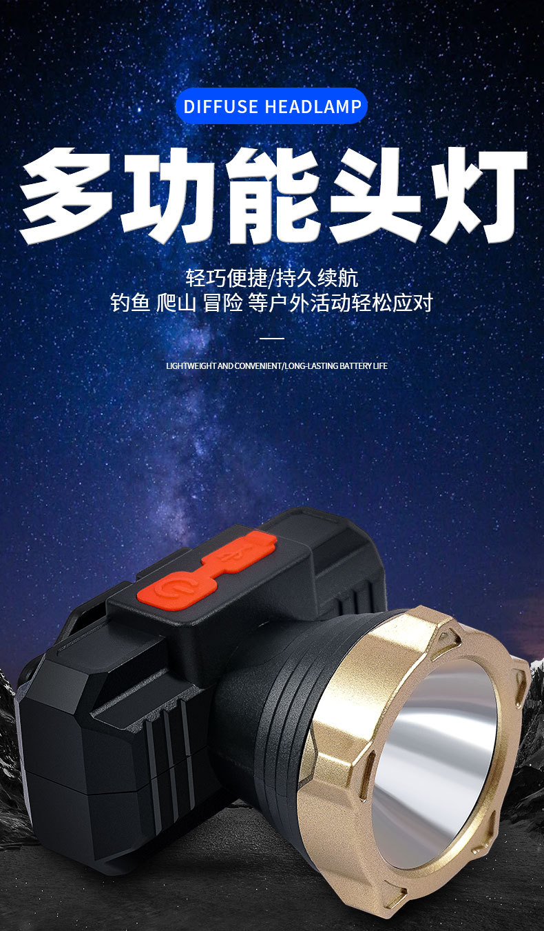 Iluminación al aire libre luz LED super brillante lámpara de cabeza multifuncional fuerte camping pescar USB carga lámpara de cabeza impermeable
