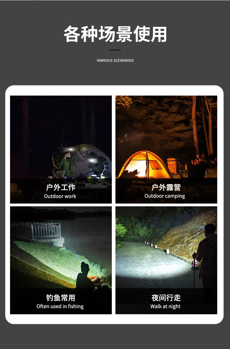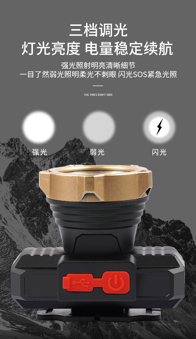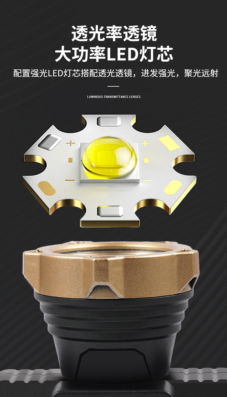 Iluminación al aire libre luz LED super brillante lámpara de cabeza multifuncional fuerte camping pescar USB carga lámpara de cabeza impermeable