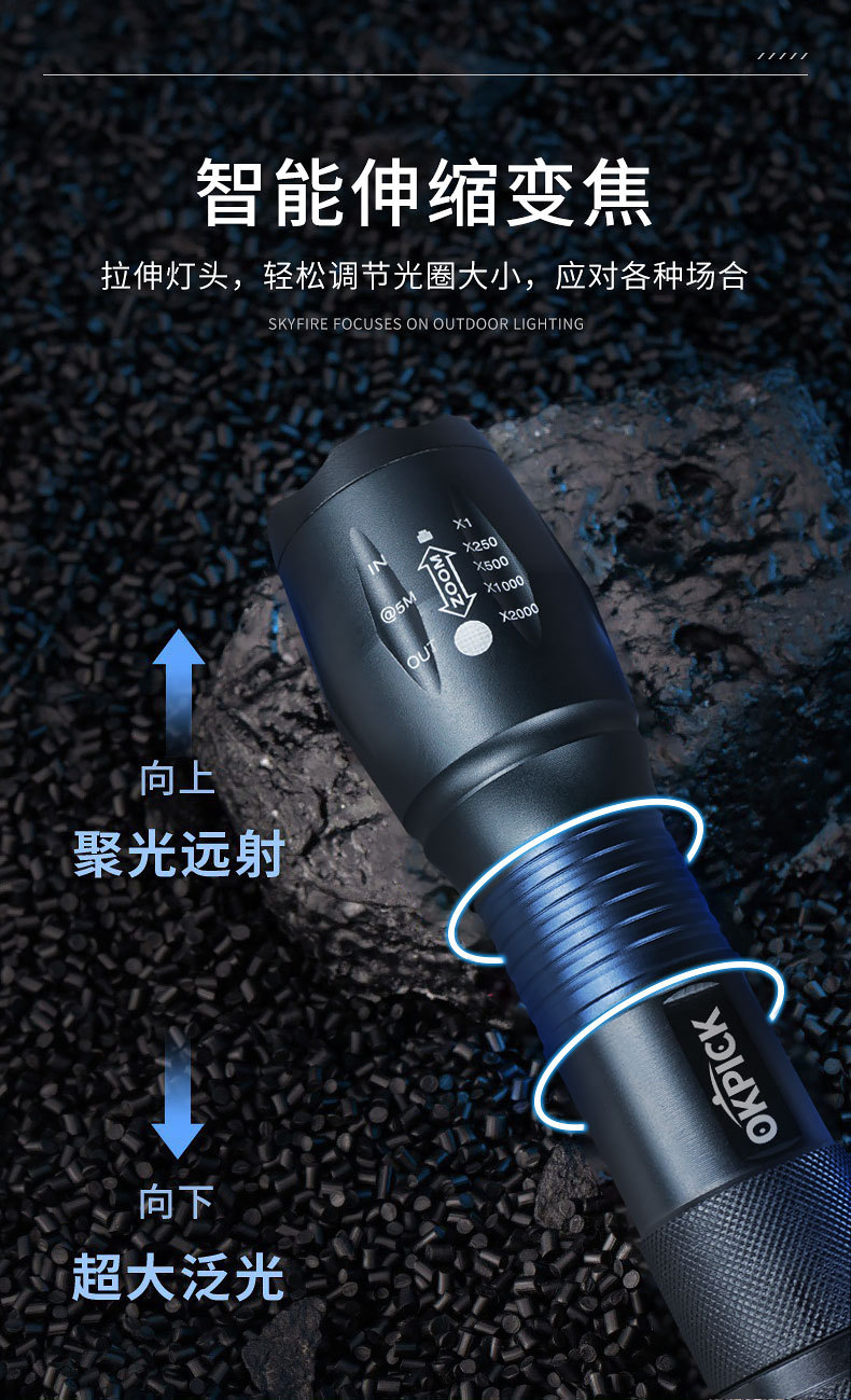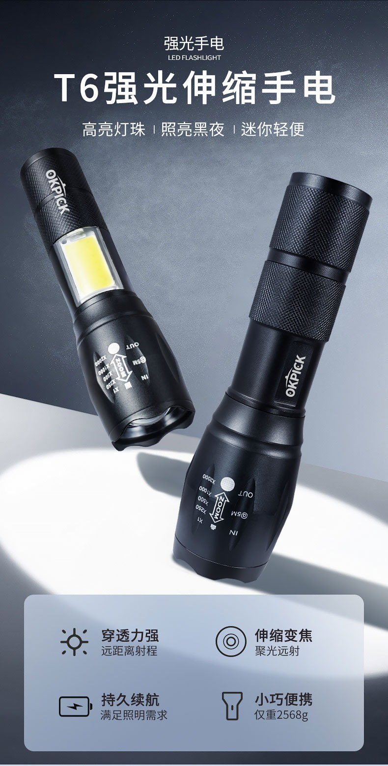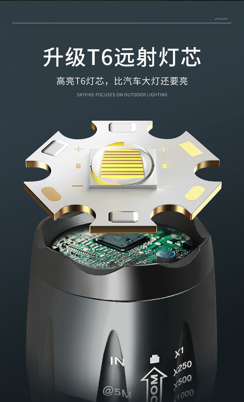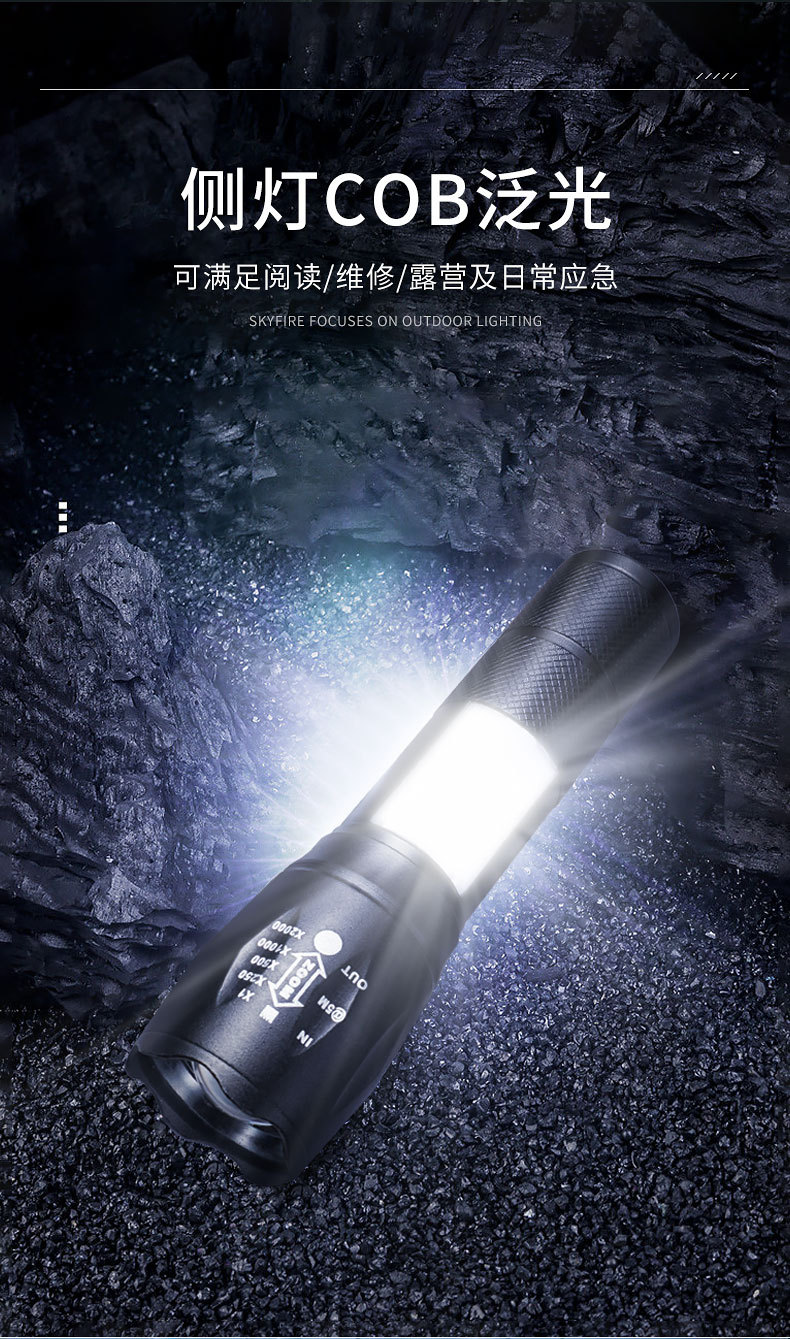 Cruz-frontera T6 aleación de aluminio linterna recargable luz fuerte enfoque telescópico regalo al aire libre linterna de iluminación de emergencia