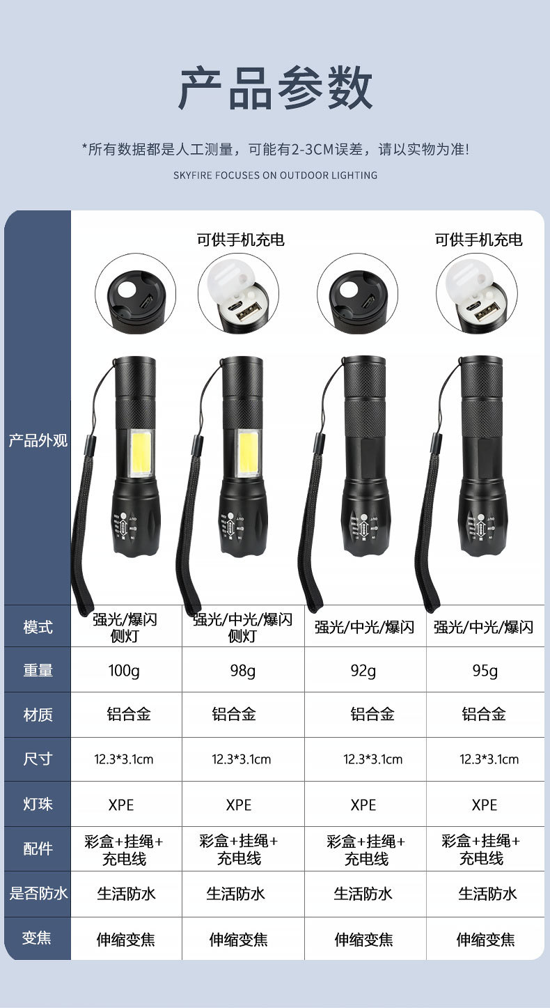 | Colores | Mini linterna 511 (con luz lateral COB),Linterna 812A,Linterna 812A-2 (con puerto de salida),Linterna 812C (con luz lateral COB),Linterna 812C-2 (con luz lateral COB) |