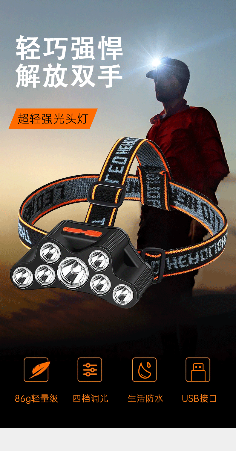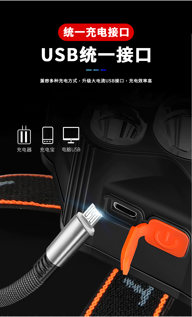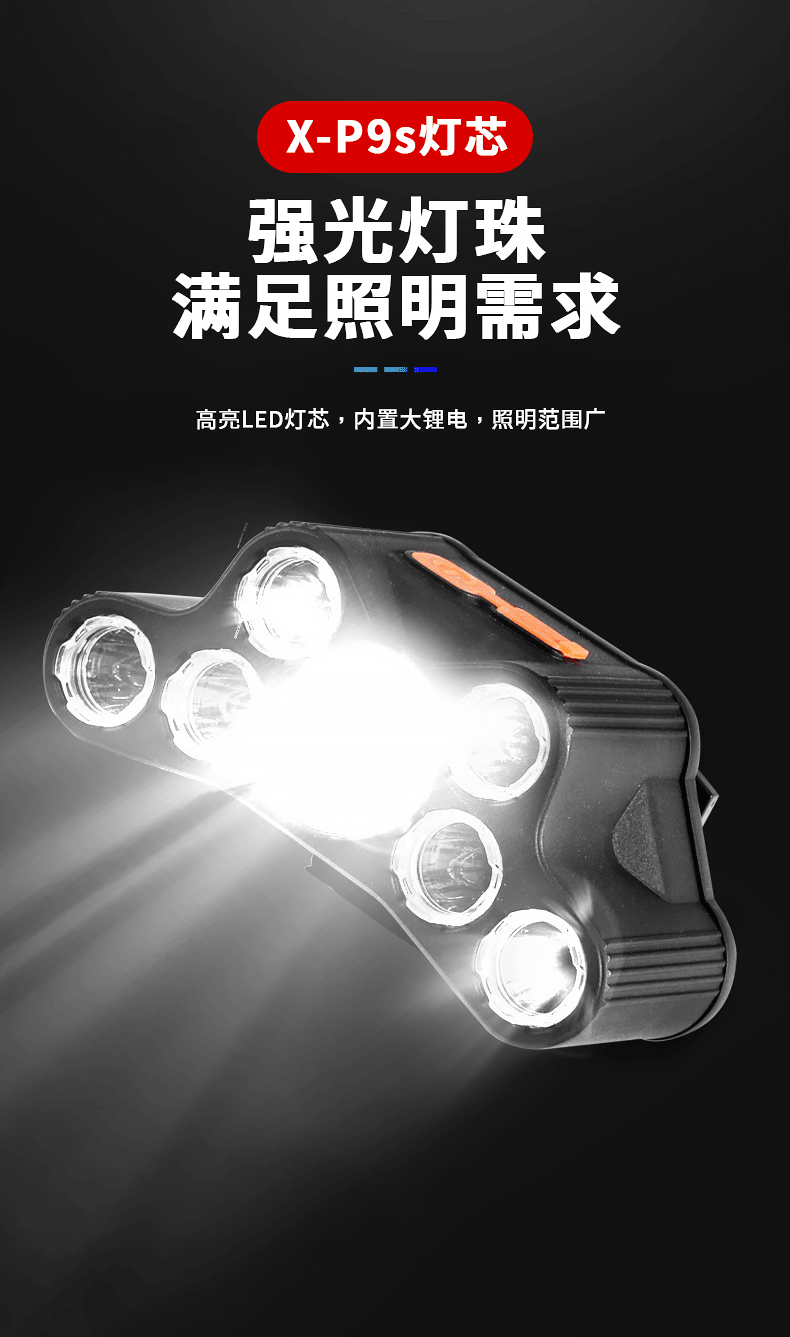 Cruz-frontera LED faro USB recargable fuerte luz de largo alcance multi-función al aire libre noche pesca montar de largo alcance linterna montada en la cabeza