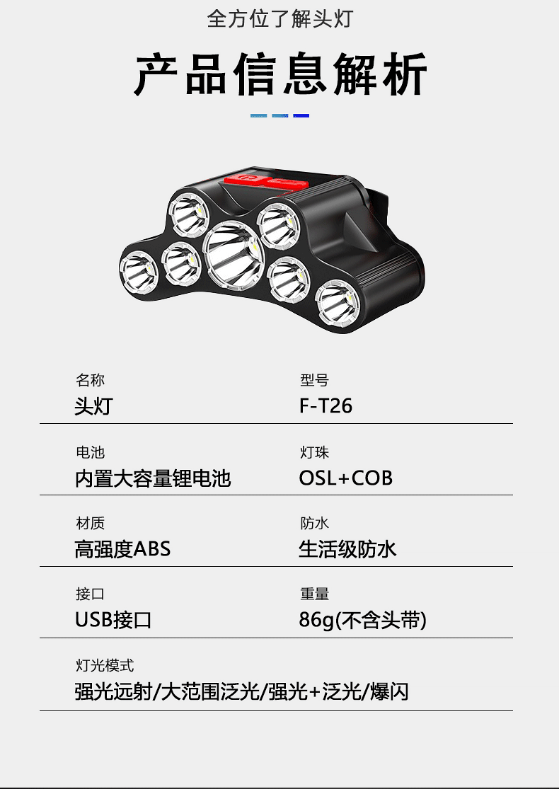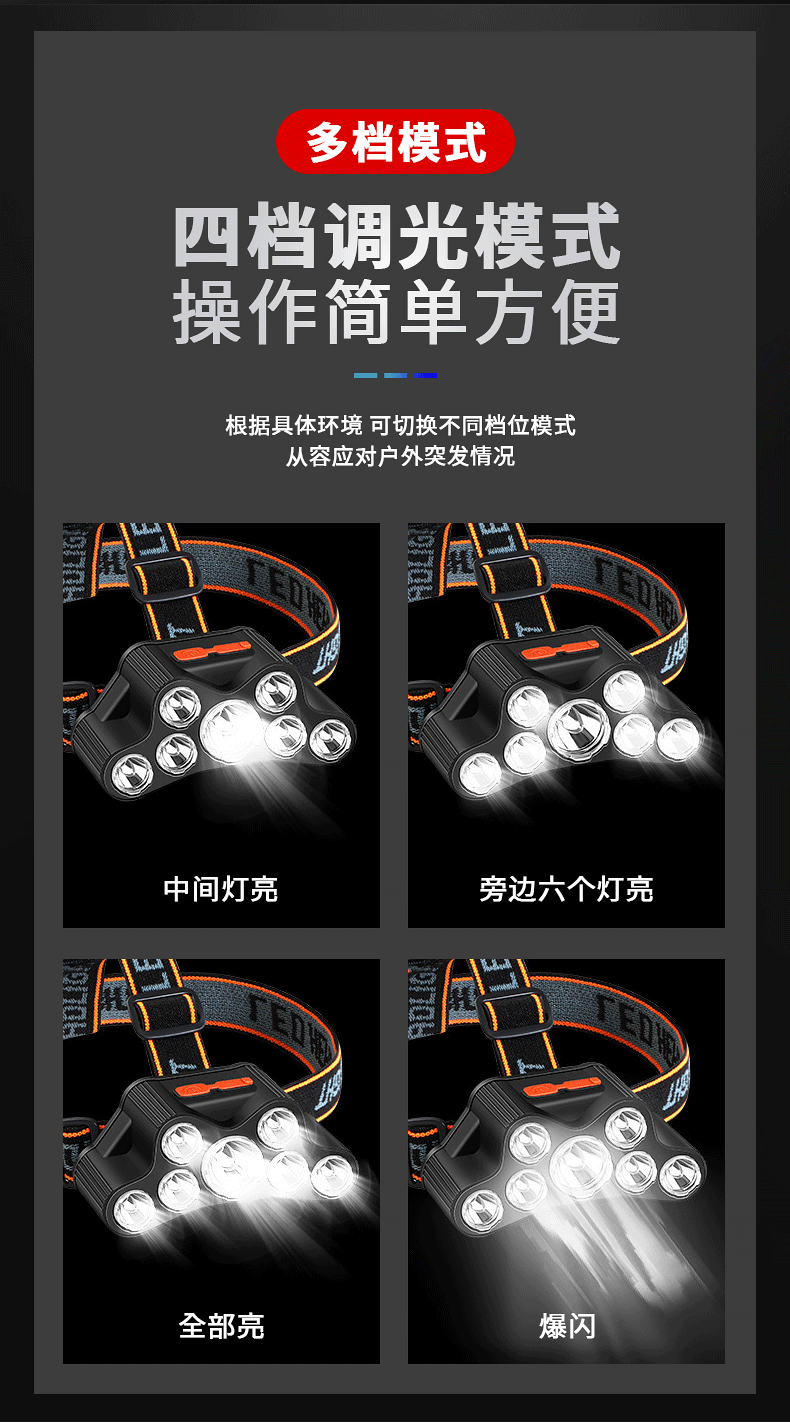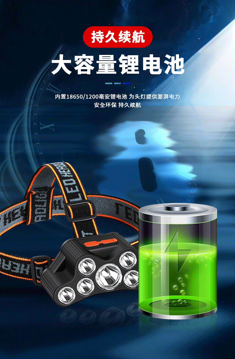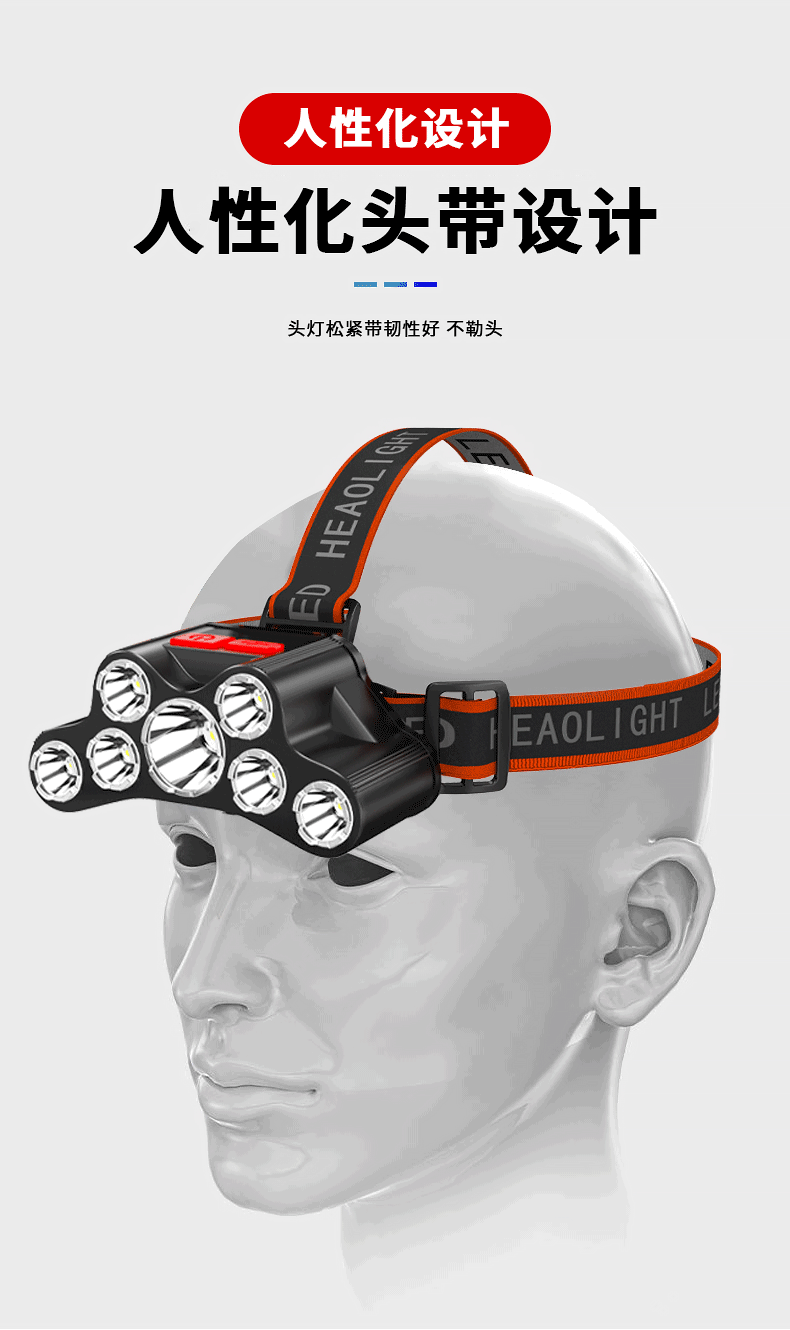 Cruz-frontera LED faro USB recargable fuerte luz de largo alcance multi-función al aire libre noche pesca montar de largo alcance linterna montada en la cabeza
