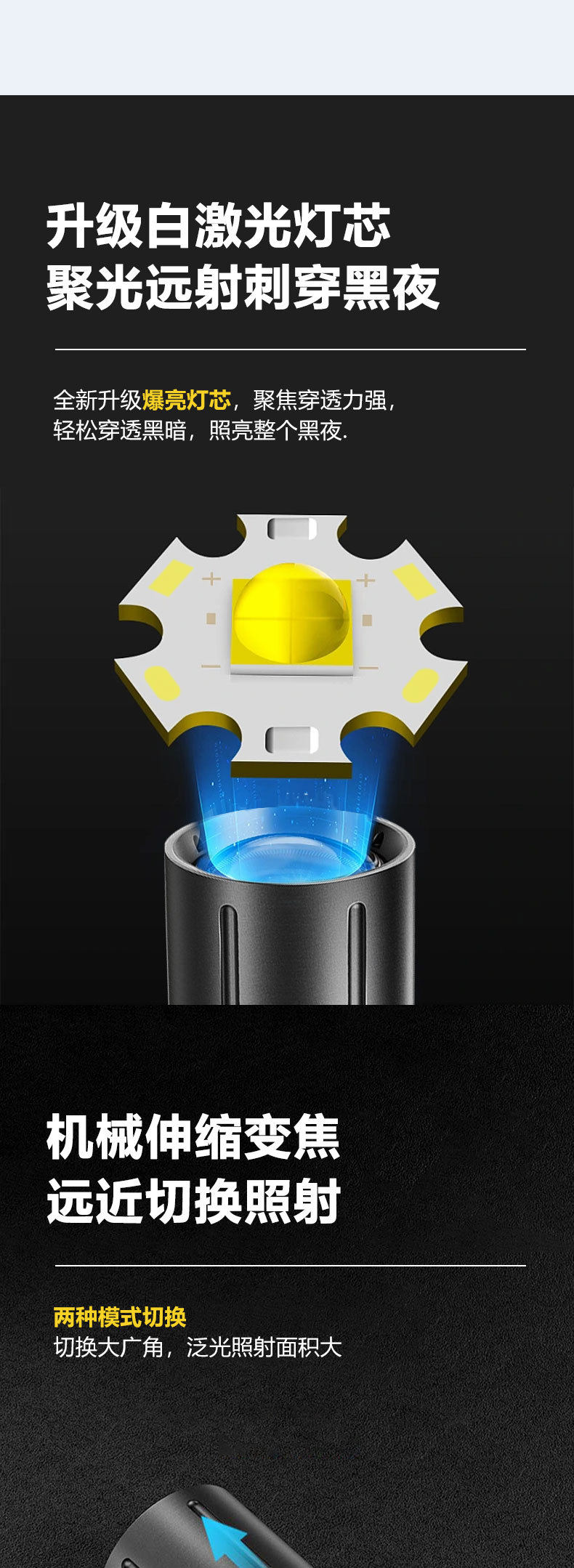 Linterna de luz fuerte al aire libre portátil mini blanco láser de largo alcance linterna de aleación de aluminio sonda telescópica Luz de patrulla