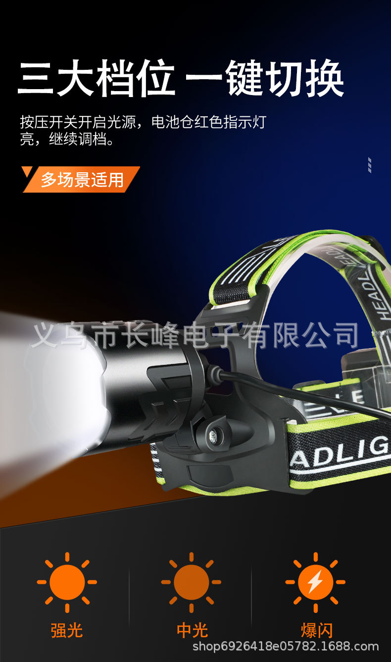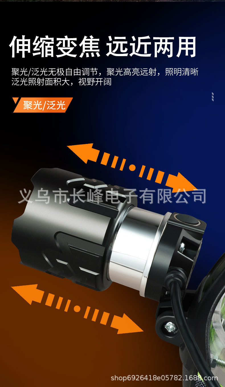 Transfronterizo al aire libre faro láser blanco de larga resistencia de aleación de aluminio de enfoque telescópico de carga USB lámpara de pesca montada en la cabeza