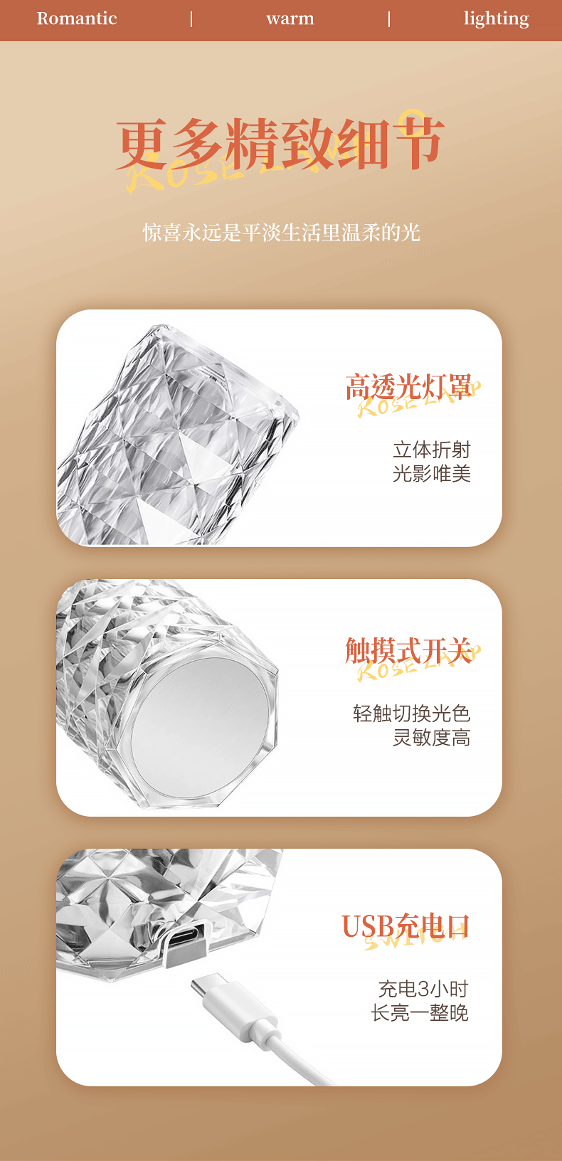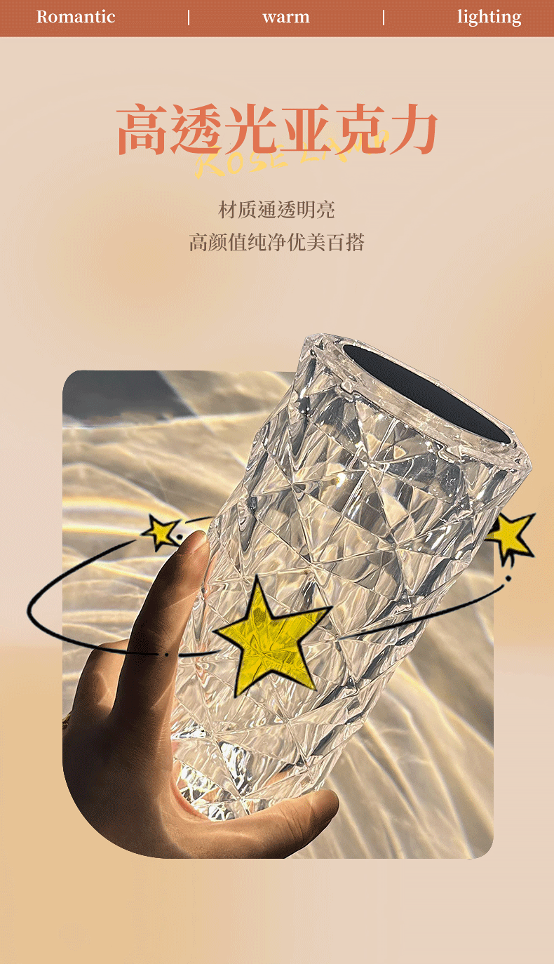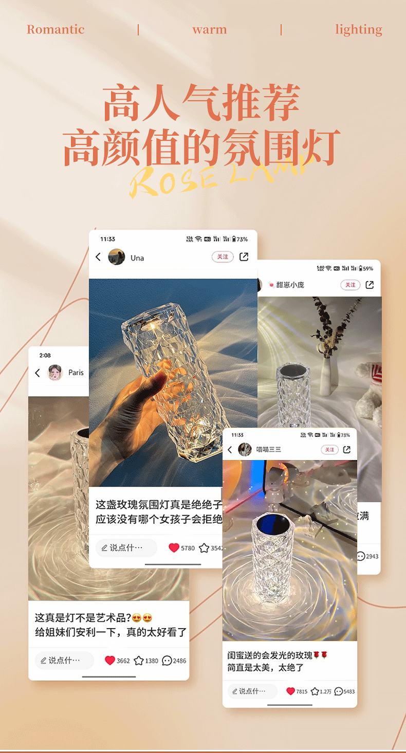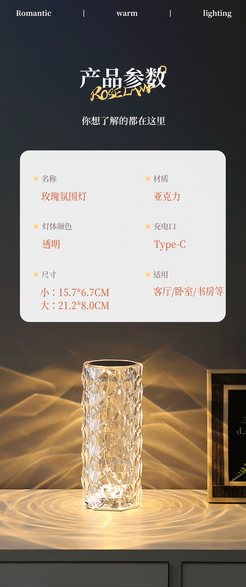 | Especificaciones | Lámpara de cristal Rosa lámpara de atmósfera-tamaño pequeño,Rose lámpara de cristal lámpara de la atmósfera-grande |