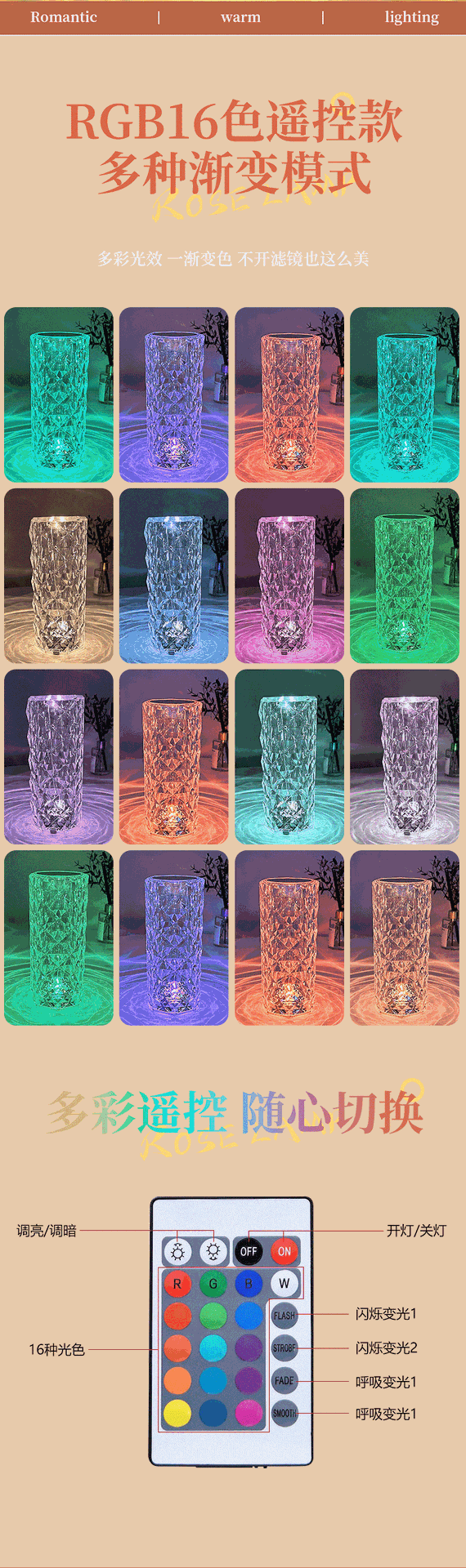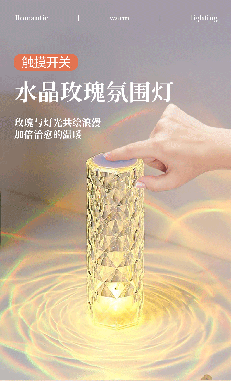 Transfronteriza de Cristal decorativa lámpara de mesa dormitorio toque control remoto Rose lámpara LED de carga atmósfera Decoración Luz de la noche