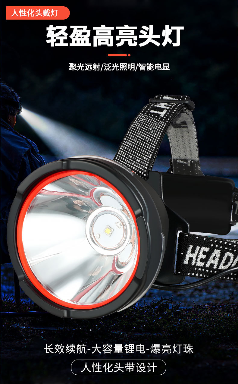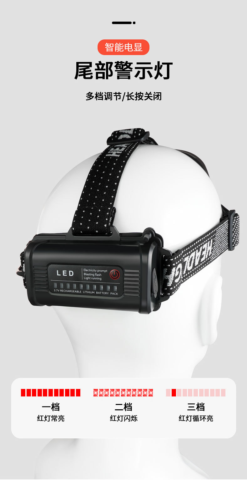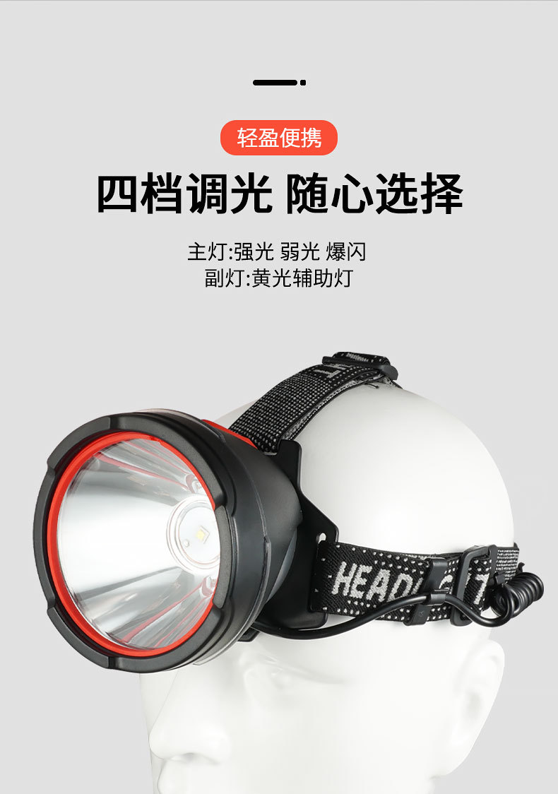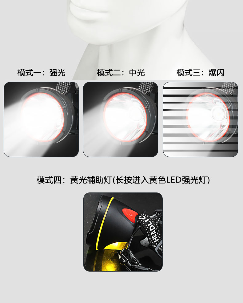 Luz de cabeza de luz fuerte al aire libre transfronteriza LED multifunción emergencia portátil noche pesca montar a caballo luz de trabajo montada en la cabeza