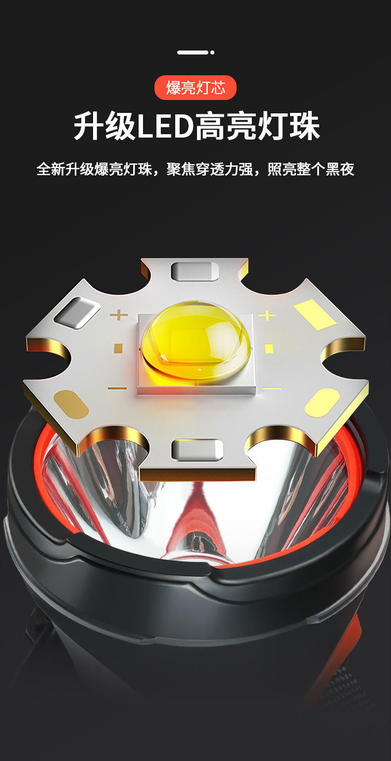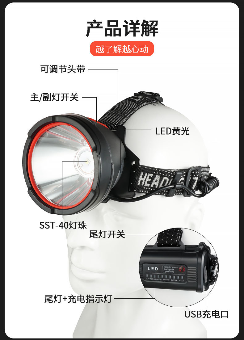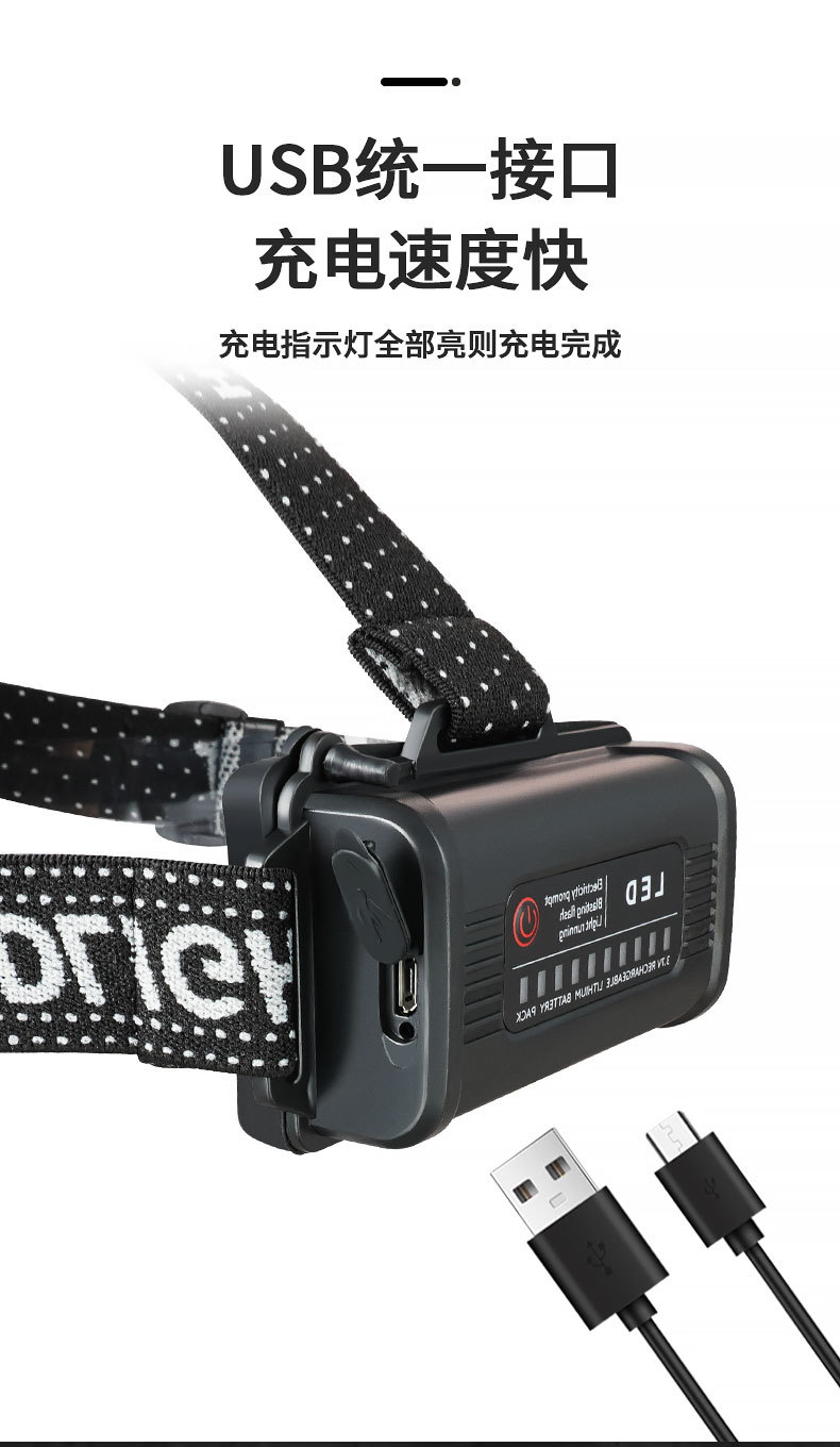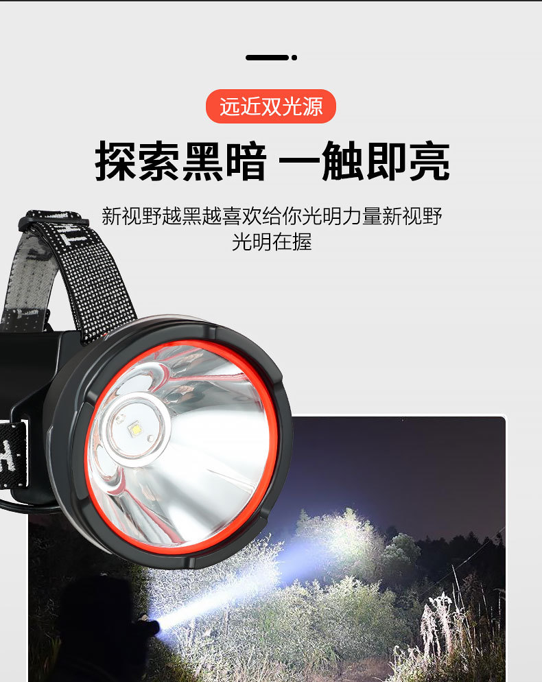 Luz de cabeza de luz fuerte al aire libre transfronteriza LED multifunción emergencia portátil noche pesca montar a caballo luz de trabajo montada en la cabeza