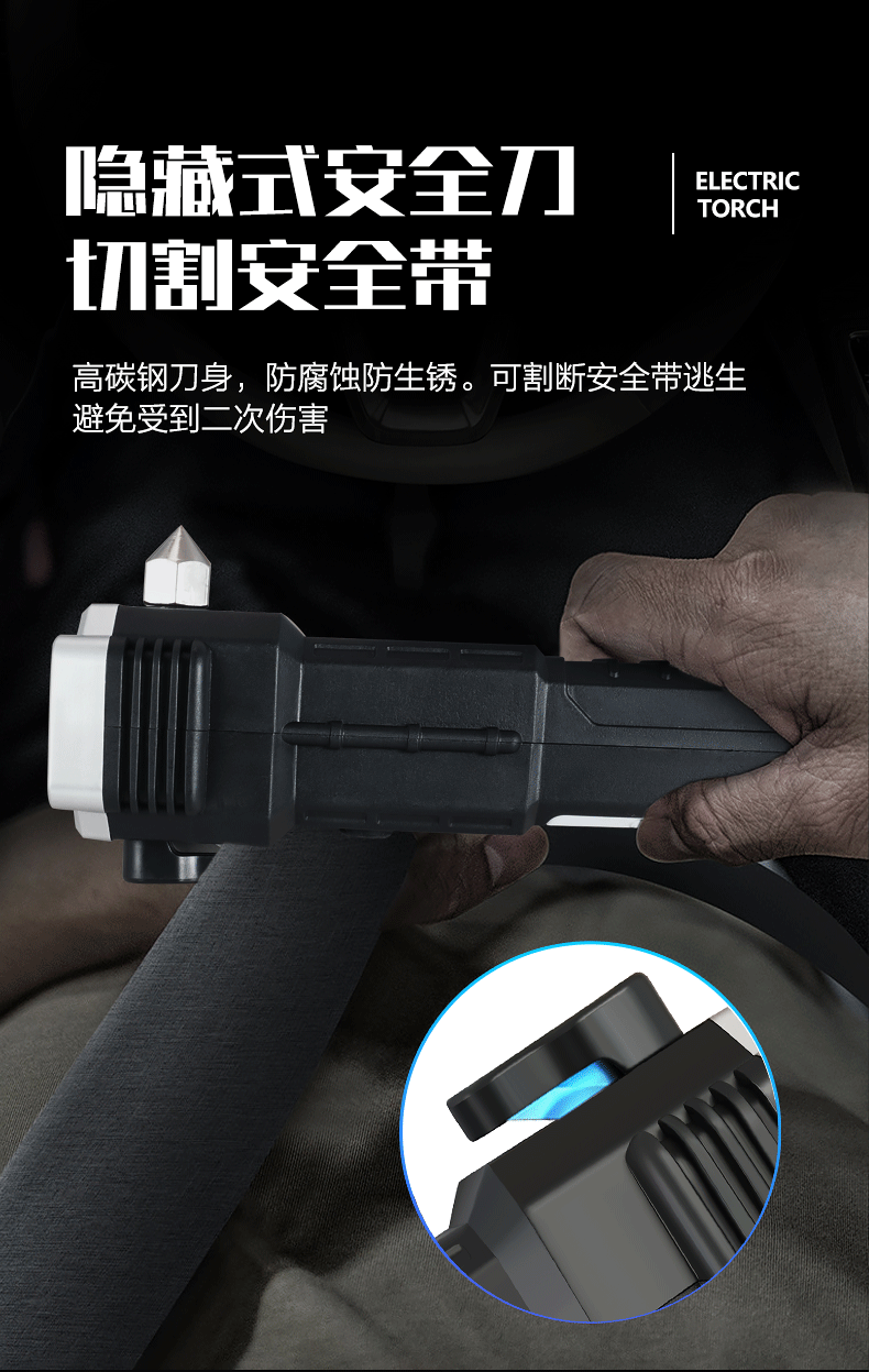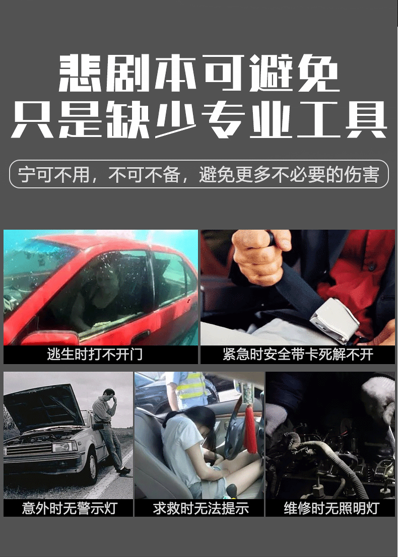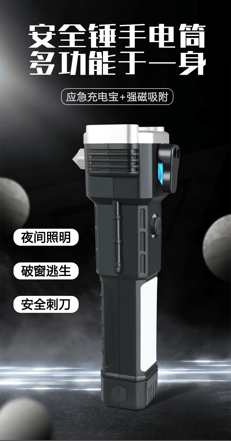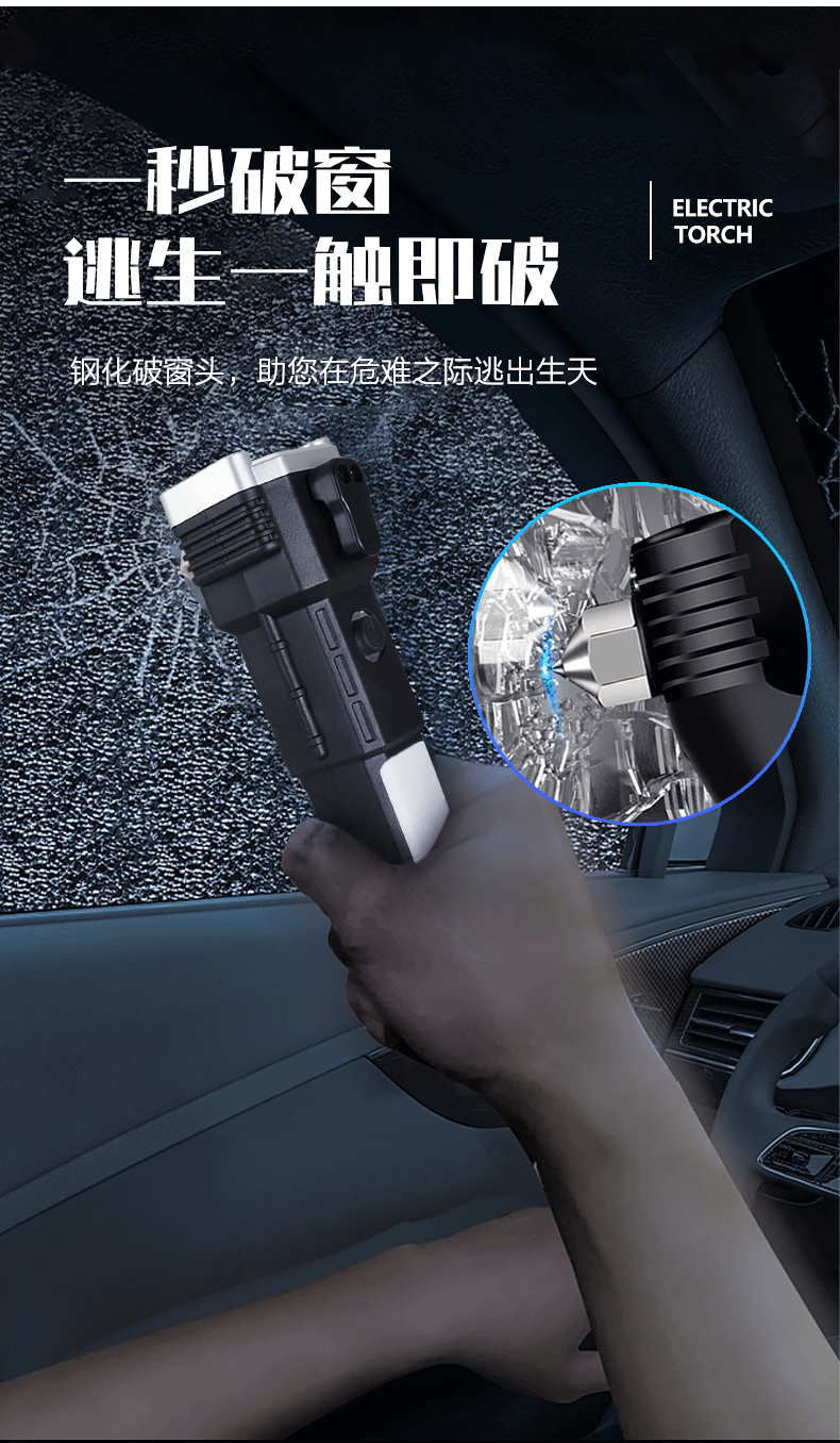 Linterna de martillo de seguridad multifuncional, martillo de escape de rescate de incendios de automóviles, martillo de ventana rota, linterna de luz fuerte al aire libre