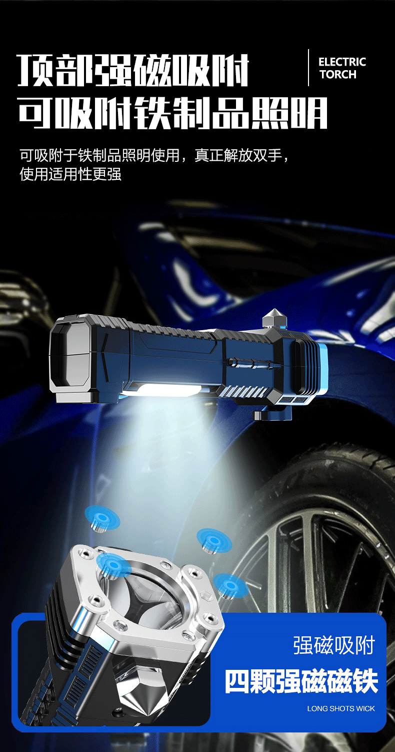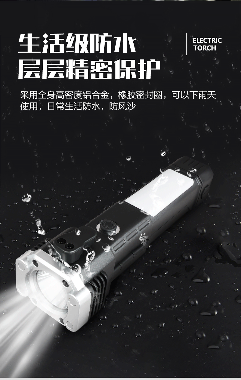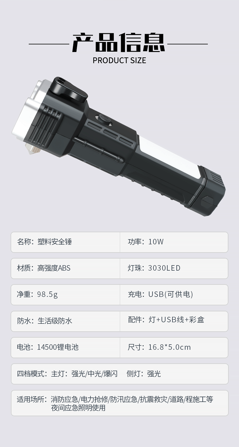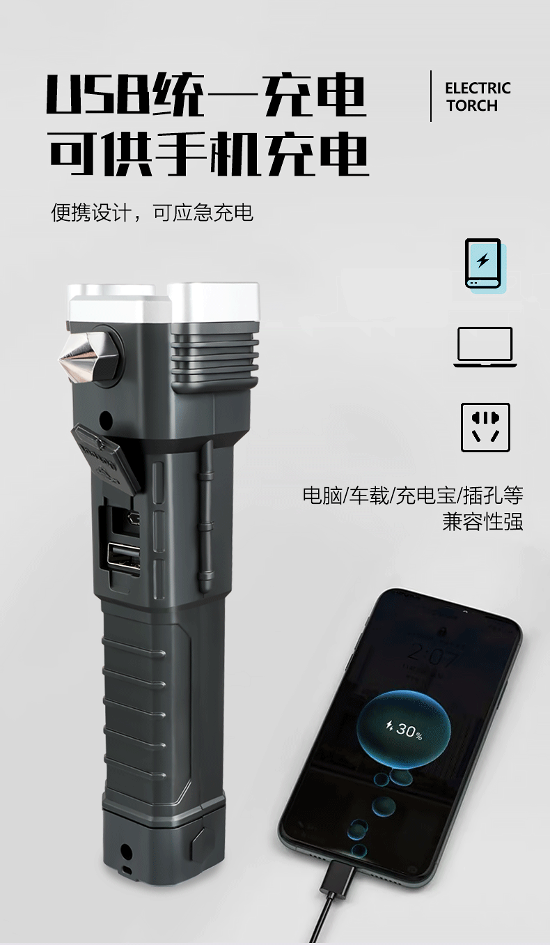 Linterna de martillo de seguridad multifuncional, martillo de escape de rescate de incendios de automóviles, martillo de ventana rota, linterna de luz fuerte al aire libre