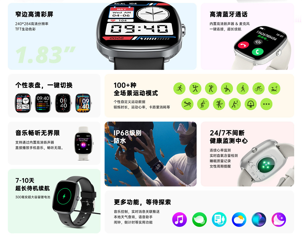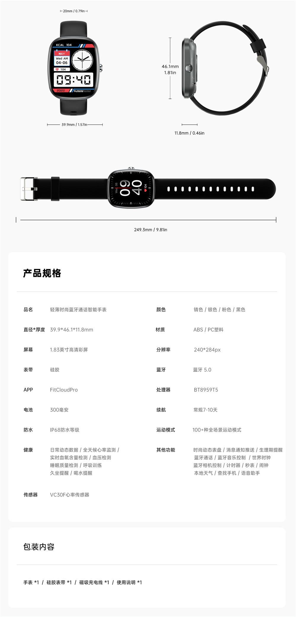 Nuevo reloj inteligente transfronterizo S5 1.83 pulgadas HD pantalla grande Bluetooth llamada frecuencia cardíaca oxígeno presión arterial monitoreo de movimiento